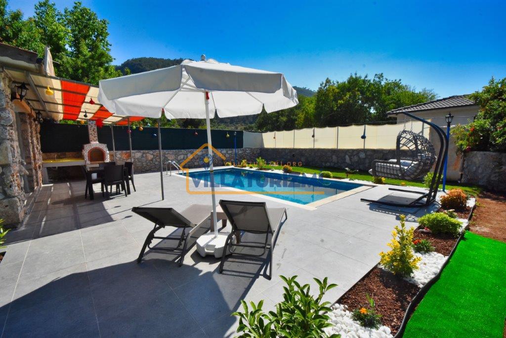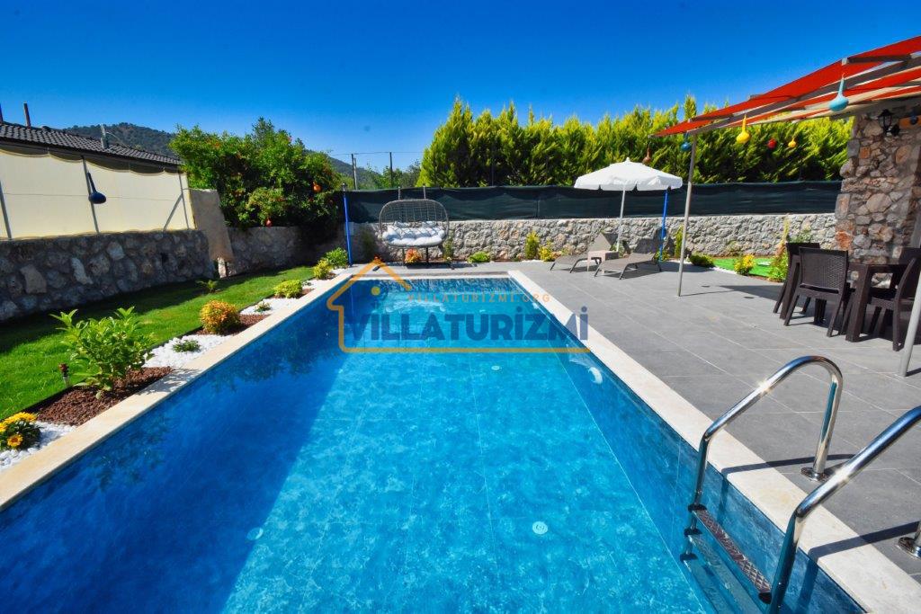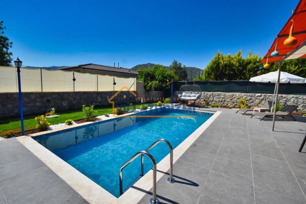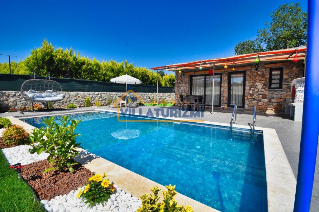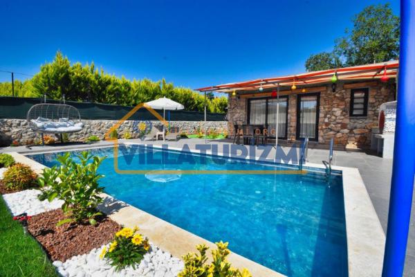 Özellikler: Özel açık yüzme havuzu, güneşlenme alanı, şezlonglar, özel bahçe, özel park yeri ve mangal alanı.