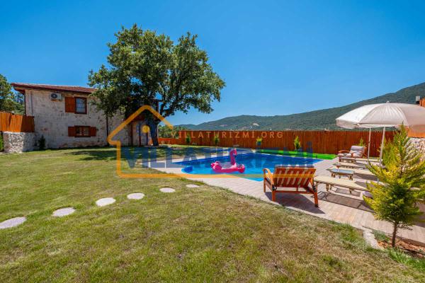 Kiralık Villanın en dikkat çekici özelliklerinden biri, misafirlerine gerçekten özel ve konforlu bir konaklama deneyimi yaşatmak amacıyla tasarlanmış olan iki adet özel korunaklı havuzudur. Bu havuzlar, konuklara güneşin keyfini çıkarırken aynı zamanda gizlilik ve rahatlık sunmaktadır. Havuzların muhteşem manzarası eşliğinde doğanın huzur içinde izlenebileceği geniş çim bahçesi, konuklara dinlendirici bir ortamda vakit geçirme fırsatı sunmaktadır.