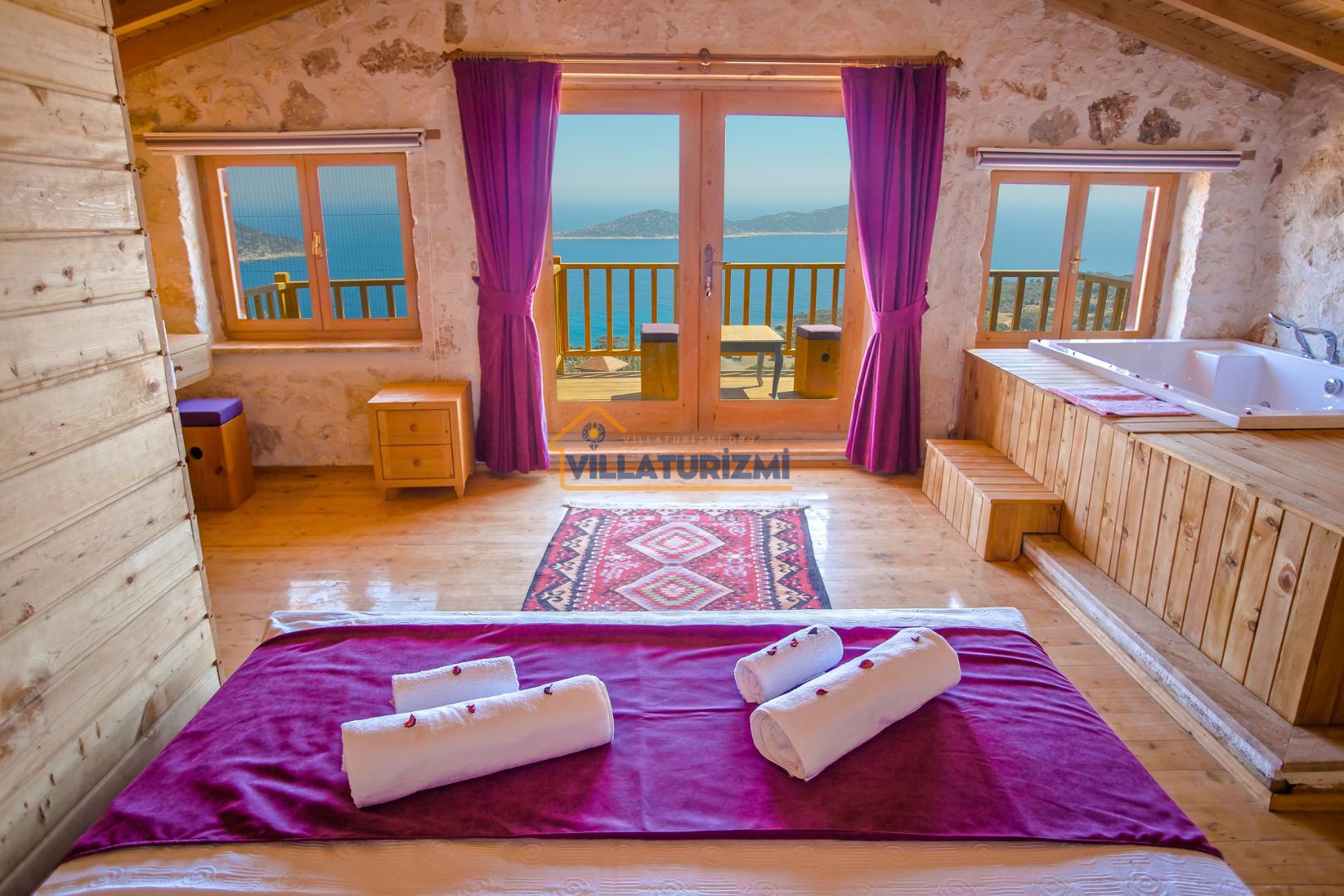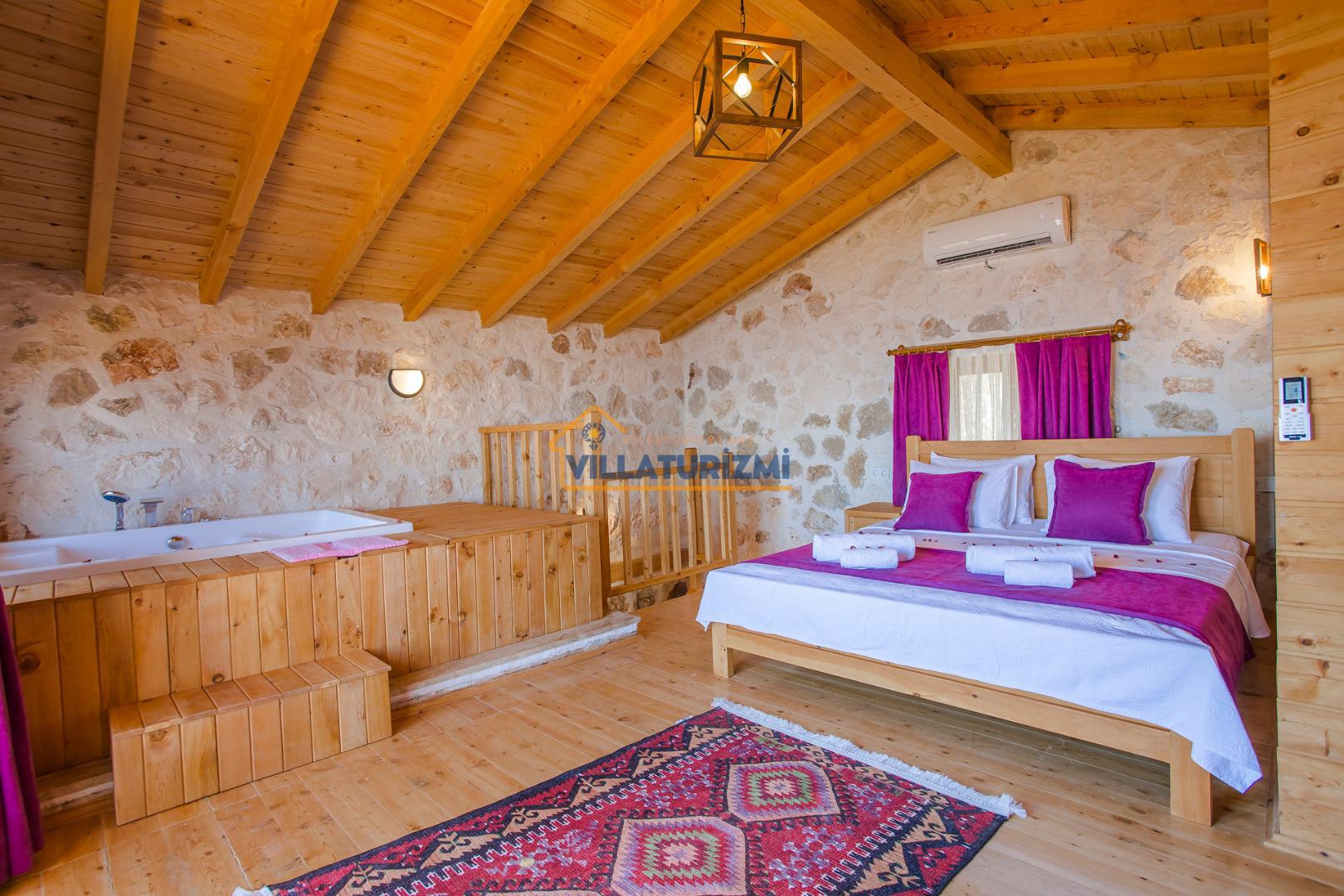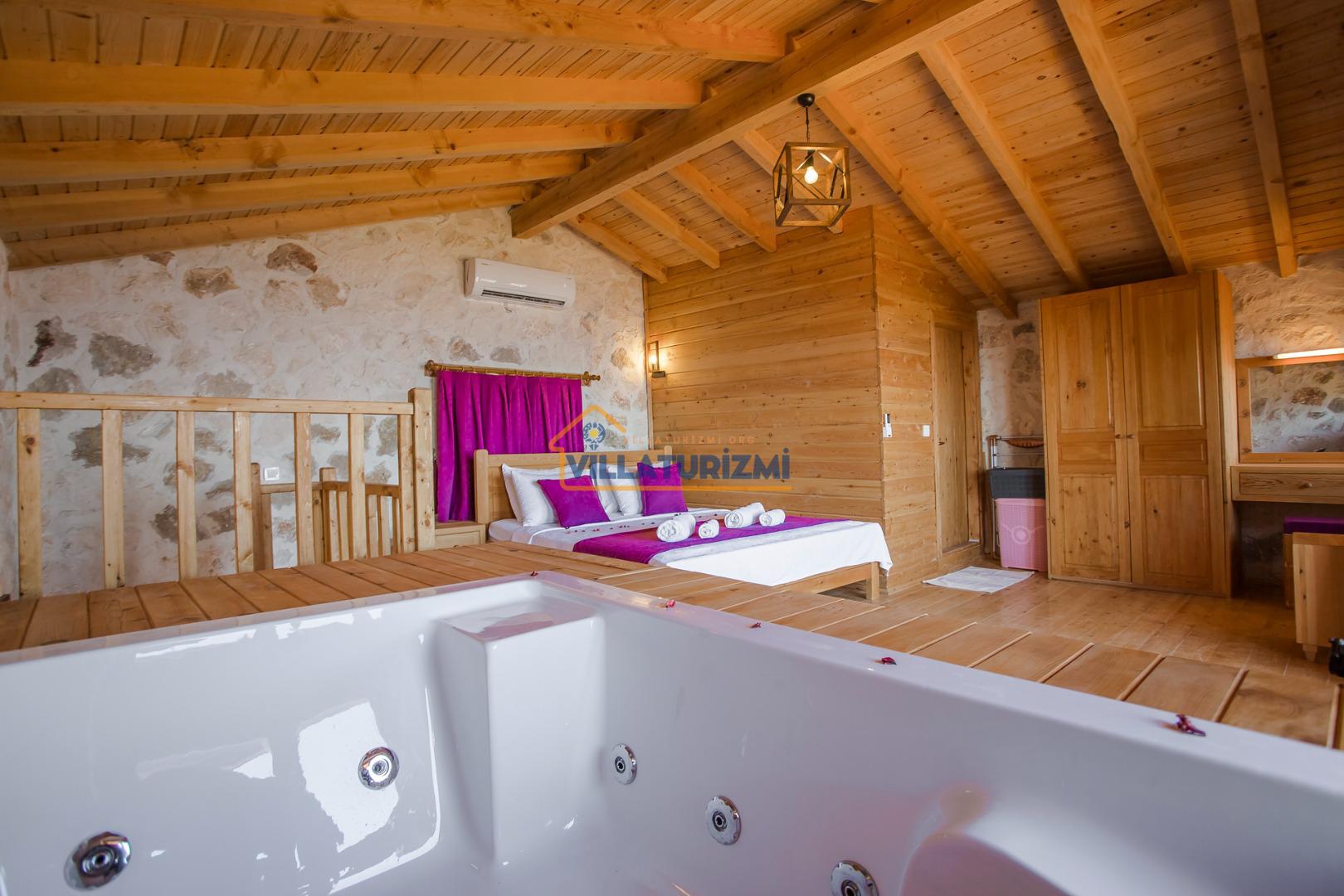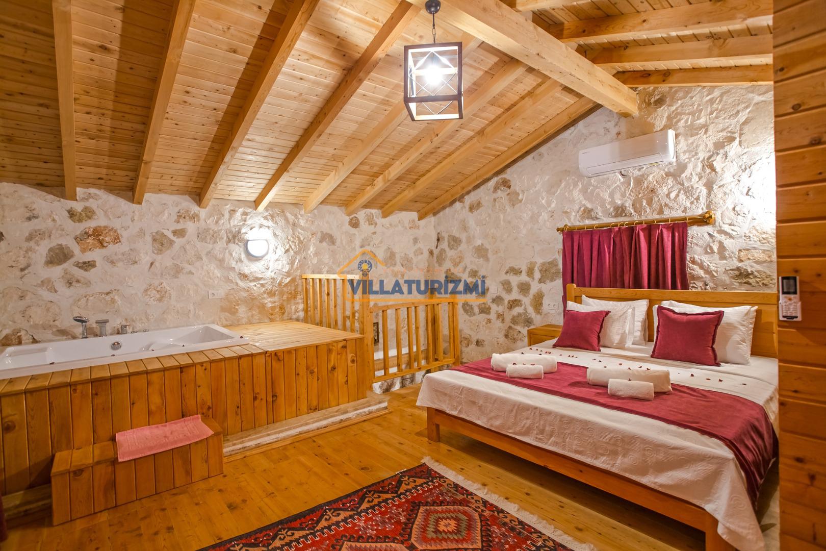 Yatak Odası: 1 adet çift kişilik yatak, komodin, elbise dolabı, klima, jakuzi, WC banyo bulunmaktadır.