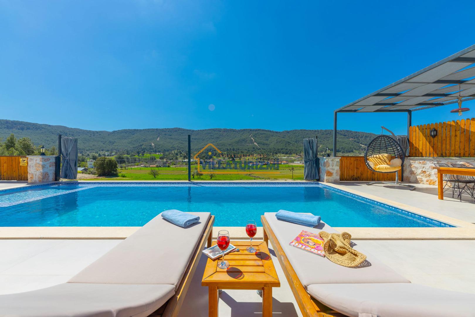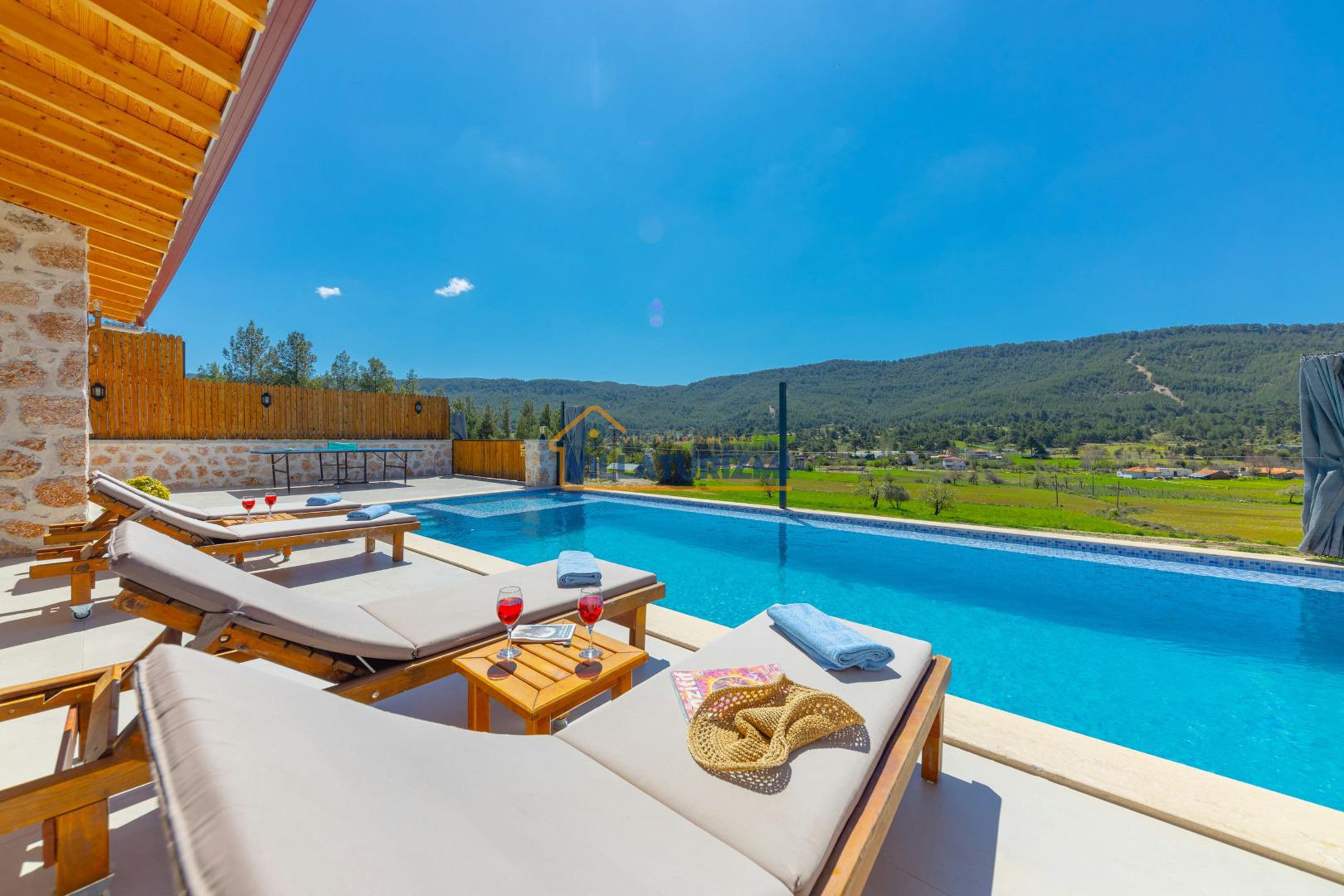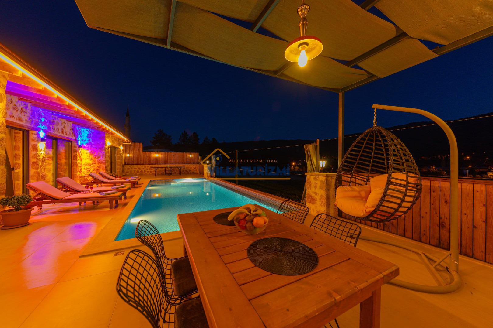 Villa Berceste Kalkan Sarıbelen'de Korunaklı Havuzlu Kiralık Villa