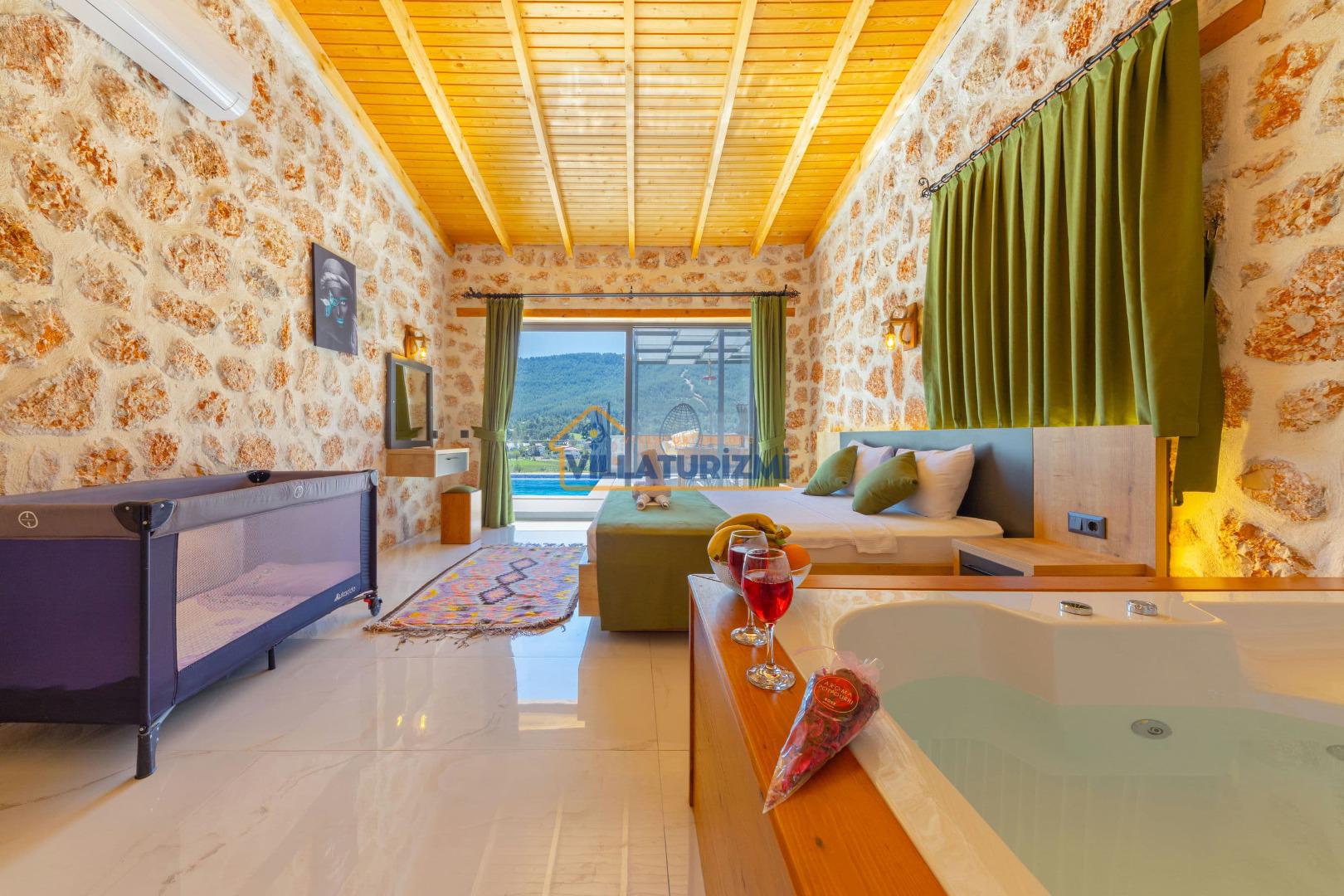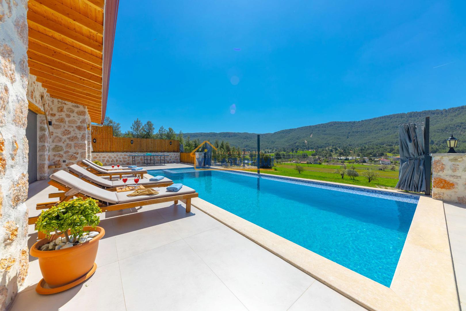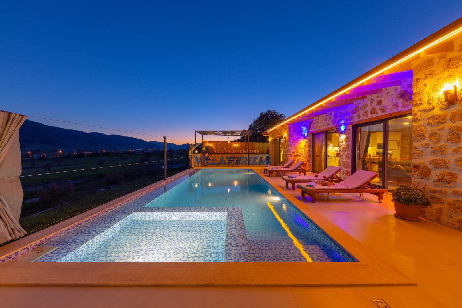 Villa Berceste Kalkan Sarıbelen'de Korunaklı Havuzlu Kiralık Villa