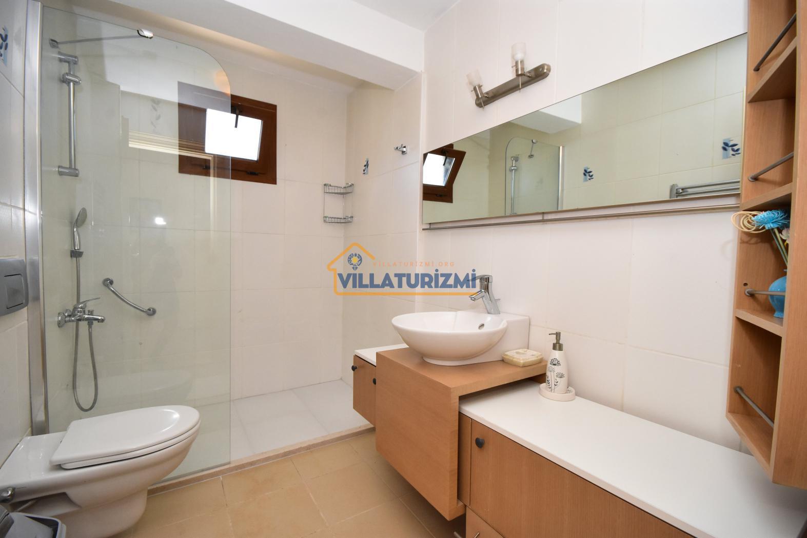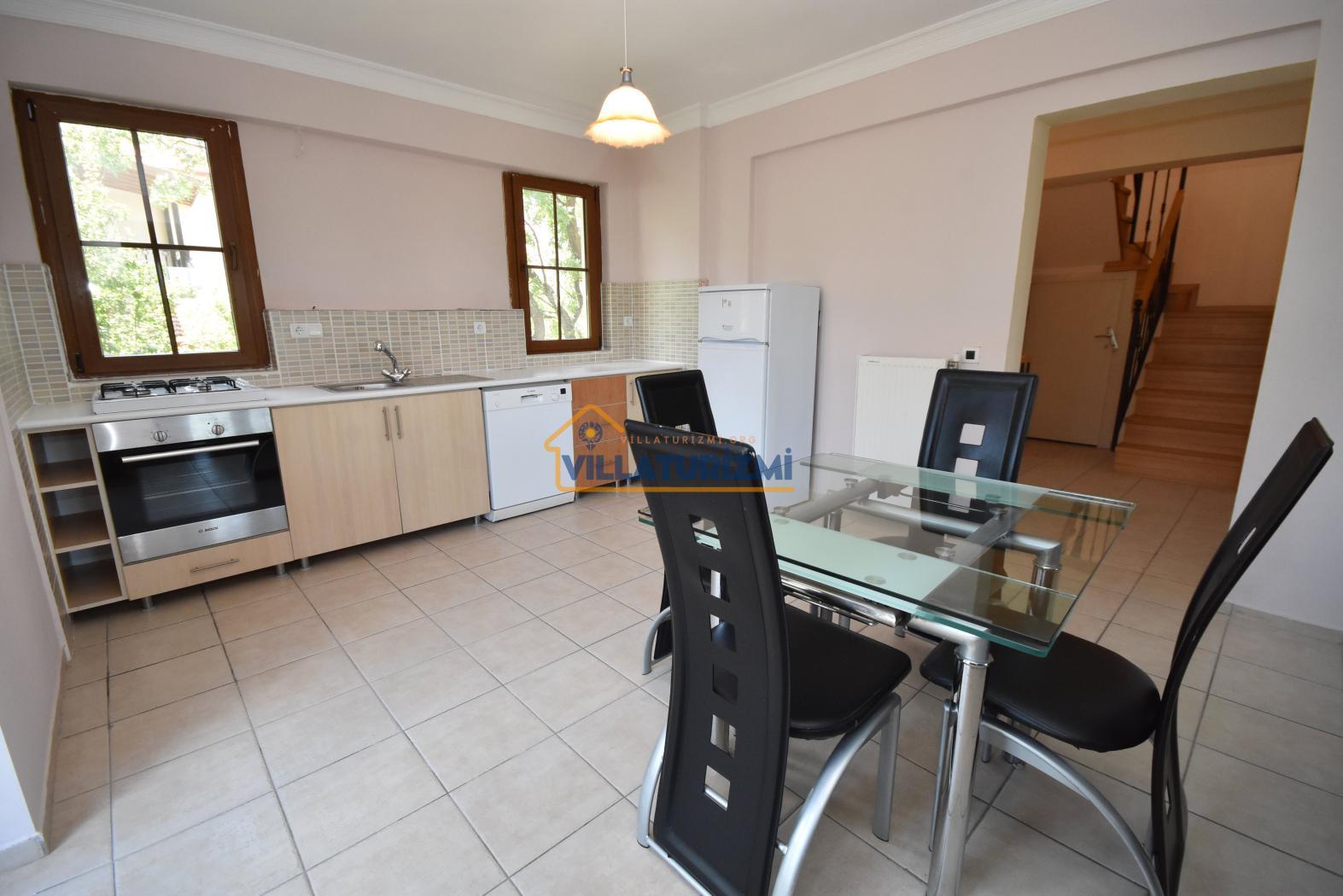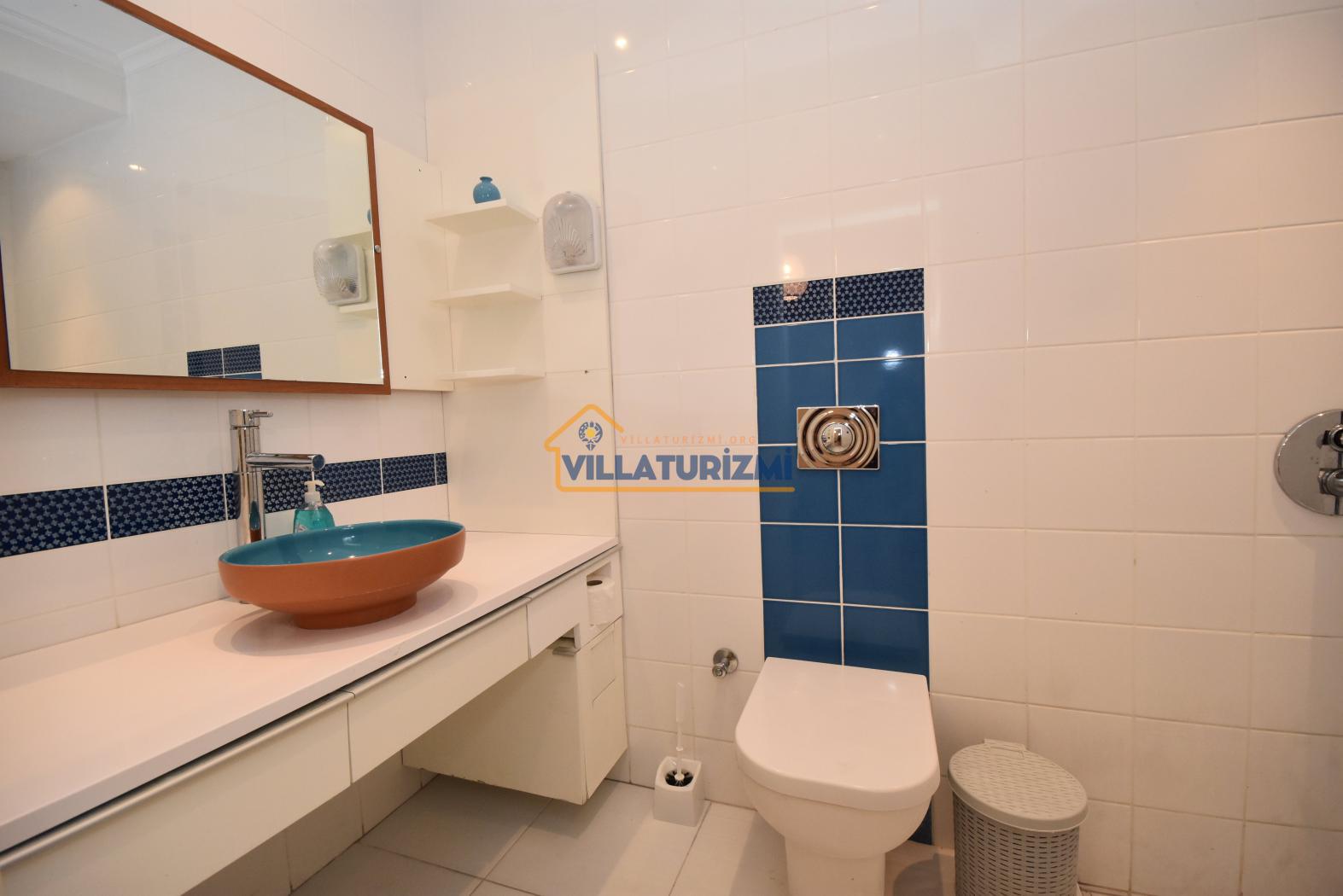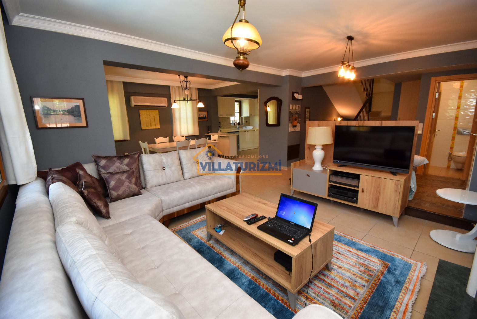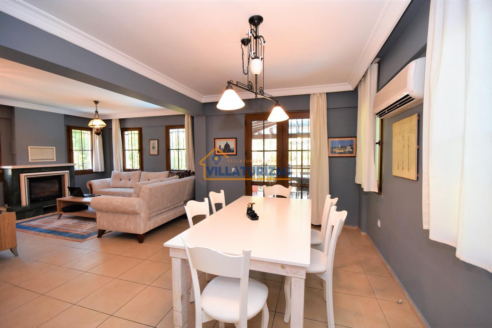 Villamız 6 yatak odası, 4 banyo ve yüzme havuzuna açılan açık mutfaklı oturma/yemek odasından oluşur. Mutfak kısmında bulunan yemek masası 10 kişi kapasitelidir.