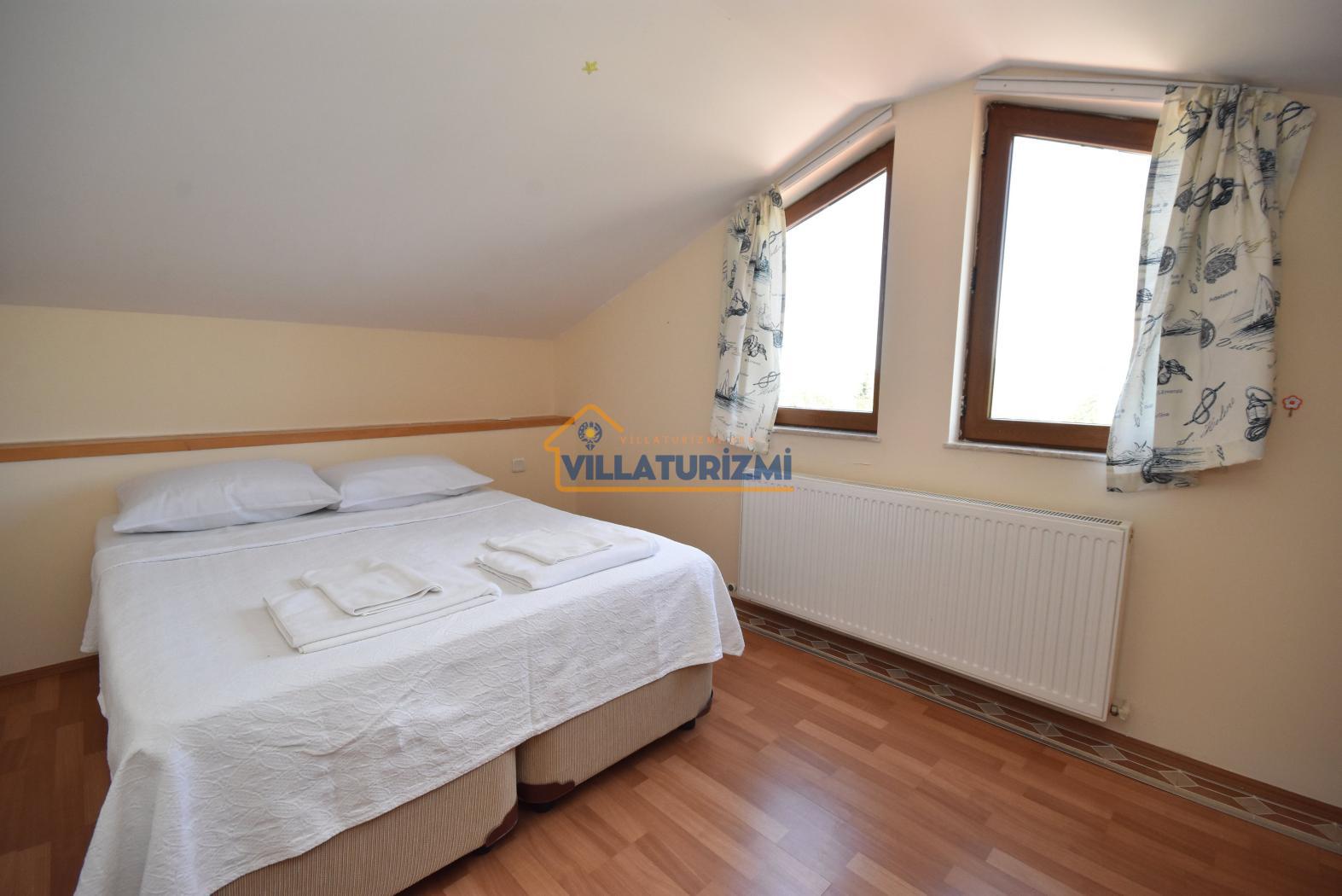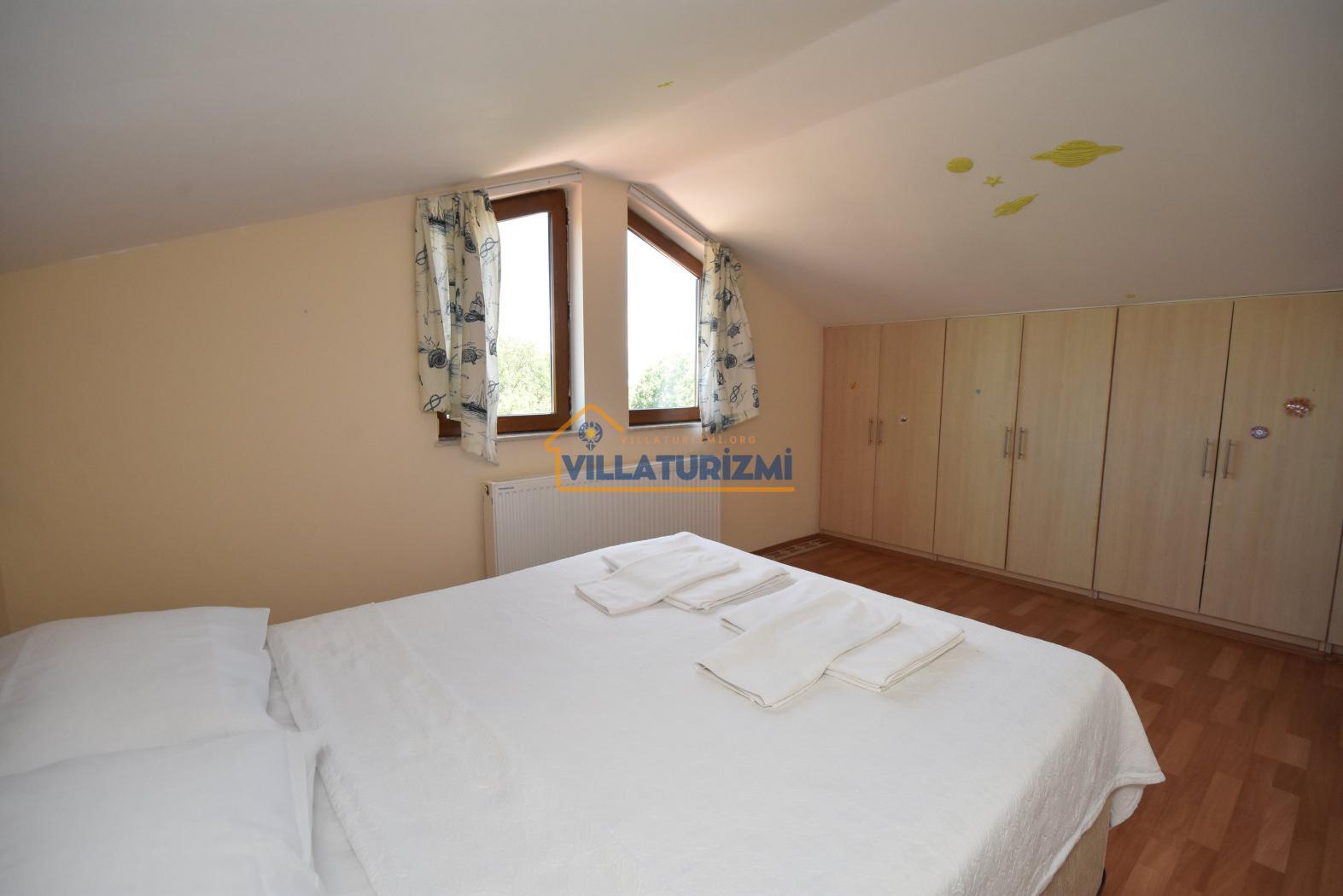 Villa Cemre geniş aileler için uygun helal tatil villamız, 6 yatak odası ve 4 banyoya sahip olup 10 kişi konaklama kapasitelidir. 6 yatak odasında 5 çift kişilik ve 2 tek kişilik yatak bulunmaktadır.