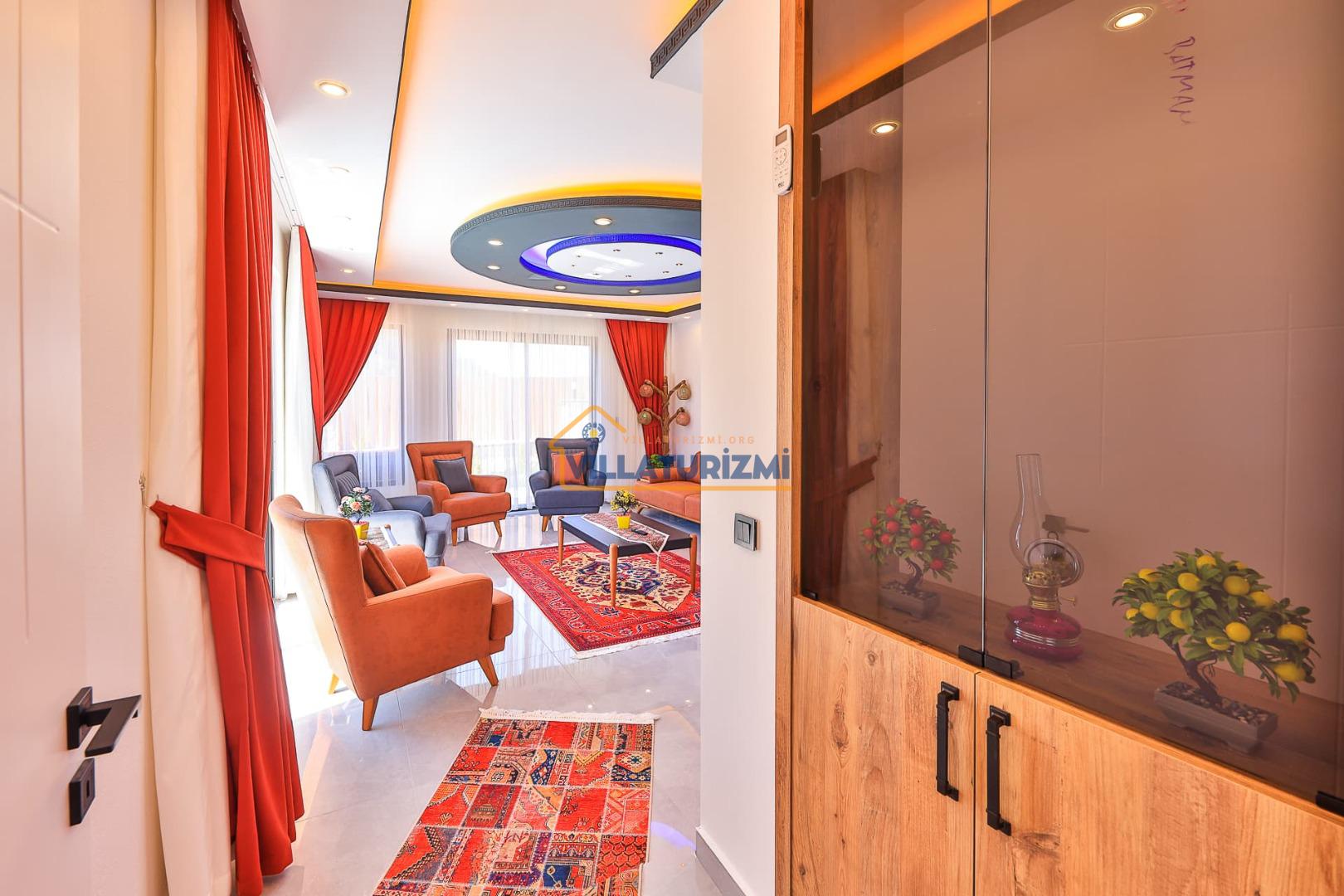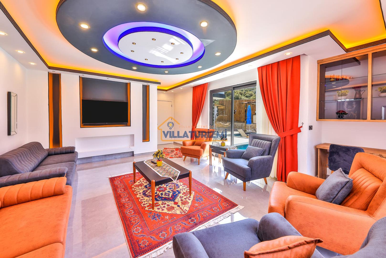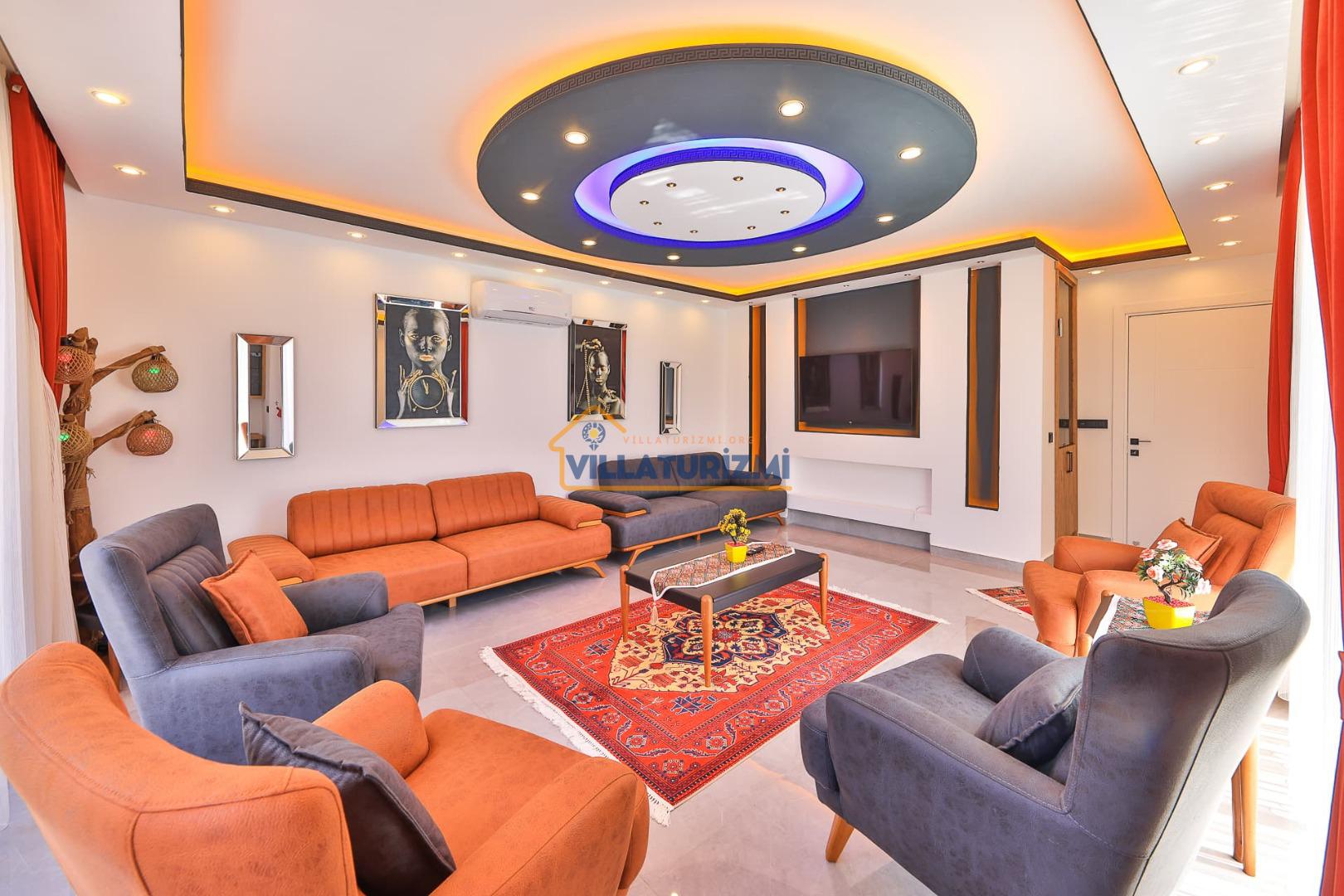 Salon: Salon içerisinde oturma grubu, TV, klima, sehpa bulunmaktadır. Havuz terasına çıkış yapılabilmektedir.