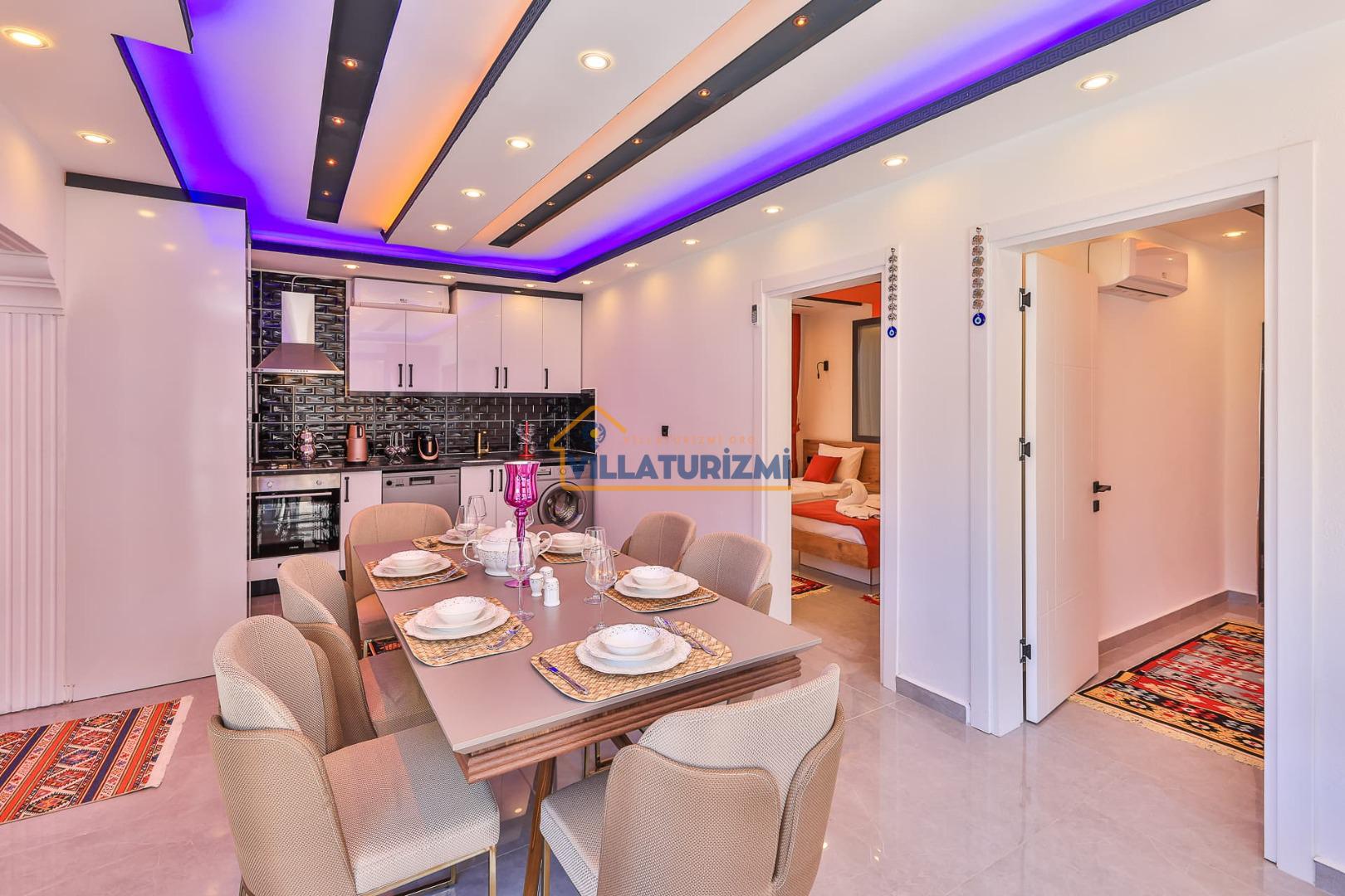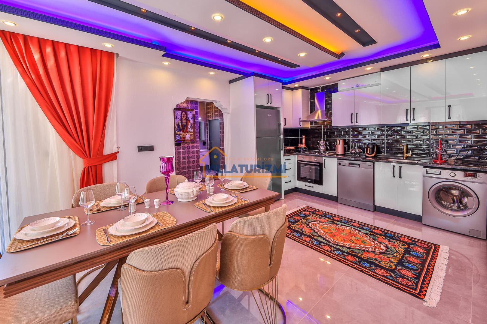 Mutfak:Modern Amerikan mutfak içerisinde 4 kişilik yemek masası, buzdolabı, bulaşık makinası, fırın, ocak, mikrodalga fırın, tost makinası, yemek masası, yemek takımları, çatal ve bıçak takımları, tencere ve tava takımları, bardaklar bulunmaktadır.
