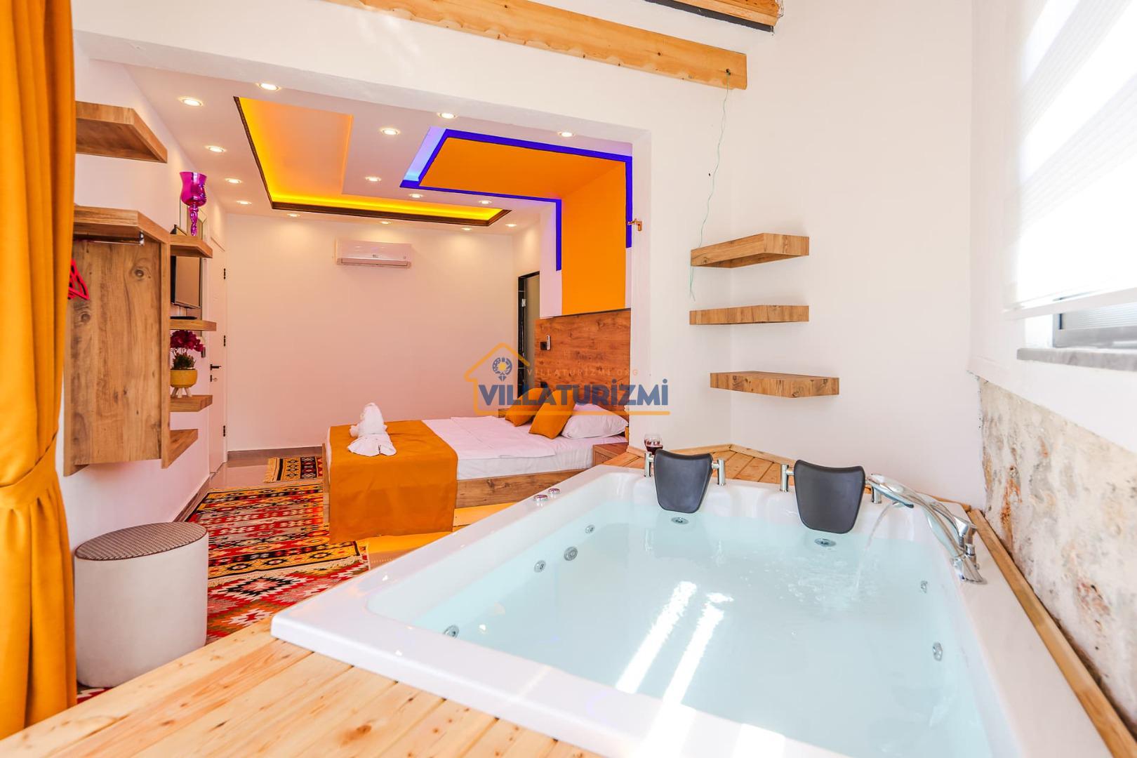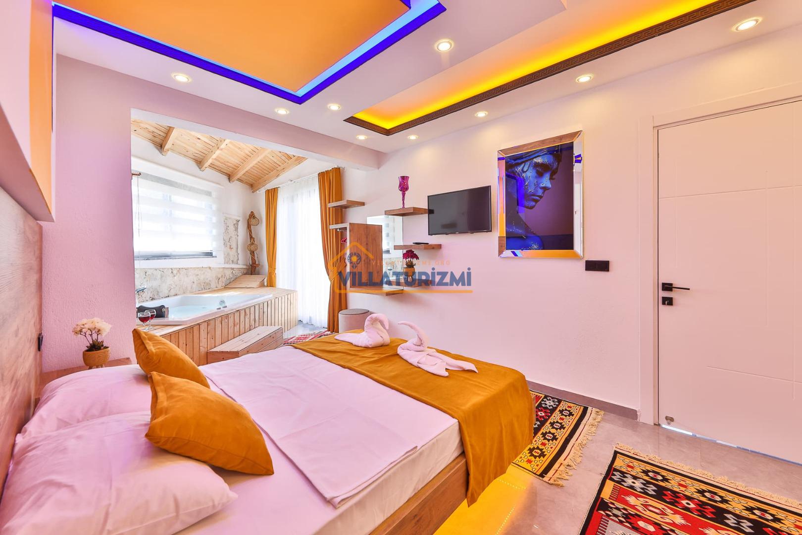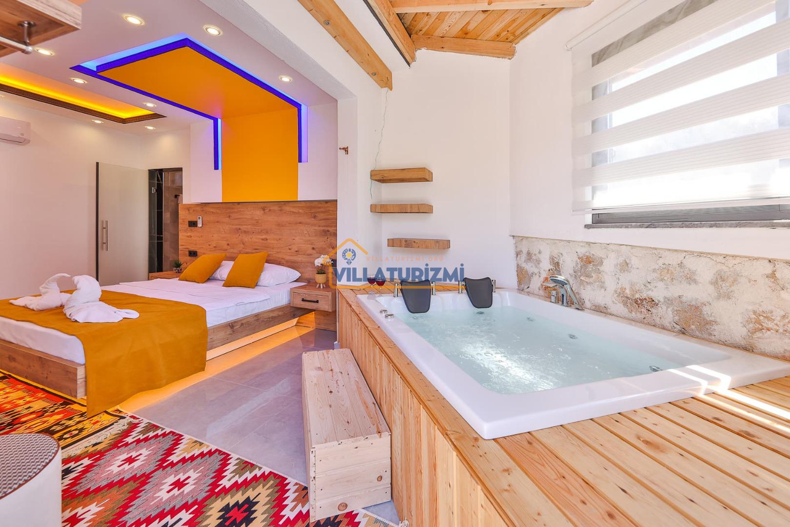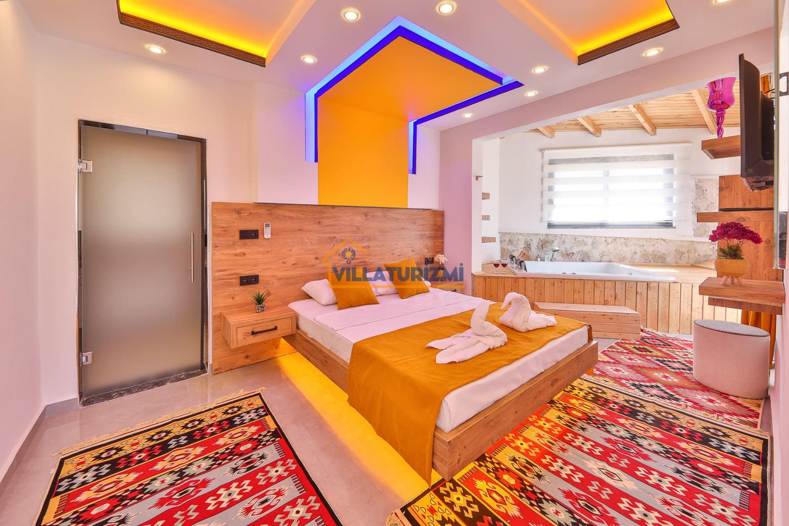1.Yatak Odası:1 adet çift kişilik yatak, klima, komodin, elbise dolabı, makyaj masası, jakuzi, banyo ve tuvalet bulunmaktadır.
