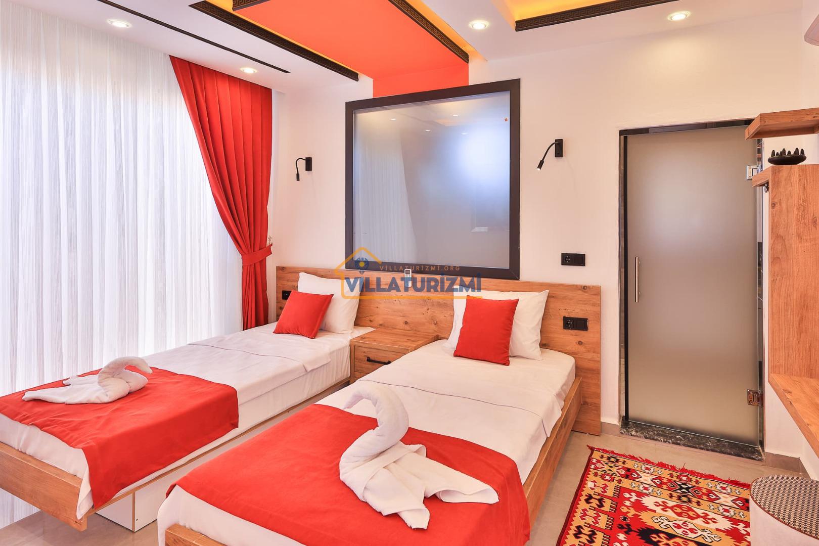 2.Yatak Odası:2 adet çift kişilik yatak, klima, komodin, elbise dolabı, makyaj masası, banyo ve tuvalet bulunmaktadır.