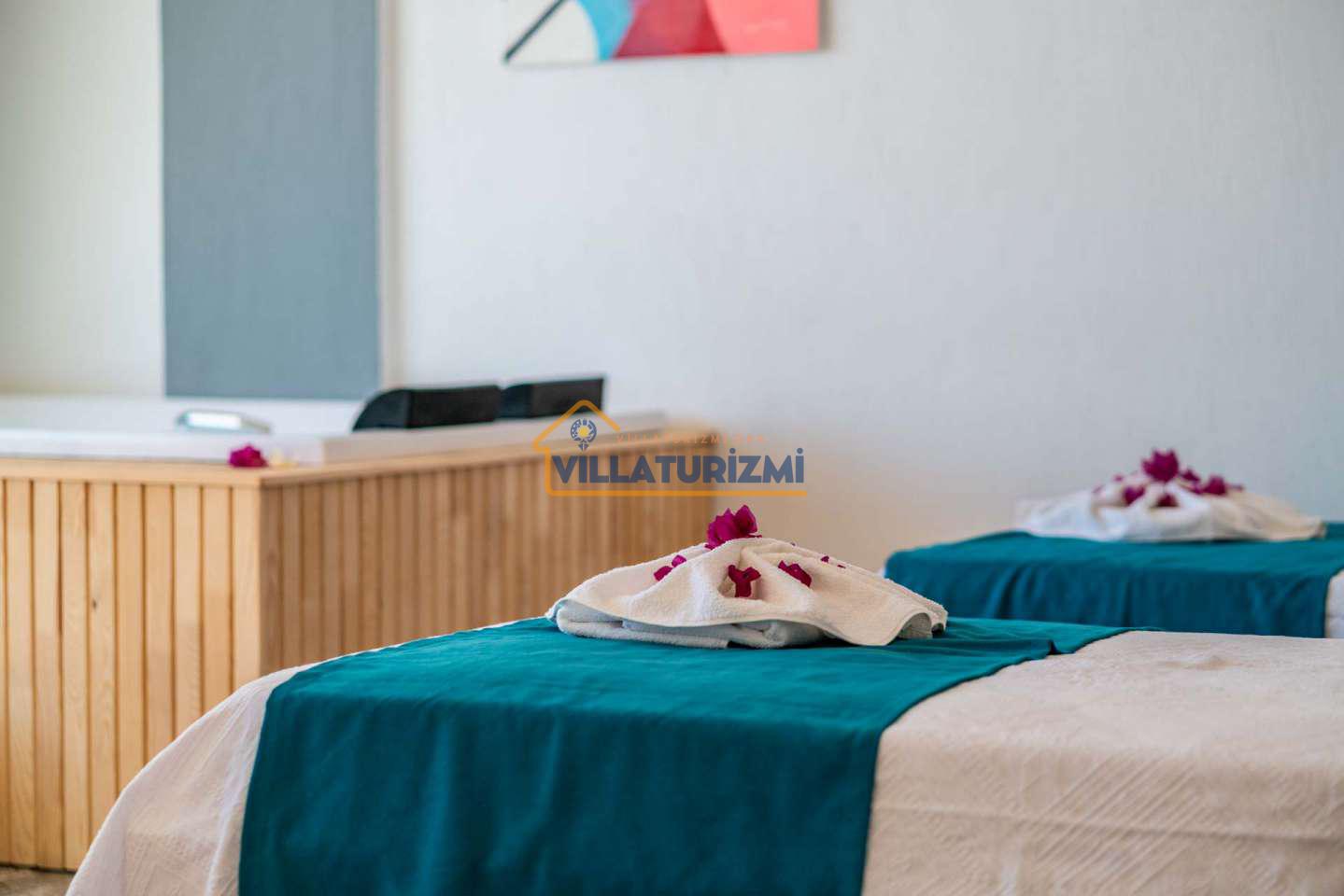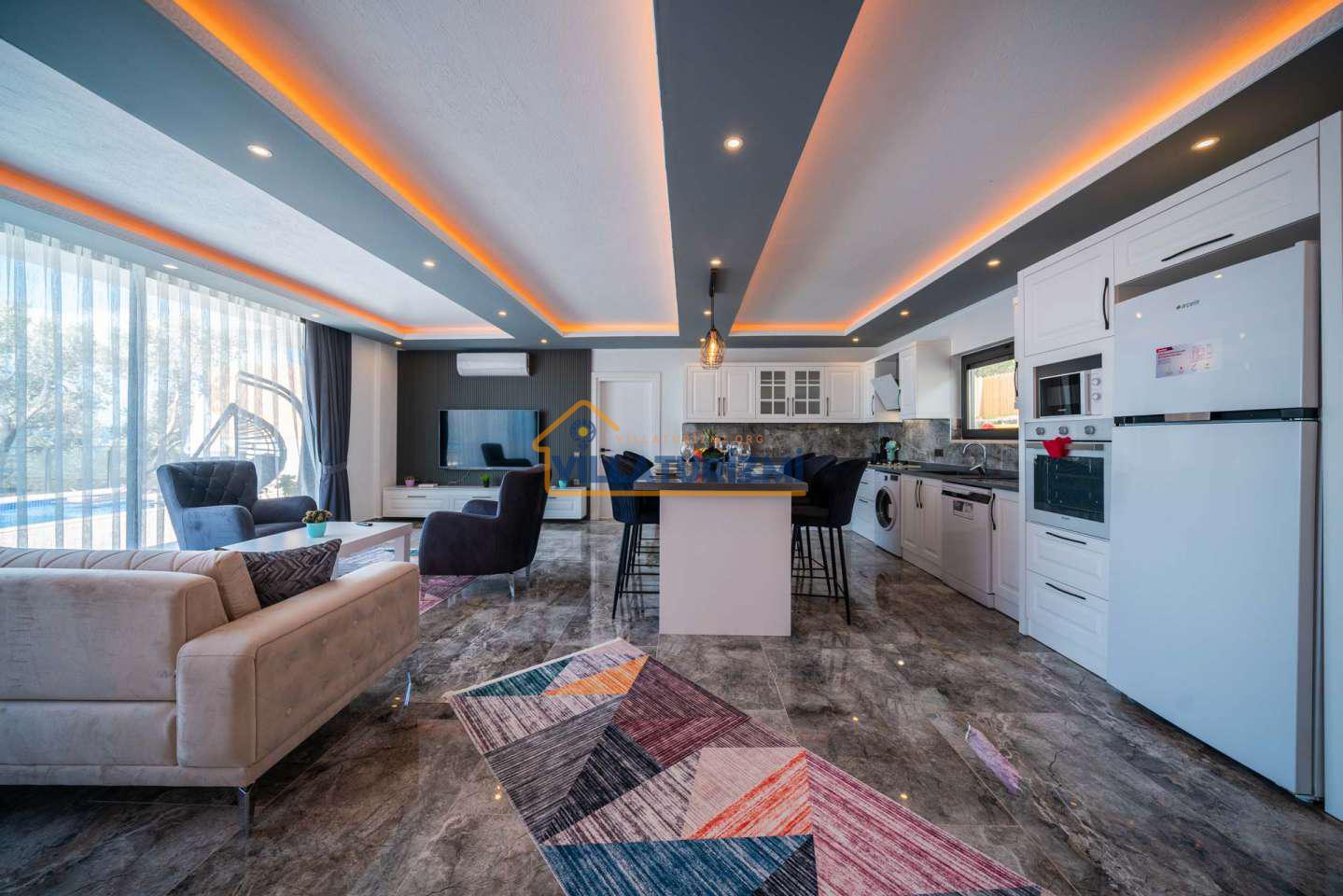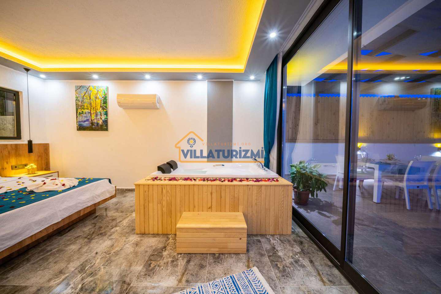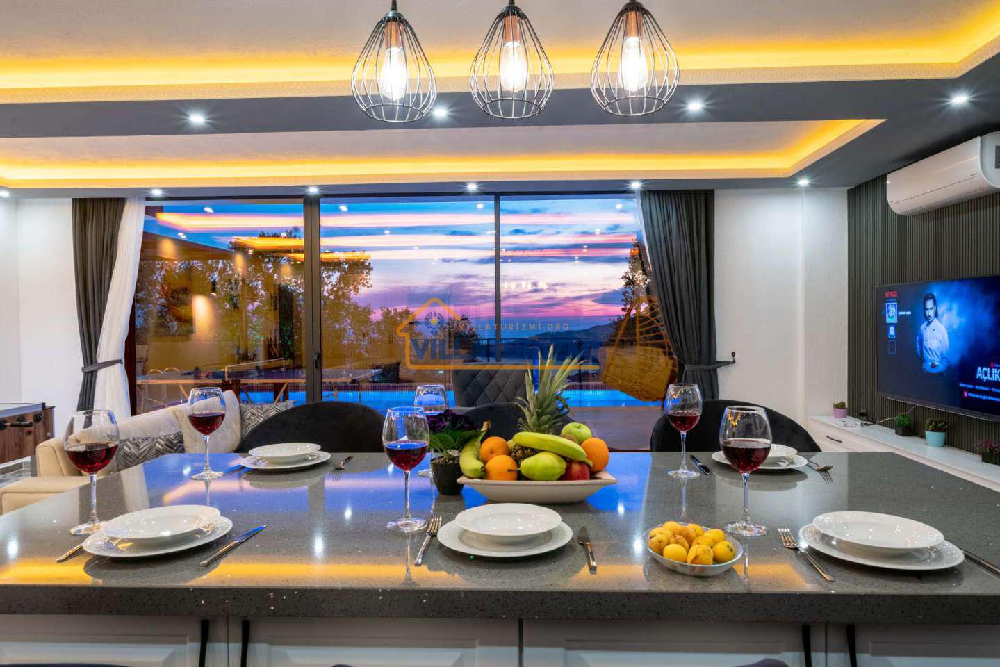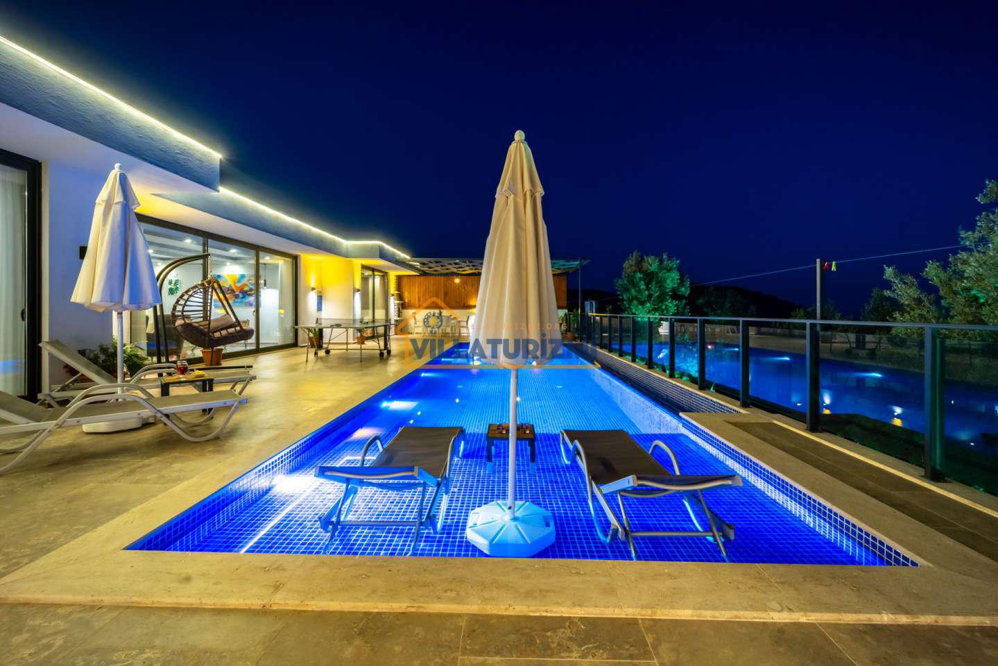Arka bahçesinde yer alan mini oyun parkı, langırt ve masa tenisi gibi aktiviteler ise özellikle çocuklu aileler için mükemmel bir seçenek oluşturuyor. Aileler için ideal bir tatil konaklama deneyimi sunan bu villamız, balayı çiftleri için de romantik ve huzurlu bir ortam sunuyor.