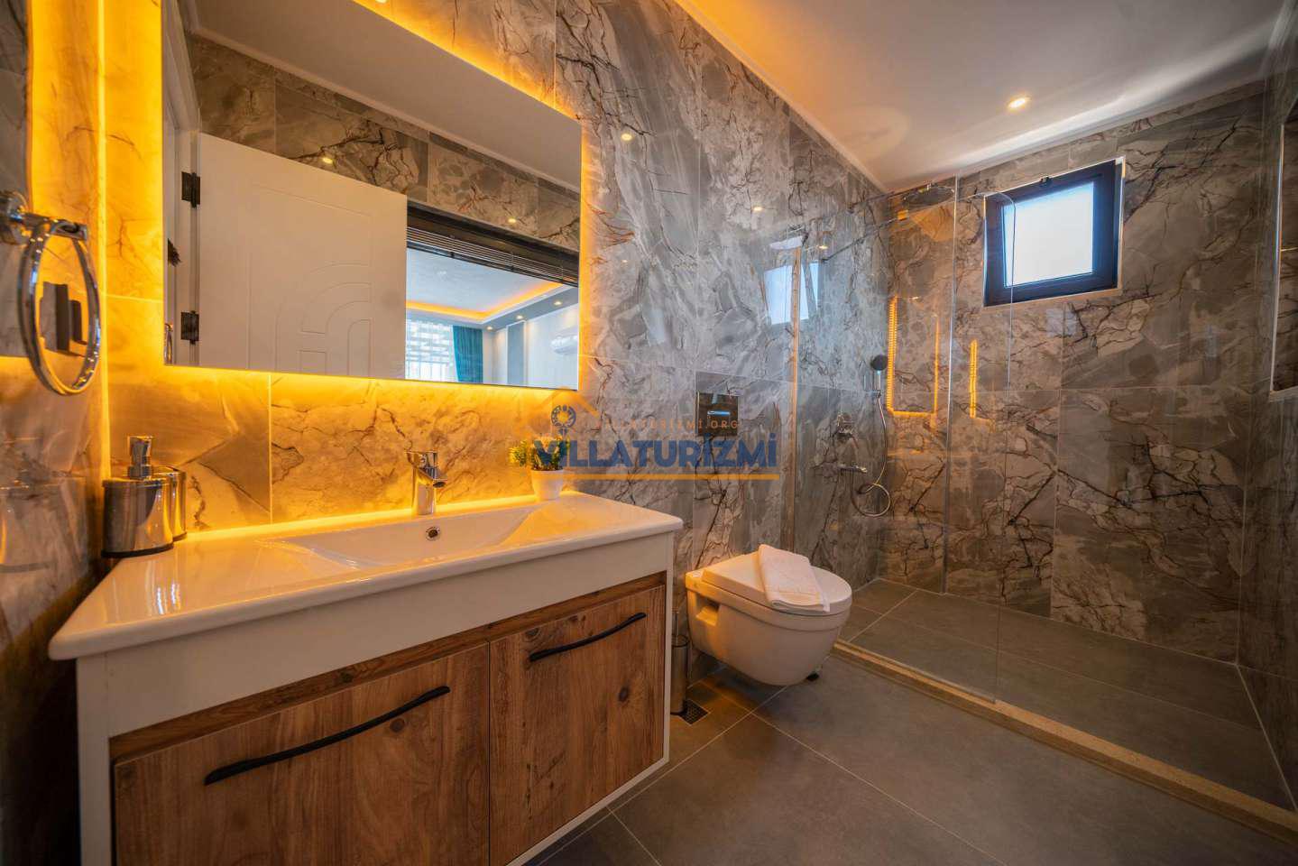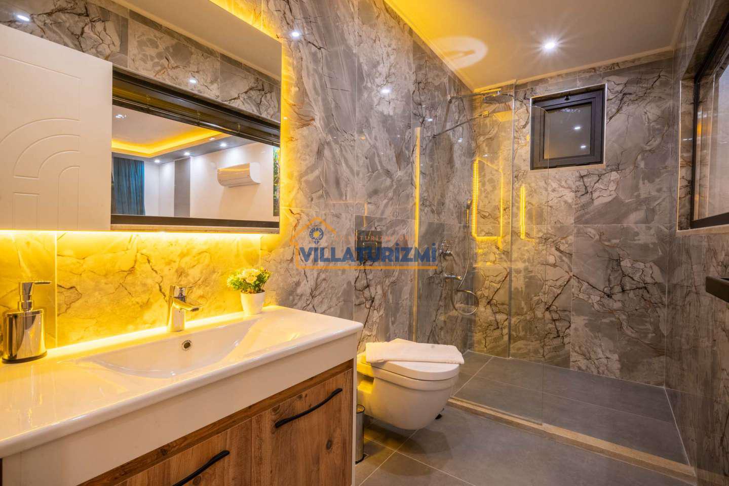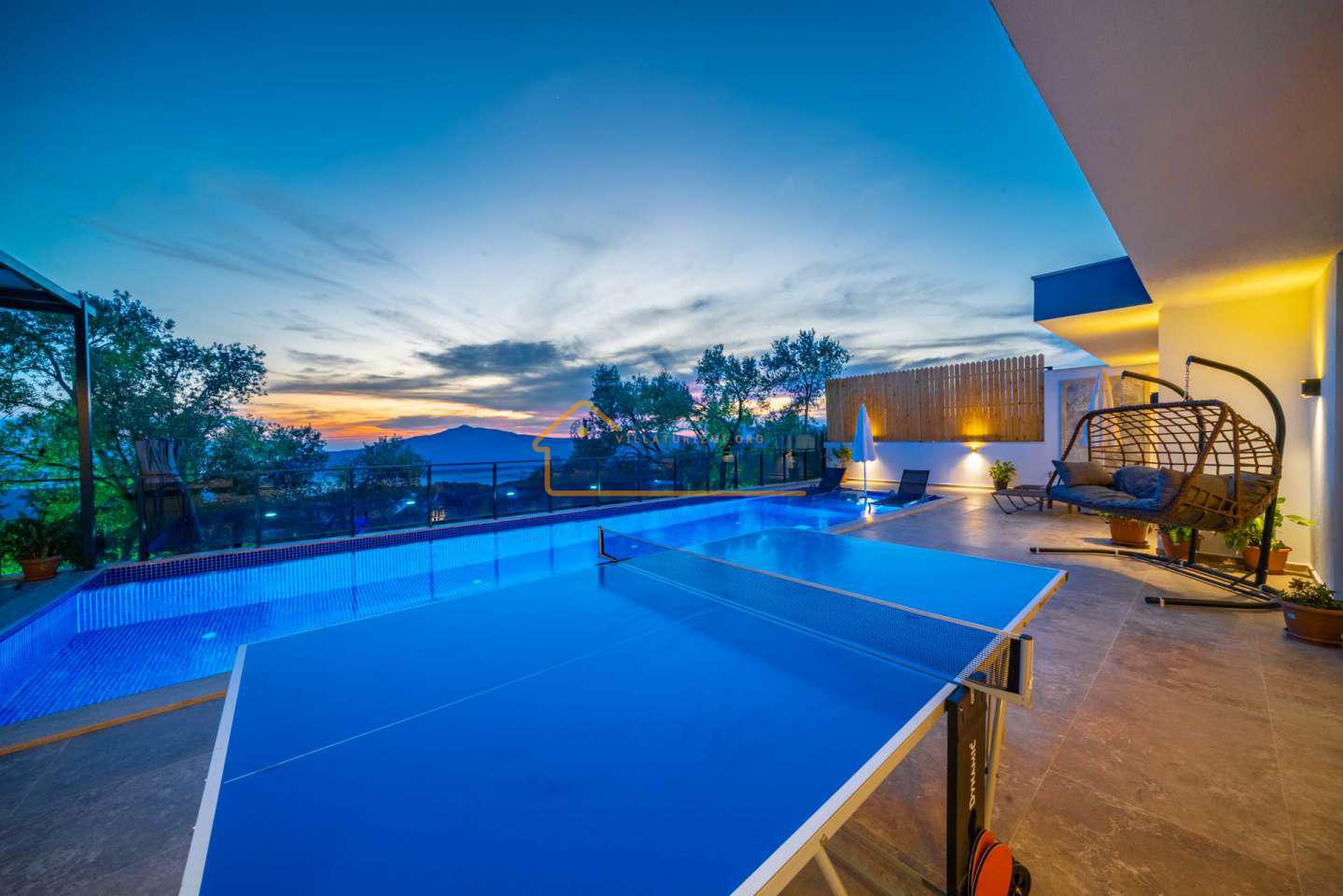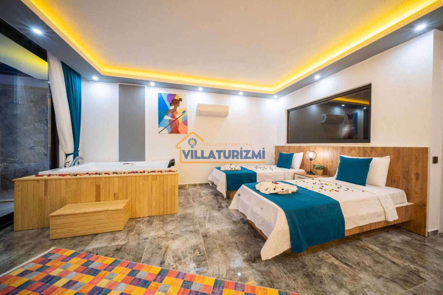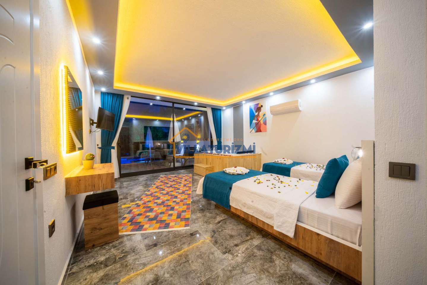 Arka bahçesinde yer alan mini oyun parkı, langırt ve masa tenisi gibi aktiviteler ise özellikle çocuklu aileler için mükemmel bir seçenek oluşturuyor. Aileler için ideal bir tatil konaklama deneyimi sunan bu villamız, balayı çiftleri için de romantik ve huzurlu bir ortam sunuyor.