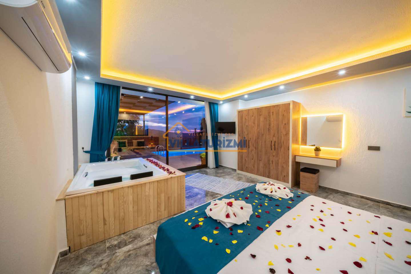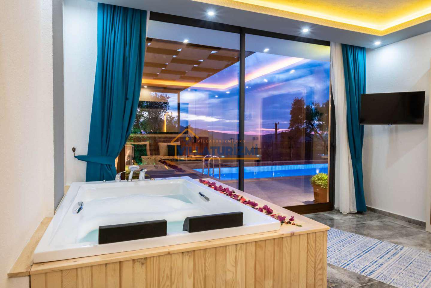 Villa Deste'nin her iki yatak odasında da bulunan jakuzi, konuklara rahatlamaları ve stresten uzaklaşmaları için mükemmel bir imkan sunuyor. Jakuzinin yanı sıra villanın modern ve şık dekorasyonu, konukların konforunu ve keyiflerini en üst seviyede tutmayı hedefliyor. Villanın geniş ve ferah iç mekanı, konuklara evlerindeki rahatlığı ve konforu aratmayacak bir ortam sunuyor.