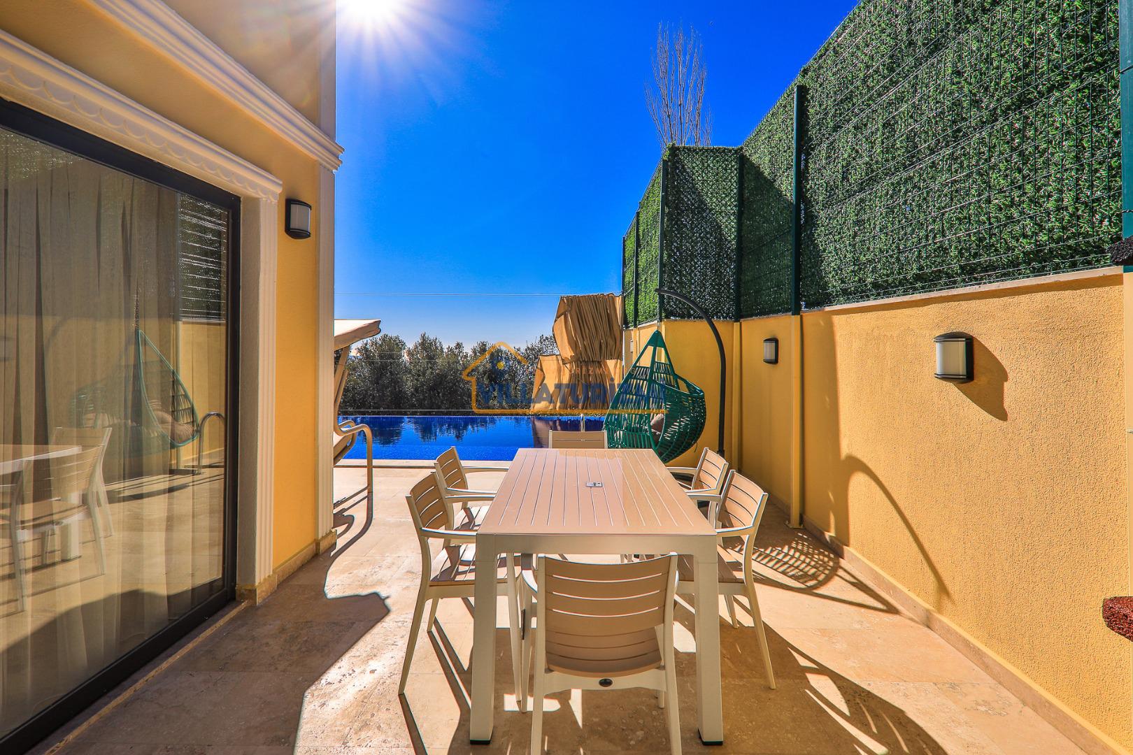 Bahçesi ve havuz terası yabancı gözlerden uzak, muhafazakar bir villadır.