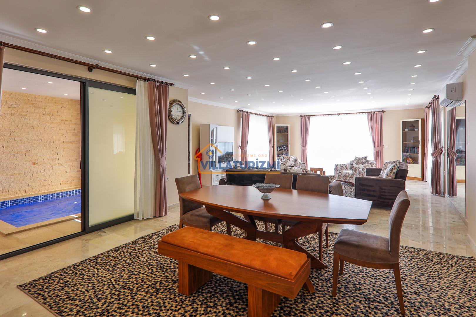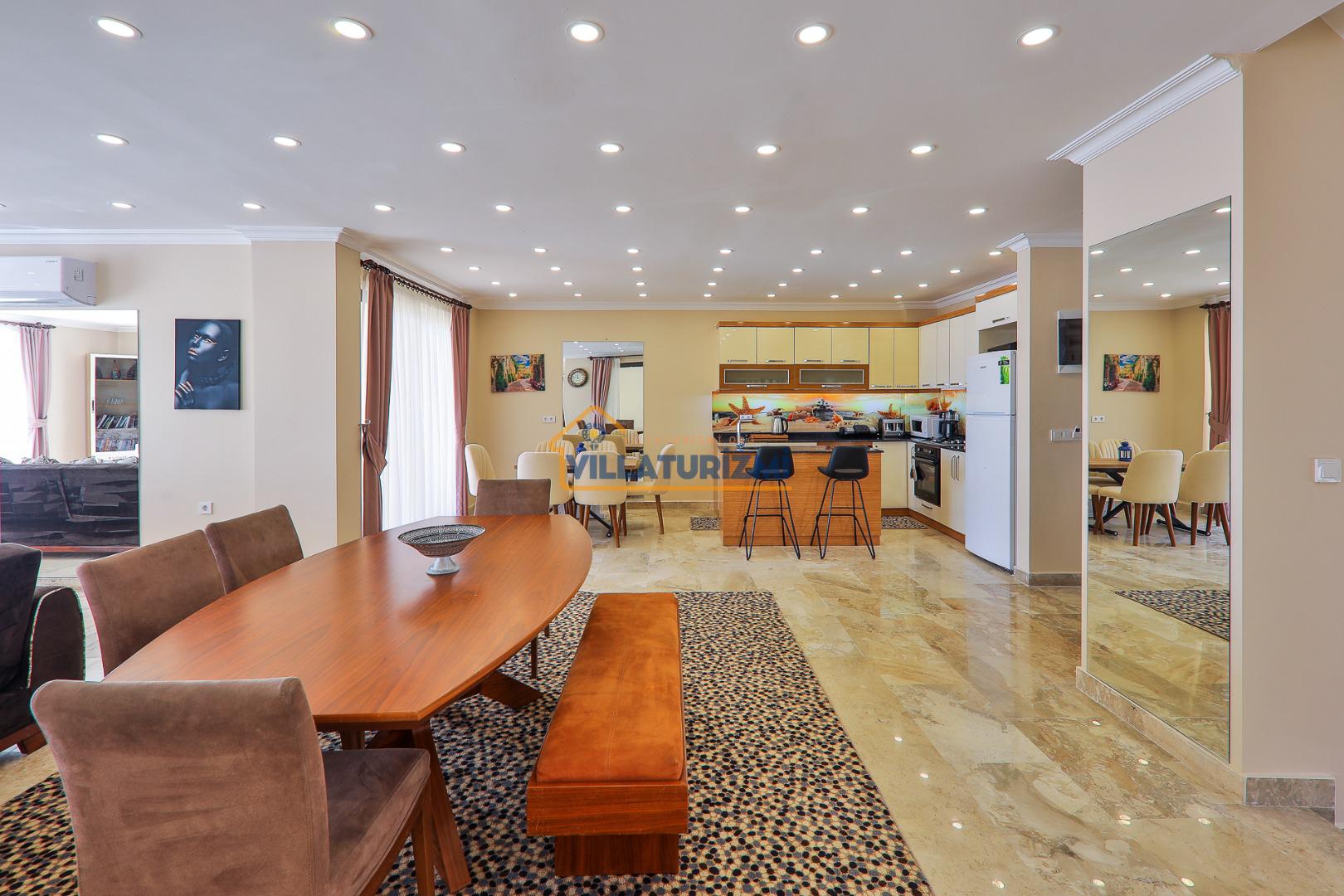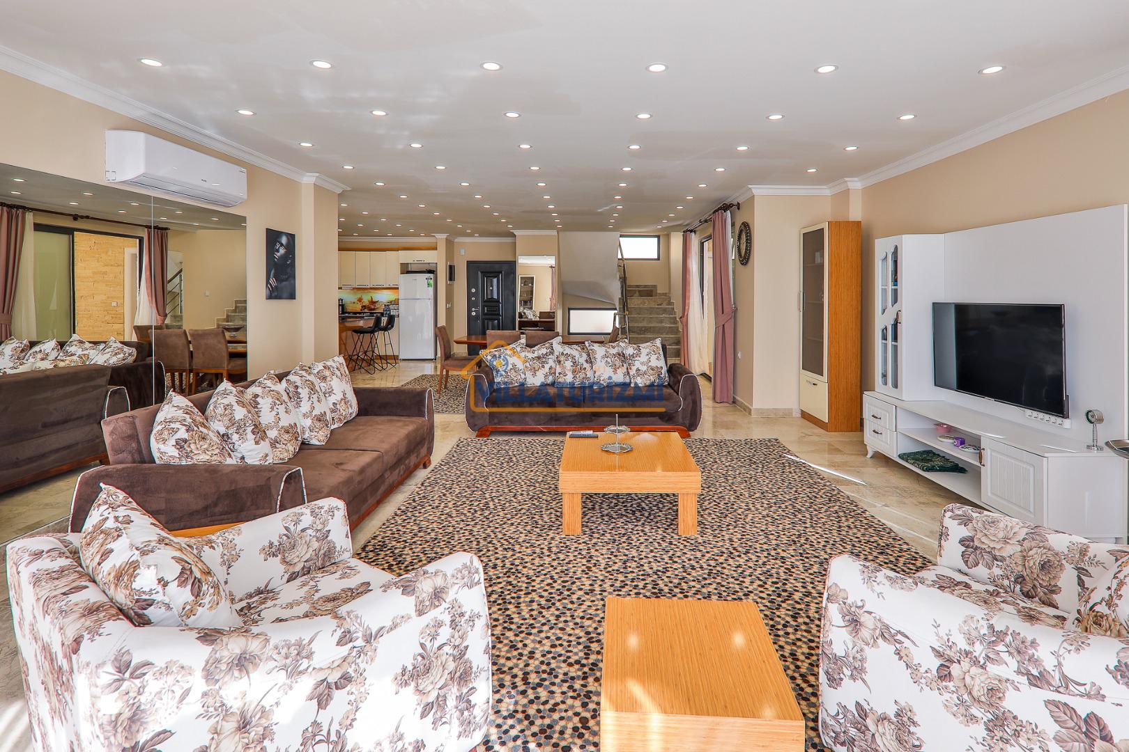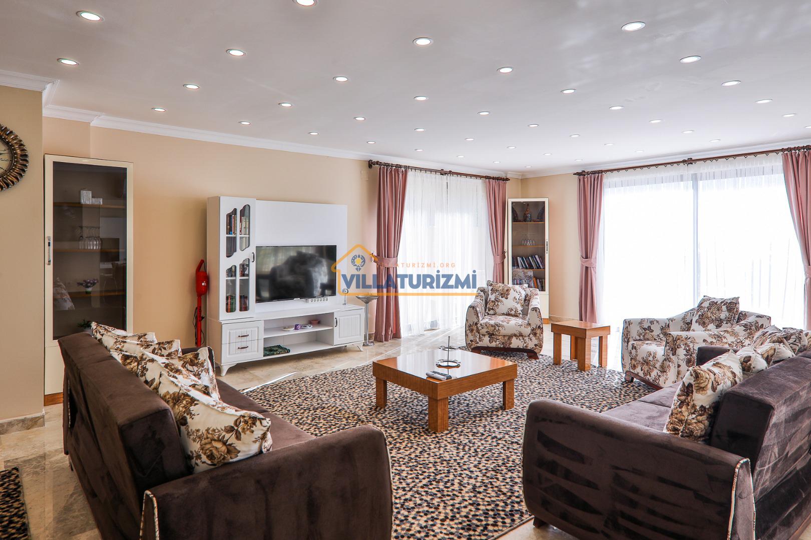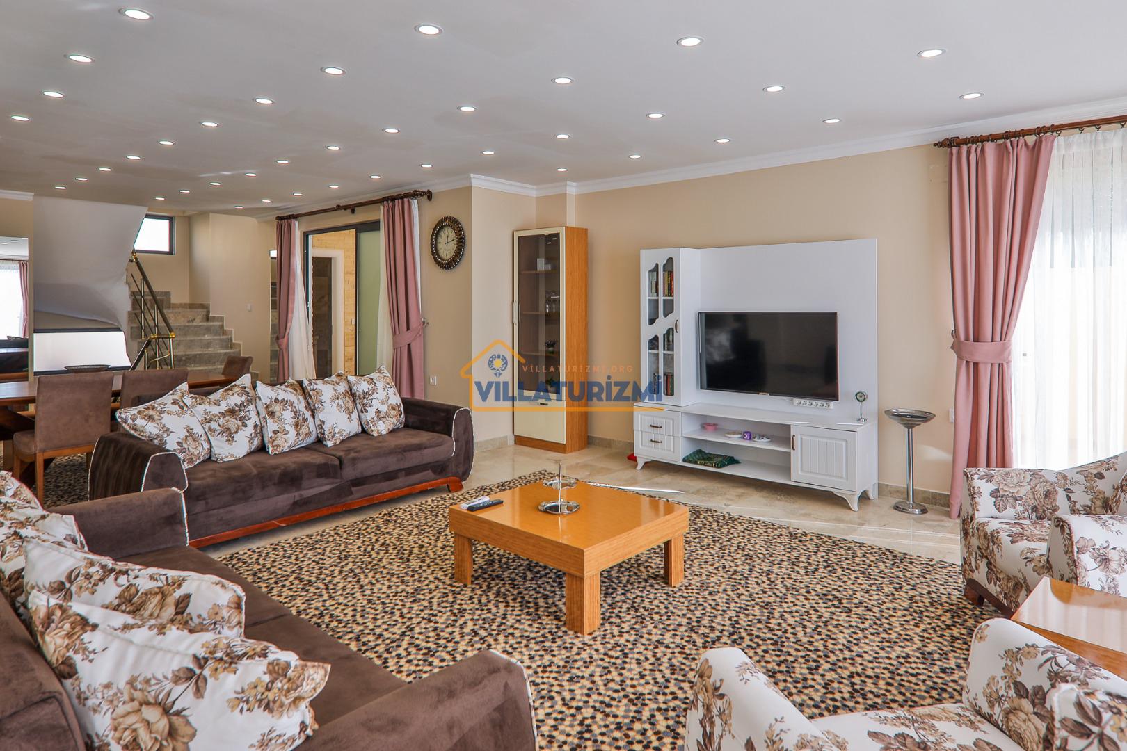 Salon: Kiralık Villamız da , LCD TV, uydu sistemi, oturma gurubu, yemek masası bulunmaktadır.