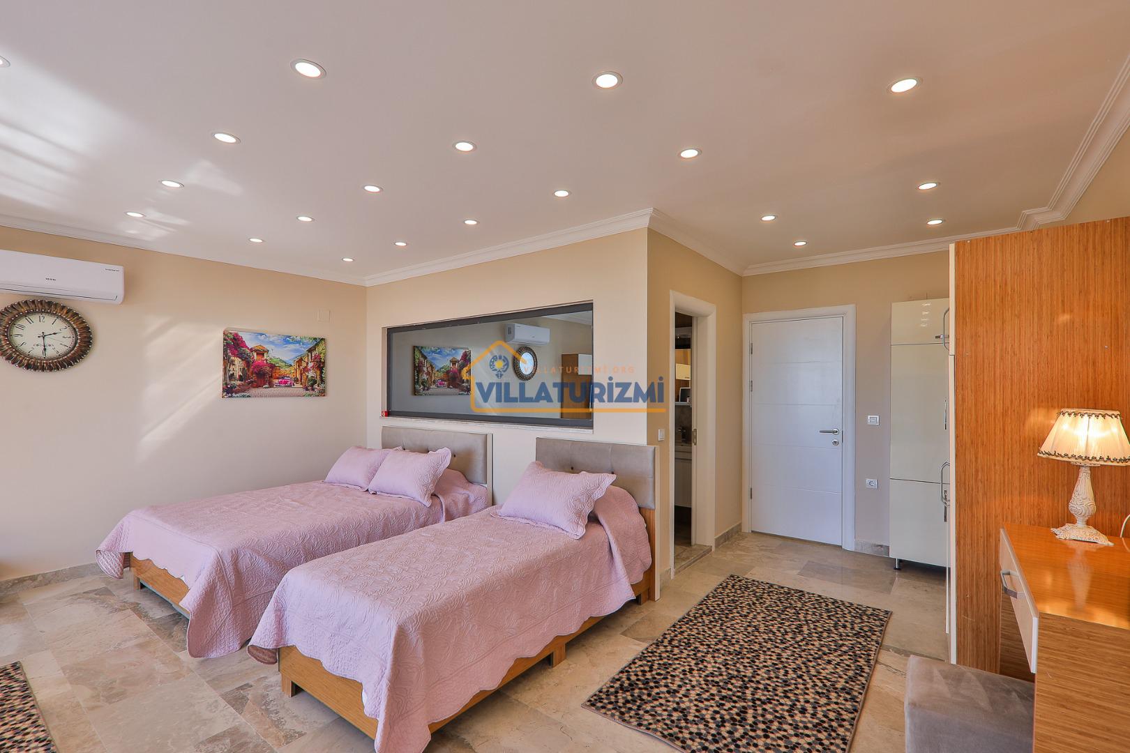 1.Yatak Odası: 1 adet çift kişilik yatak, 1 adet tek kişilik yatak, klima, komodin, elbise dolabı, jakuzi, banyo TV, bulunmaktadır.