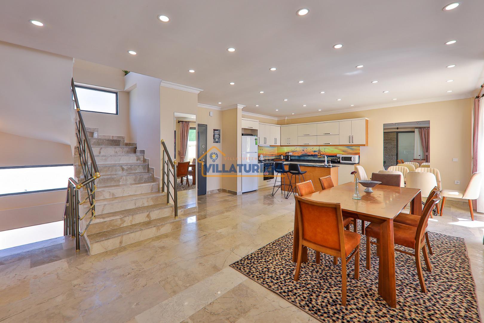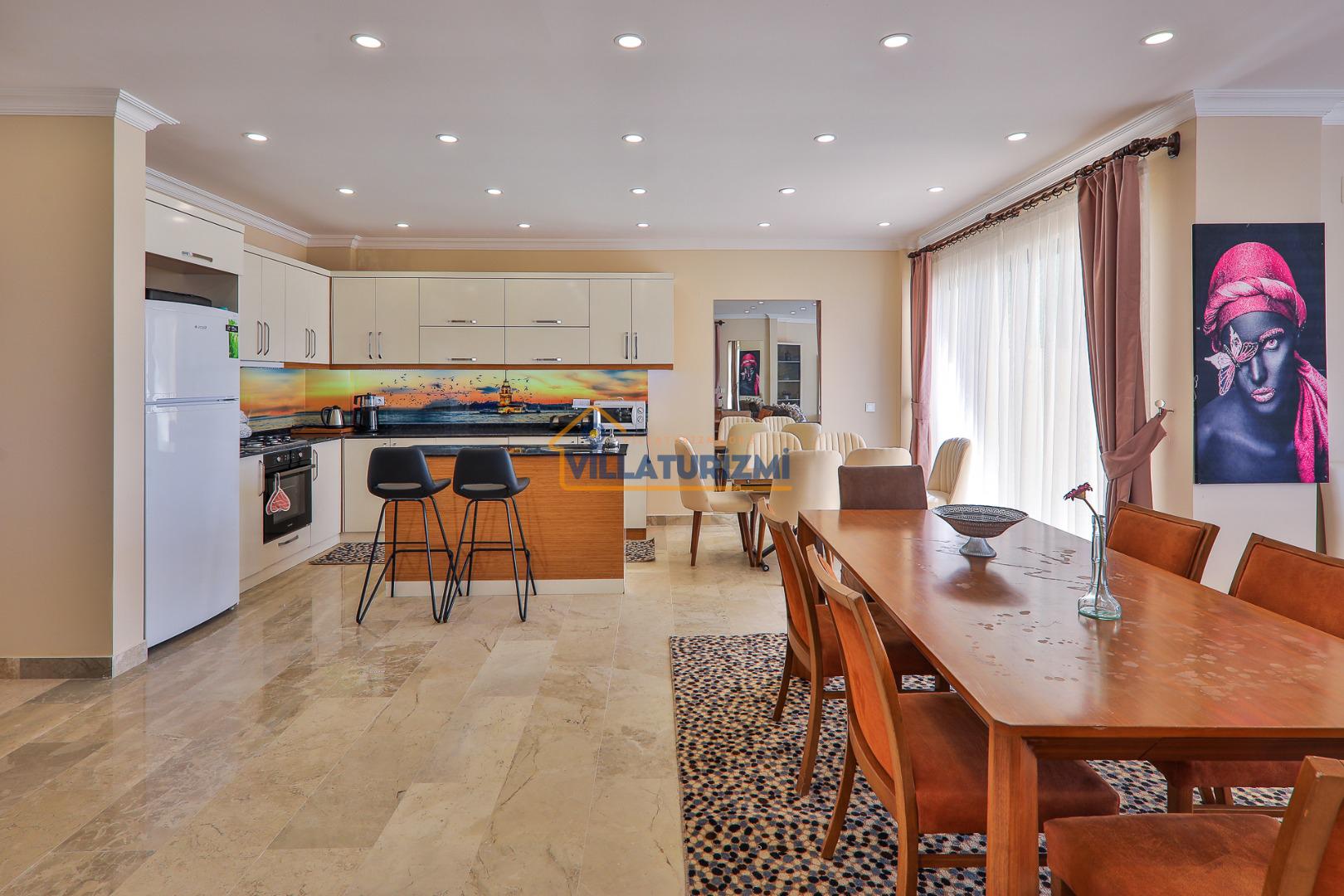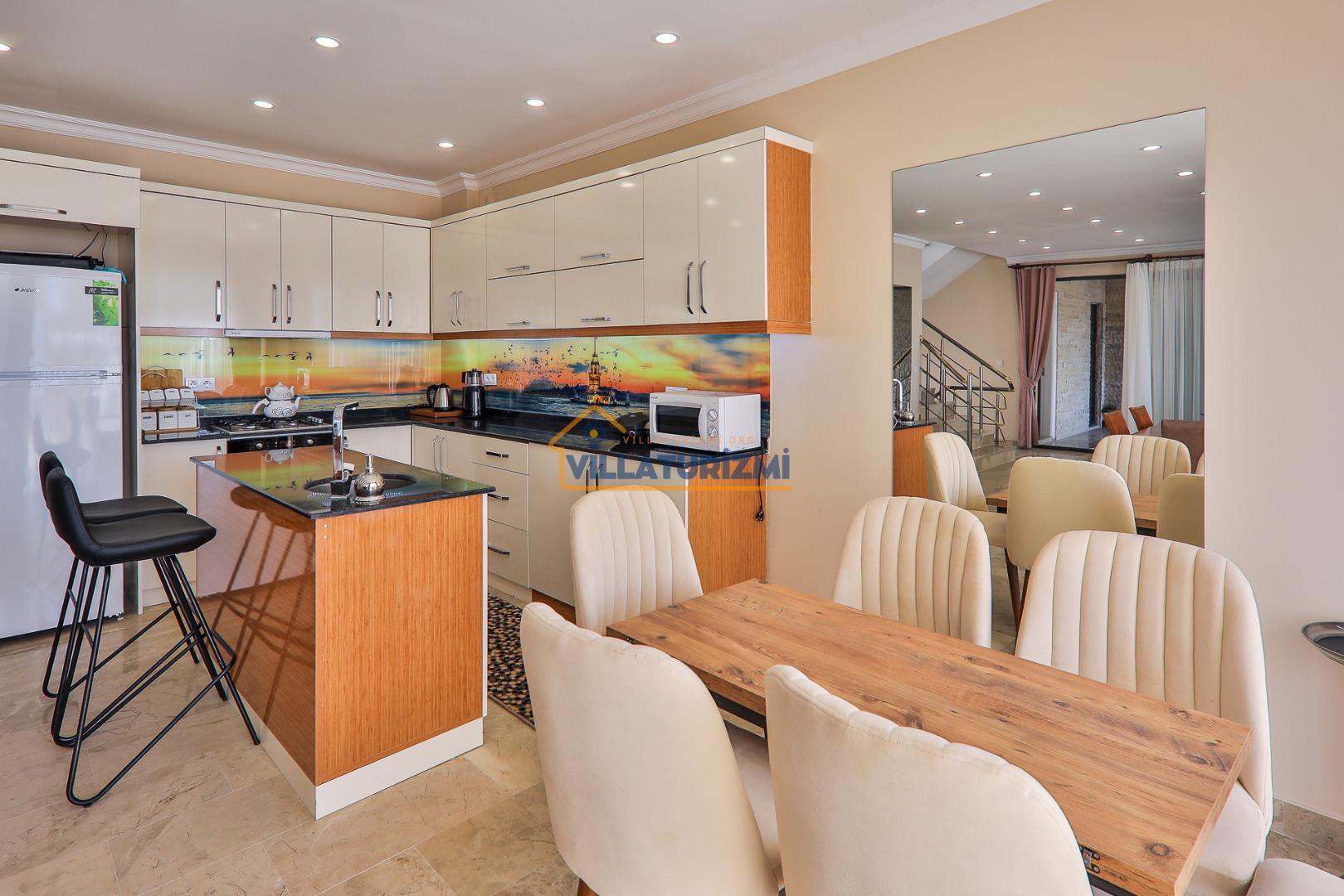 Buzdolabı, Bulaşık makinesi, Çamaşır makinesi, Ankastre ocak fırın, Mikrodalga fırın, çatal bıçak takımı, yemek masası vs. Kiralık Villada ihtiyacınız olan her şey mevcuttur. Modern Amerikan mutfağı olan kiralık villamızda sizler için tasarlanmıştır.