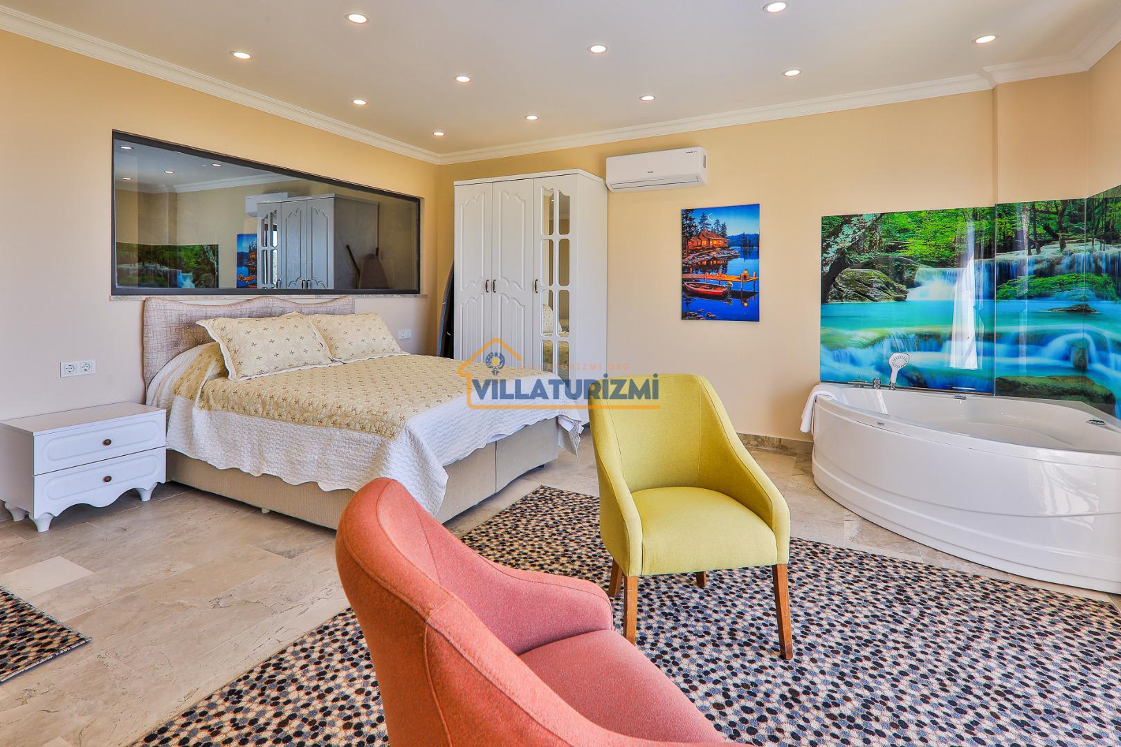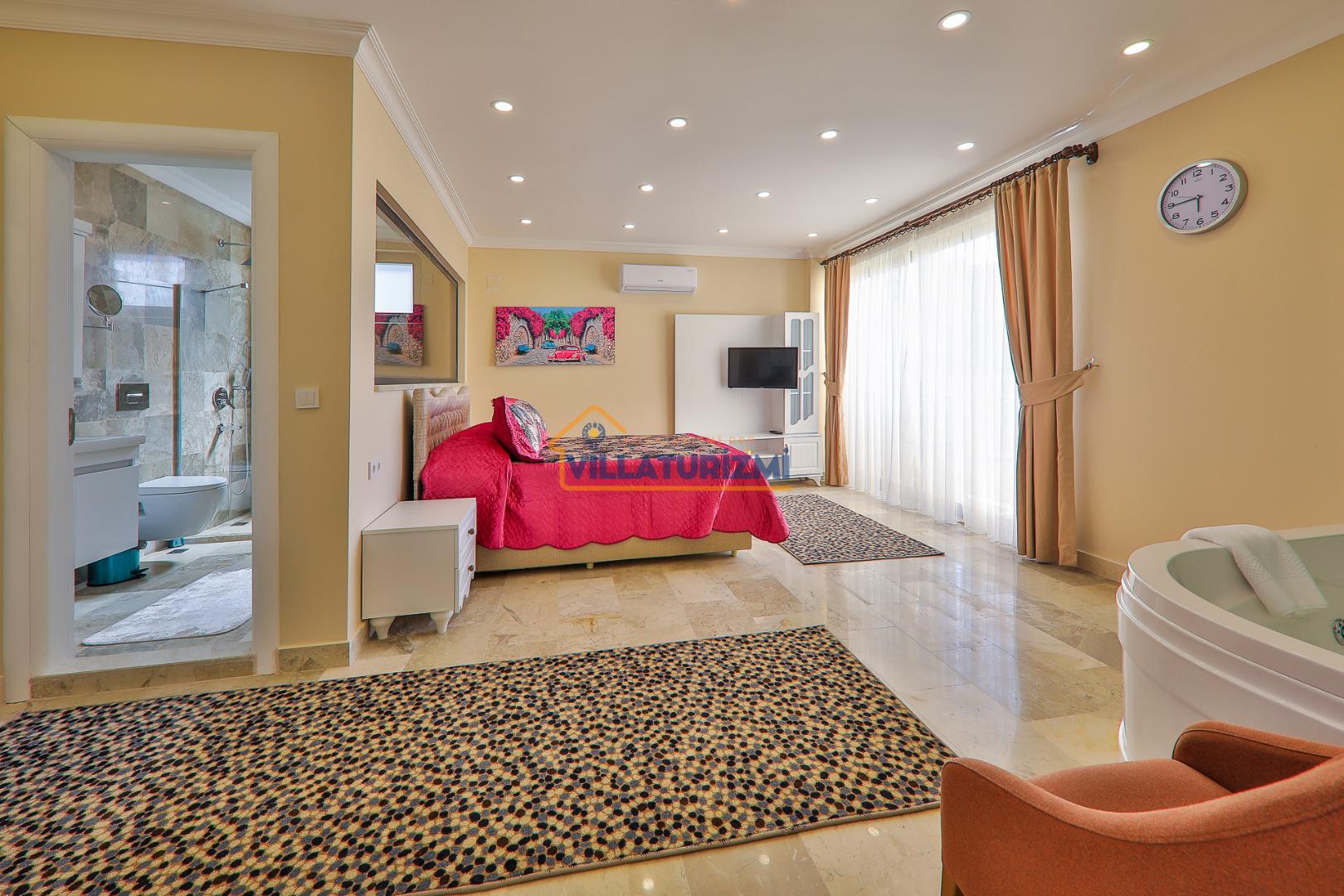 2.Yatak Odası: 1 adet çift kişilik yatak, klima, komodin, elbise dolabı, banyo, TV, jakuzi bulunmaktadır.