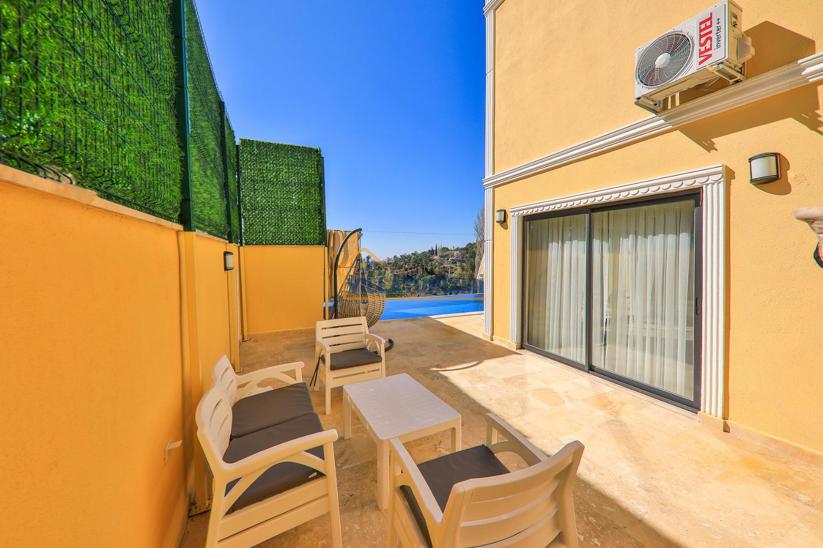 Bahçesi ve havuz terası yabancı gözlerden uzak, muhafazakar bir villadır.