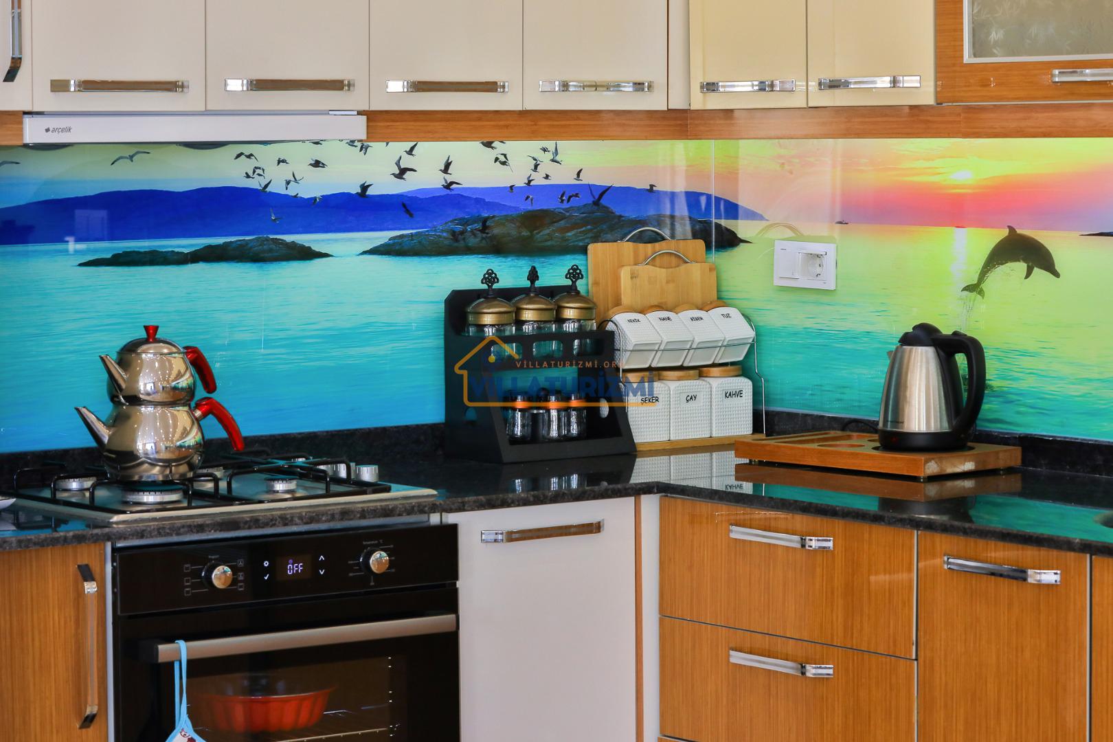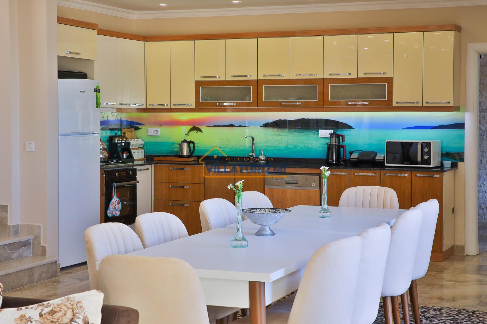 Buzdolabı, Bulaşık makinesi, Çamaşır makinesi, Ankastre ocak fırın, Mikrodalga fırın, çatal bıçak takımı, yemek masası vs. Kiralık Villada ihtiyacınız olan her şey mevcuttur. Modern Amerikan mutfağı olan kiralık villamızda sizler için tasarlanmıştır.