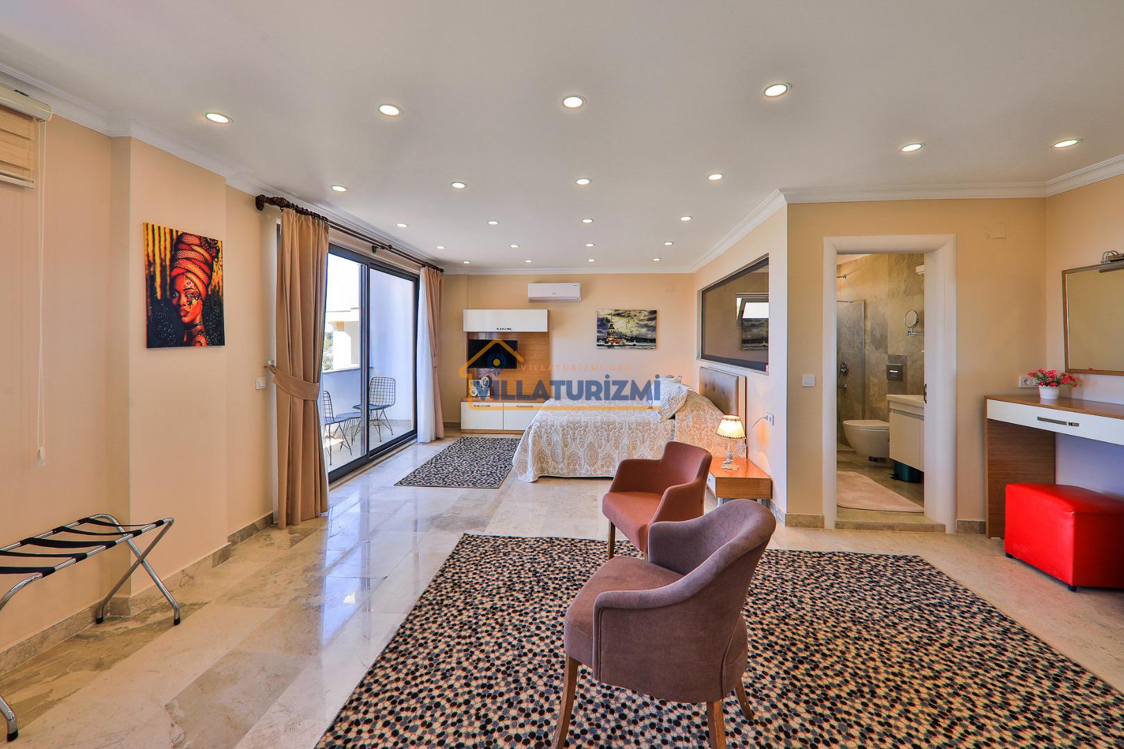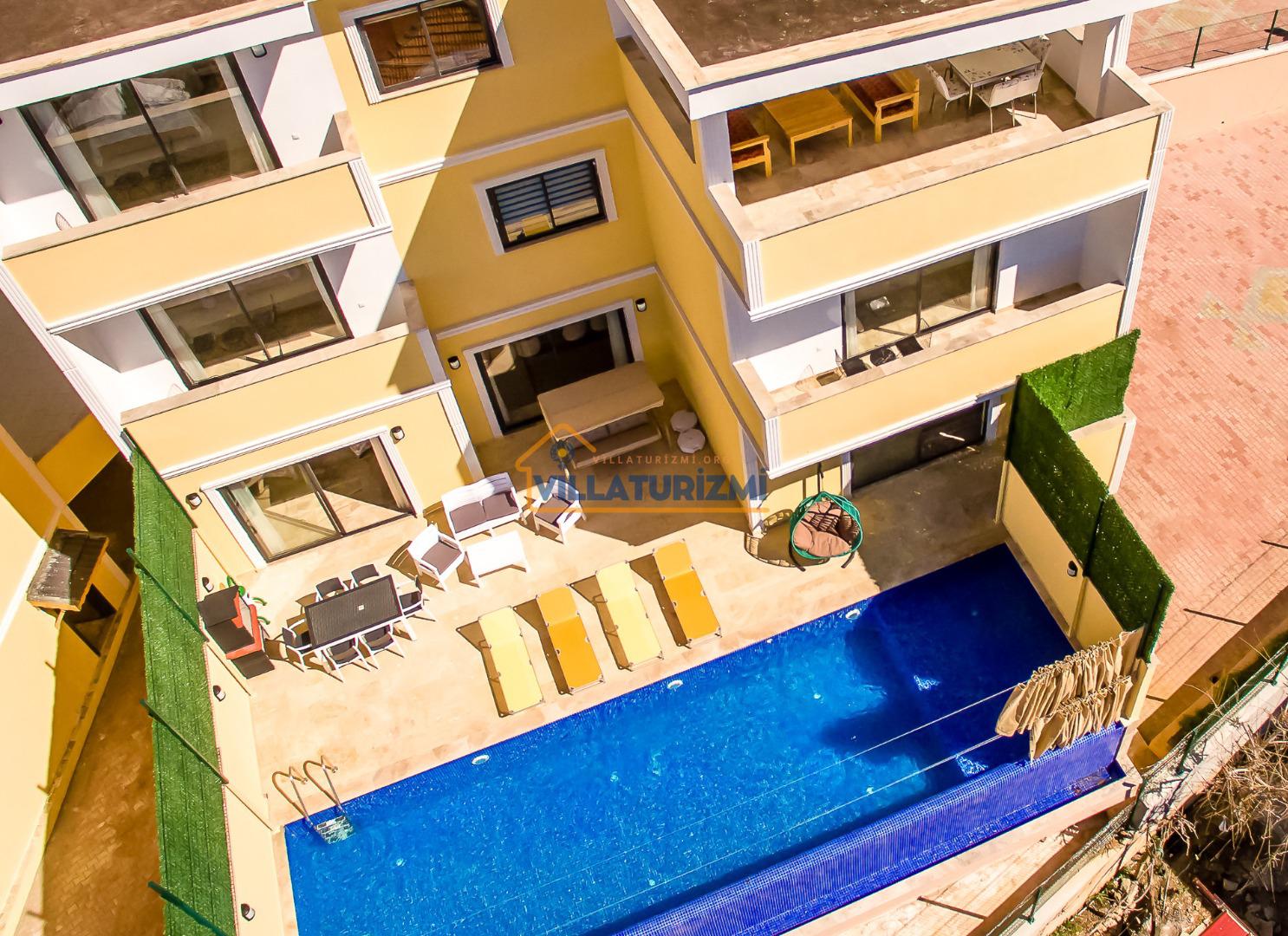 Muhafazakar villalar ve deniz manzaralı villalar kategorisinde yer alan villamız, havuzu korunaklı ve bahçesi dışarıdan görünmeyen villamız mahremiyete önem veren ailelerimiz için huzur dolu bir tatil fırsatı sunuyor.