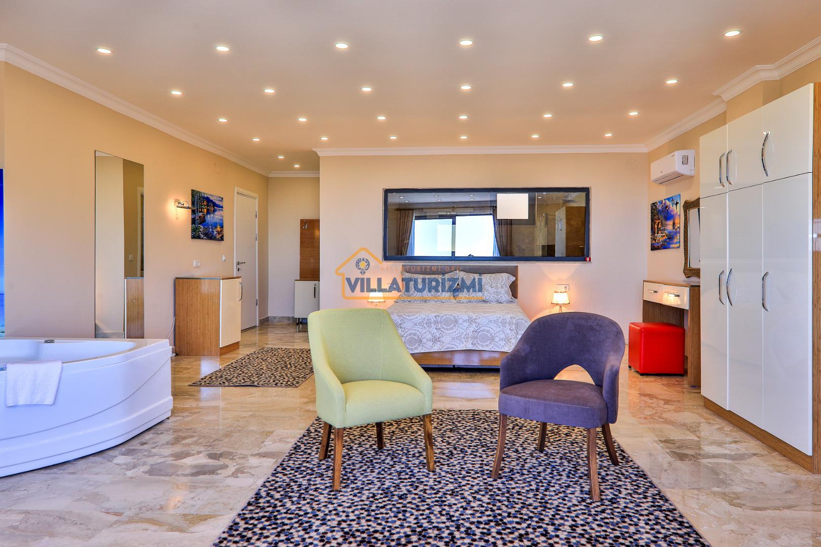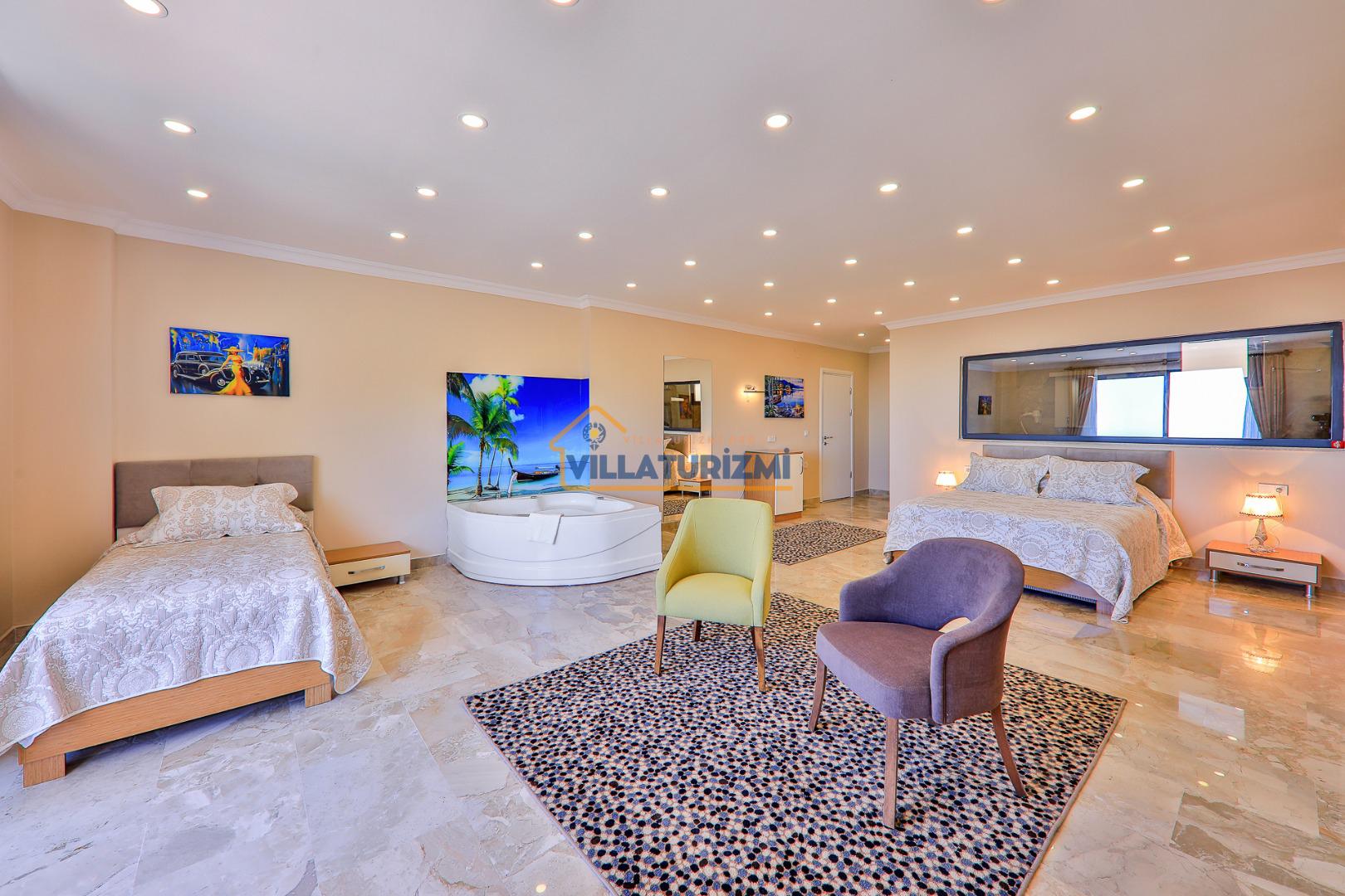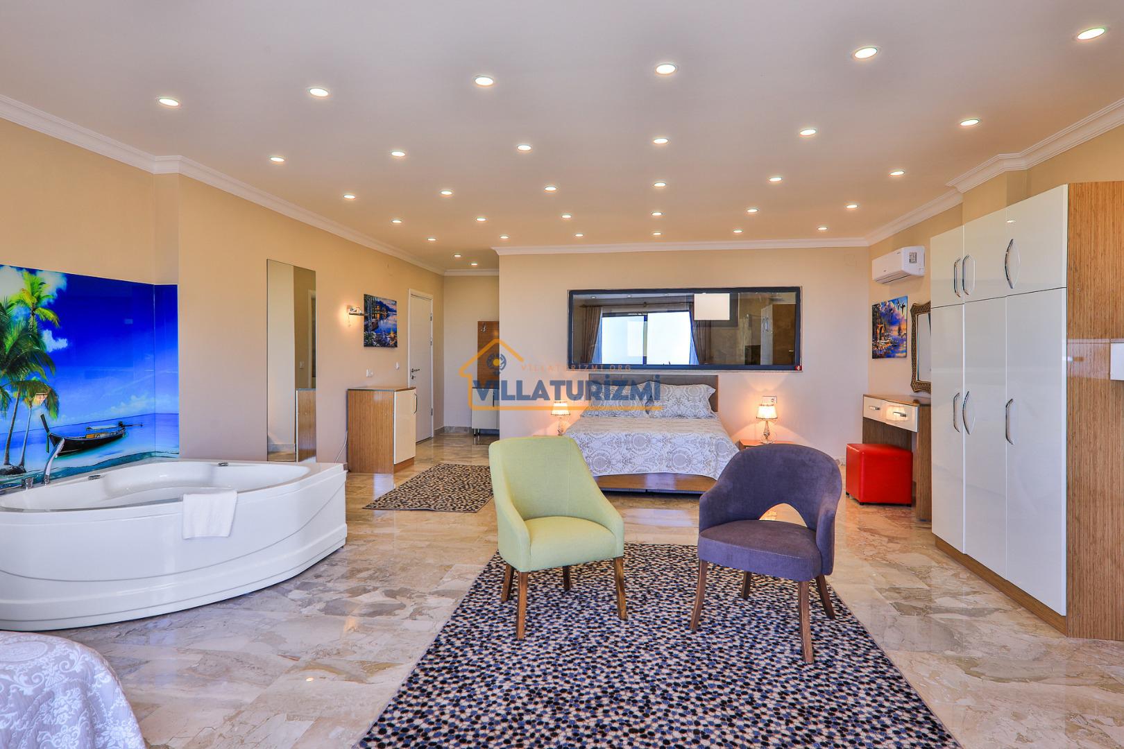 2.Yatak Odası: 1 adet çift kişilik yatak, klima, komodin, elbise dolabı, banyo, TV, jakuzi bulunmaktadır.