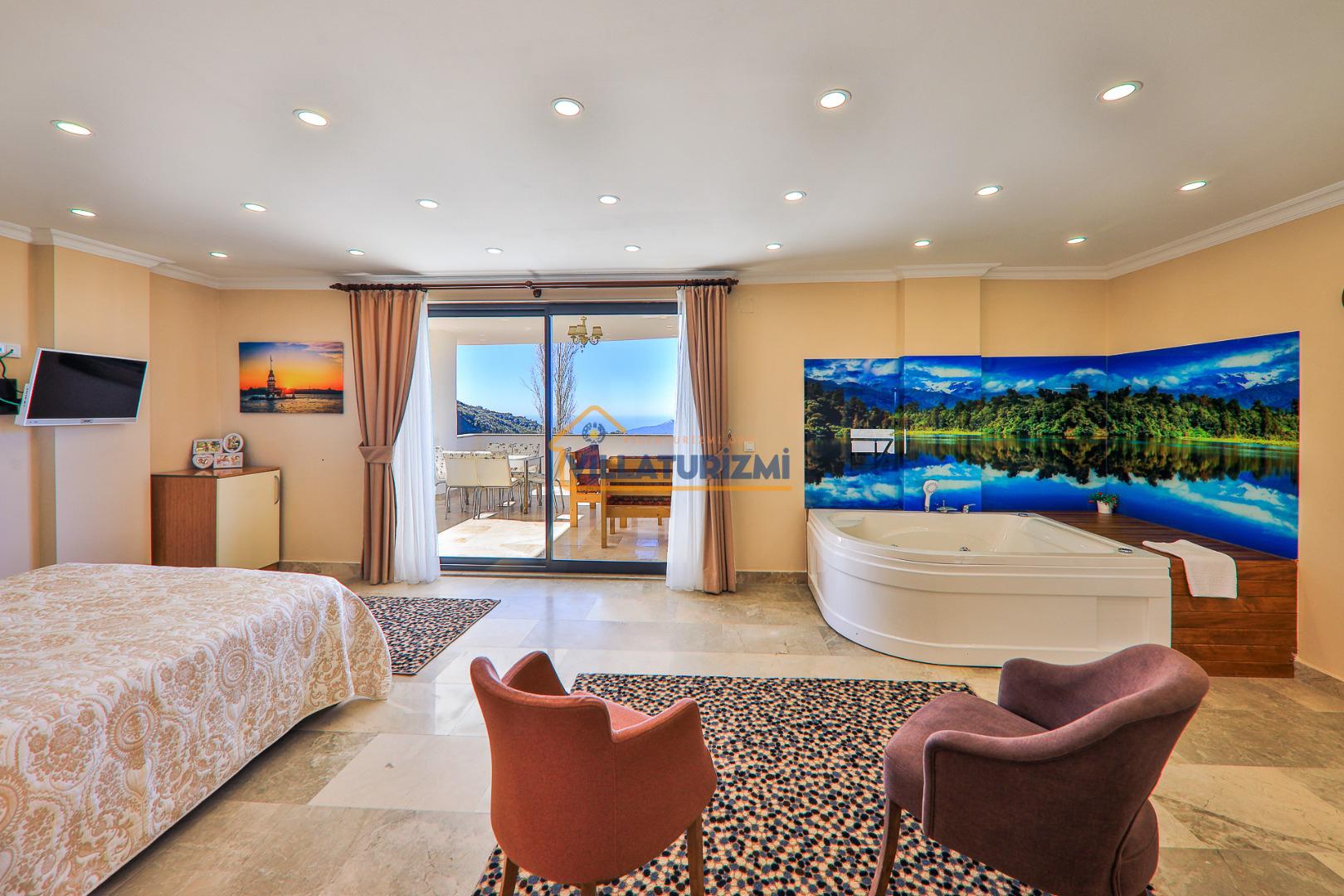 1.Yatak Odası: 1 adet çift kişilik yatak, klima, komodin, elbise dolabı, banyo, TV, jakuzi bulunmaktadır.
