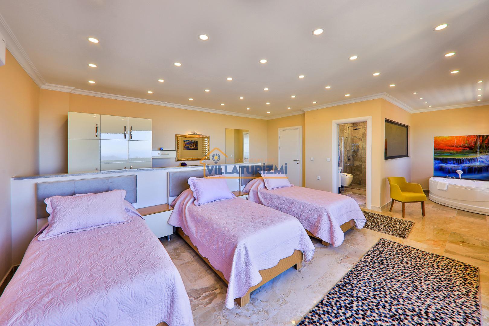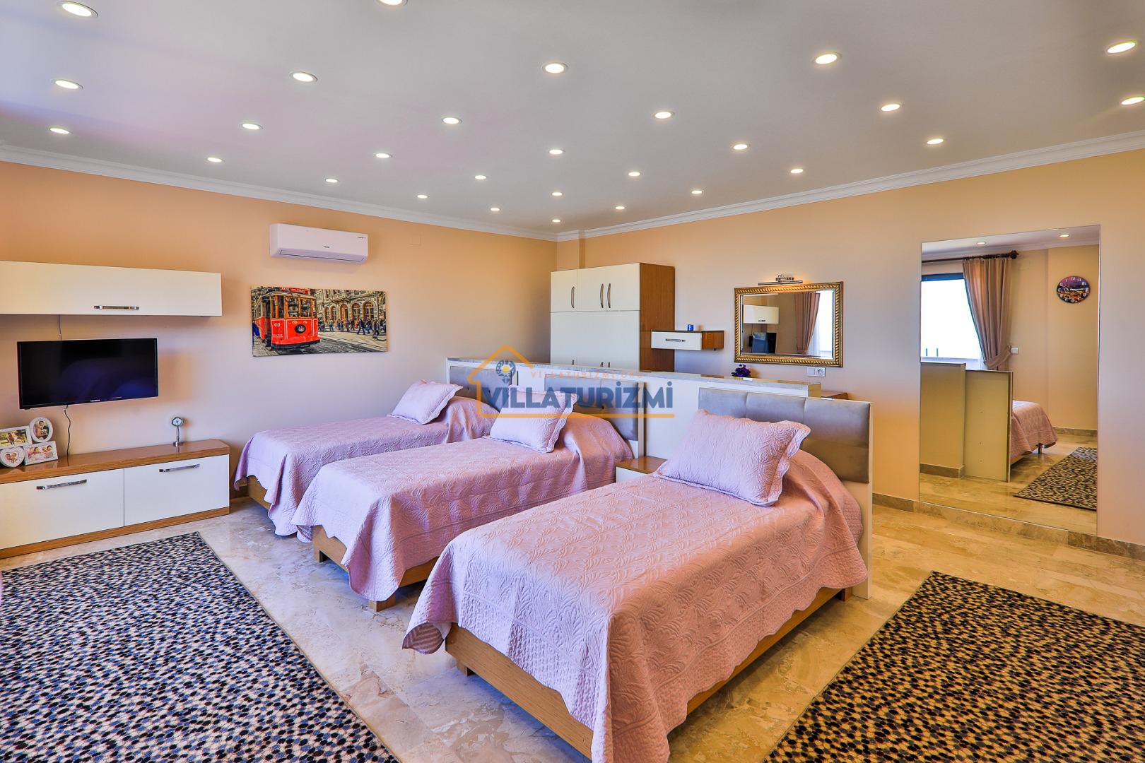 4.Yatak Odası: 3 adet tek kişilik yatak, klima, komodin, elbise dolabı, jakuzi, banyo bulunmaktadır.