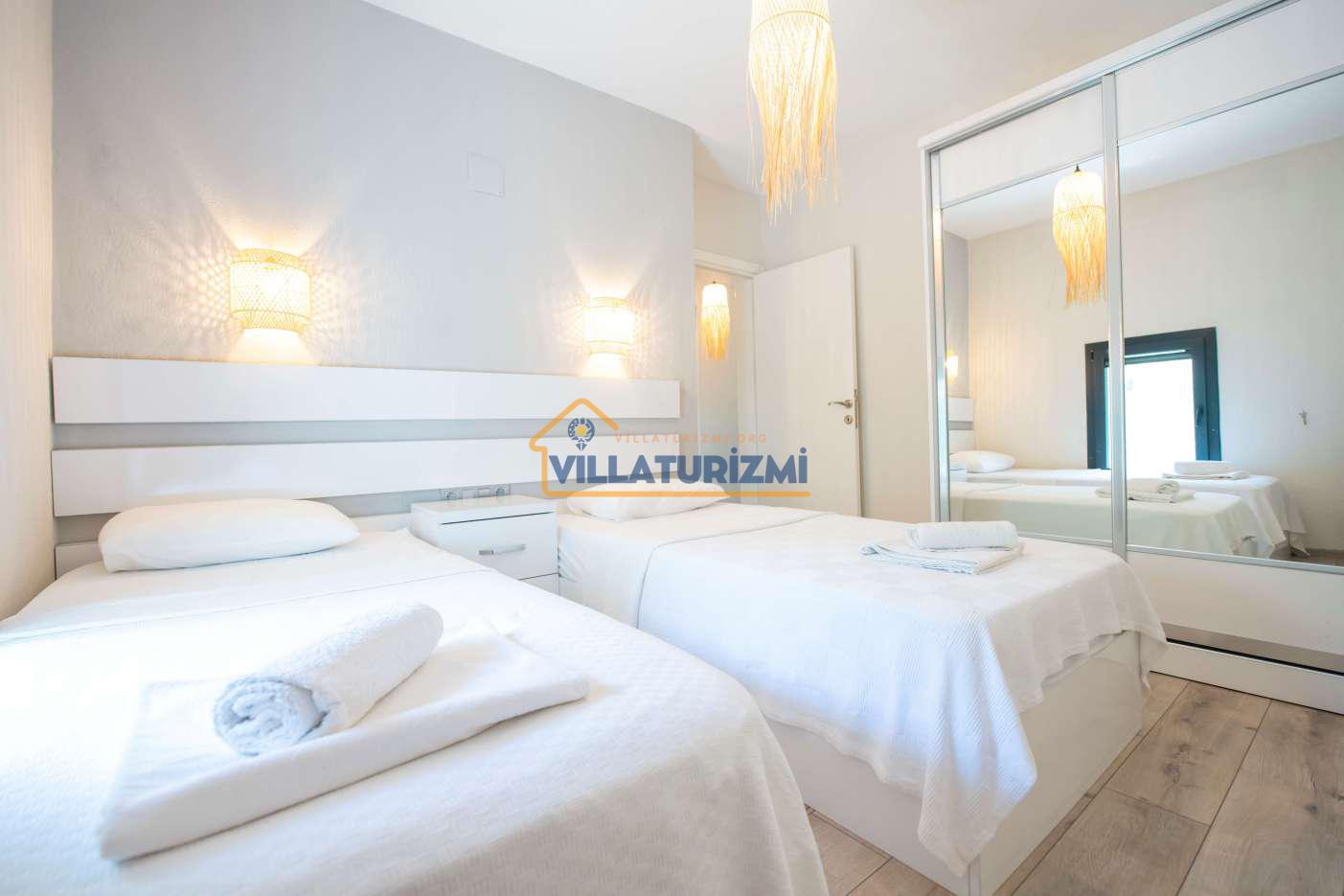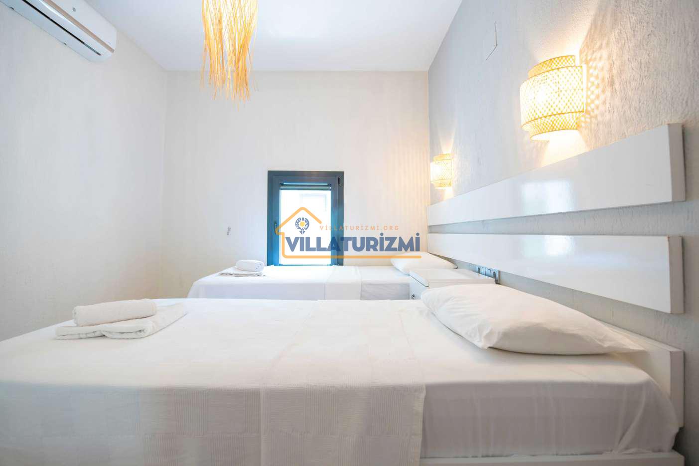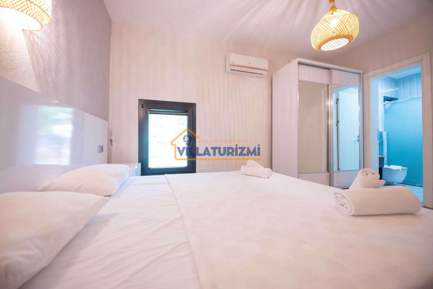 Villa Elif Ada, 2 si banyolu 4 yatak odasına ve ortak kullanımlı 1 wc/ banyoya sahip olup 8 kişi konaklama kapasitelidir. 4 yatak odasında 2 çift kişilik ve 4 tek kişilik yatak bulunmaktadır.