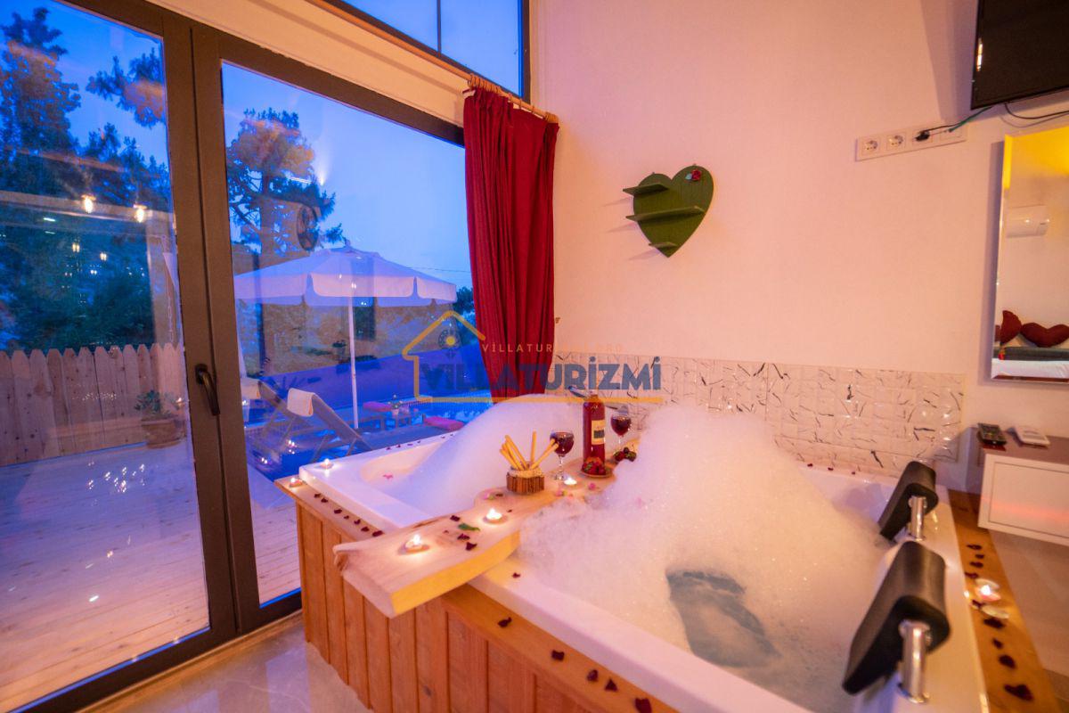 Villa Emcey, Kalkan'ın doğal güzellikleriyle çevrili olan İslamlar bölgesinde yer almaktadır. Bu muhteşem konum, misafirlere huzurlu ve unutulmaz bir tatil deneyimi sunmaktadır. Villanın bahçesinde bulunan özel havuz, konuklara serinleme ve eğlenceli vakit geçirme imkanı sunmaktadır. Ayrıca, villanın yatak odasında yer alan jakuzi, konuklara rahatlatıcı bir deneyim sunmaktadır.