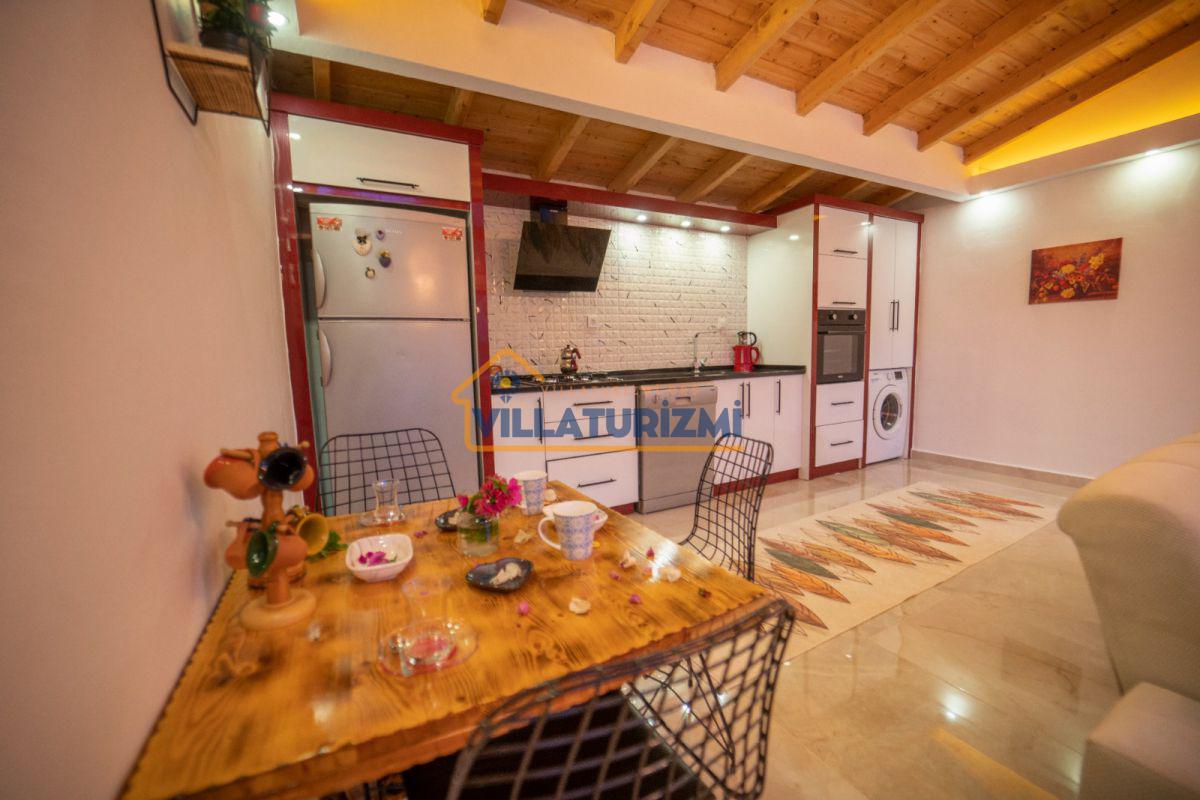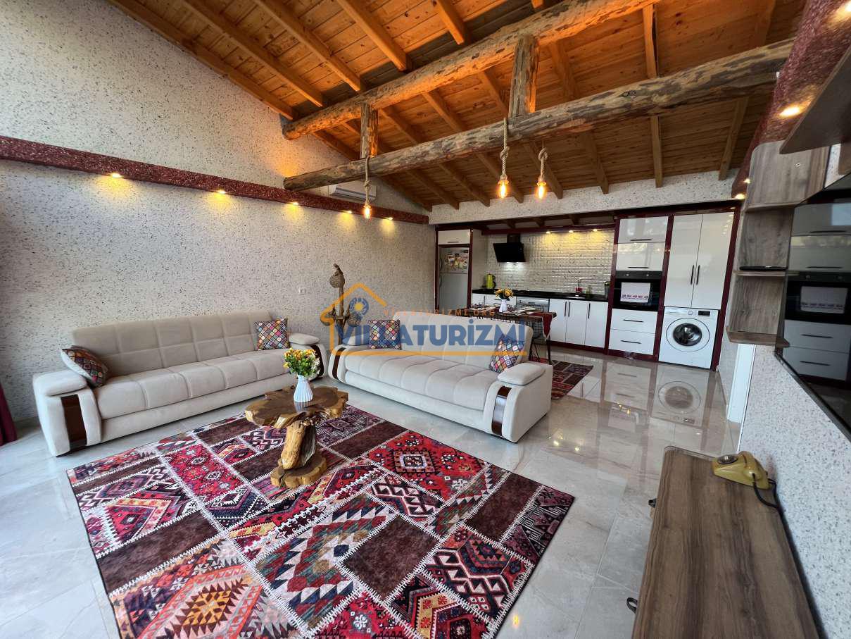 Salon & Mutfak:Koltuk takımı, zigon sehpa, televizyon, klima, wifi yemek masası, sandalyeler, yemek takımı, çatal-bıçak seti, tam teşekkül mutfak ekipmanları buzdolabı, çamaşır makinesi, bulaşık makinesi, fırın, mikrodalga fırın, ankastre ocak- davlumbaz, çaycı, vb.