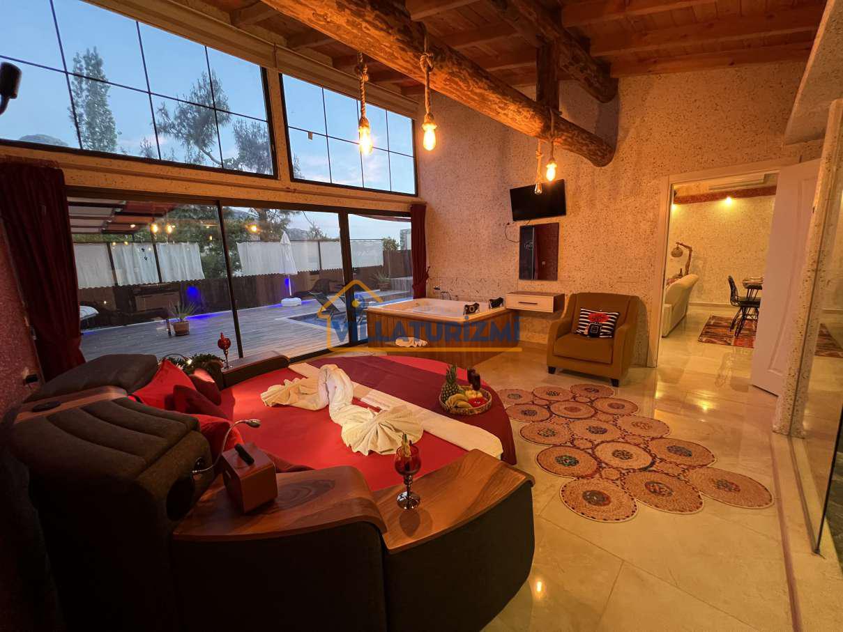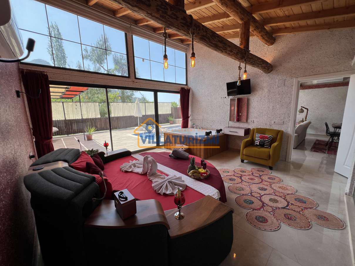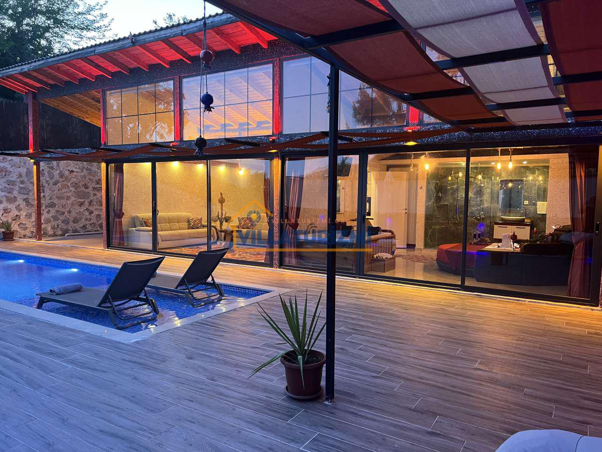 Havuzu korunaklı olan villamız gözlerden uzak tatil yapmak isteyen aileler ve balayı çiftlerinin gözdesi olan villalarımızdandır.