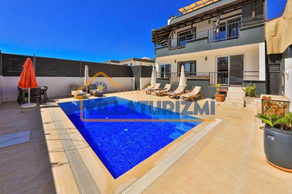 Villa Emir'in en dikkat çekici özelliklerinden biri de özel havuz alanıdır. Havuz çevresi, dışarıdan gelebilecek bakışlardan korunacak şekilde tasarlanmış perdeleme sistemi ile donatılmıştır. Dolayısıyla, misafirler, yüzme keyfini ya da güneşlenmeyi gönül rahatlığıyla yaşayabilmektedirler. Bu özellik, özellikle muhafazakar bir tatil arayan aileler ve bireyler için büyük bir avantaj sağlamaktadır. Çocukların güvenli bir ortamda oynayabileceği geniş bir havuz alanı, ailenizle geçireceğiniz değerli anlara eşlik ederken, aynı zamanda tahsis edilen alanın mahremiyetini de koruyacaktır.