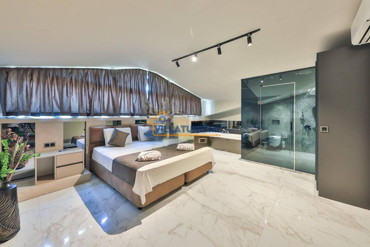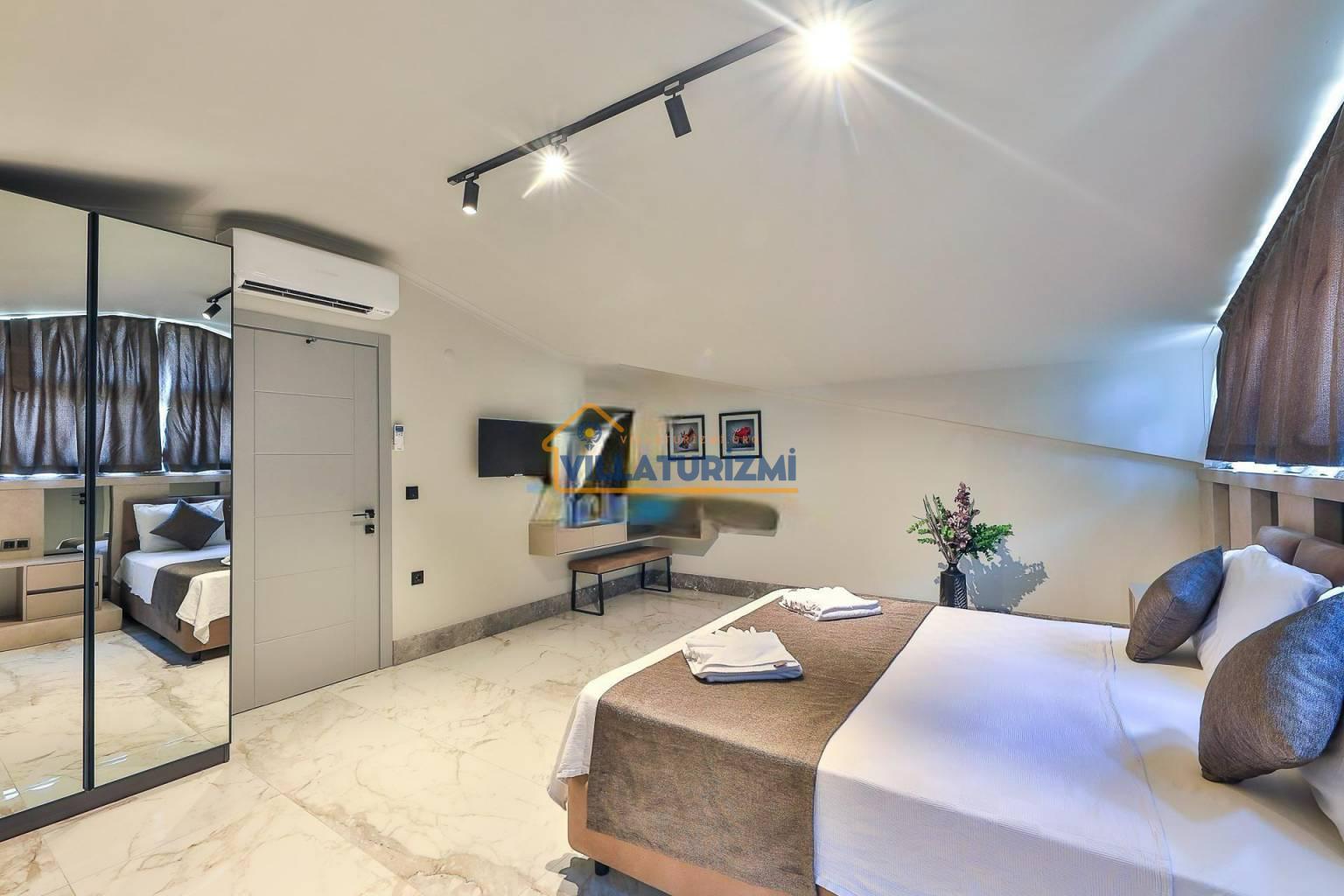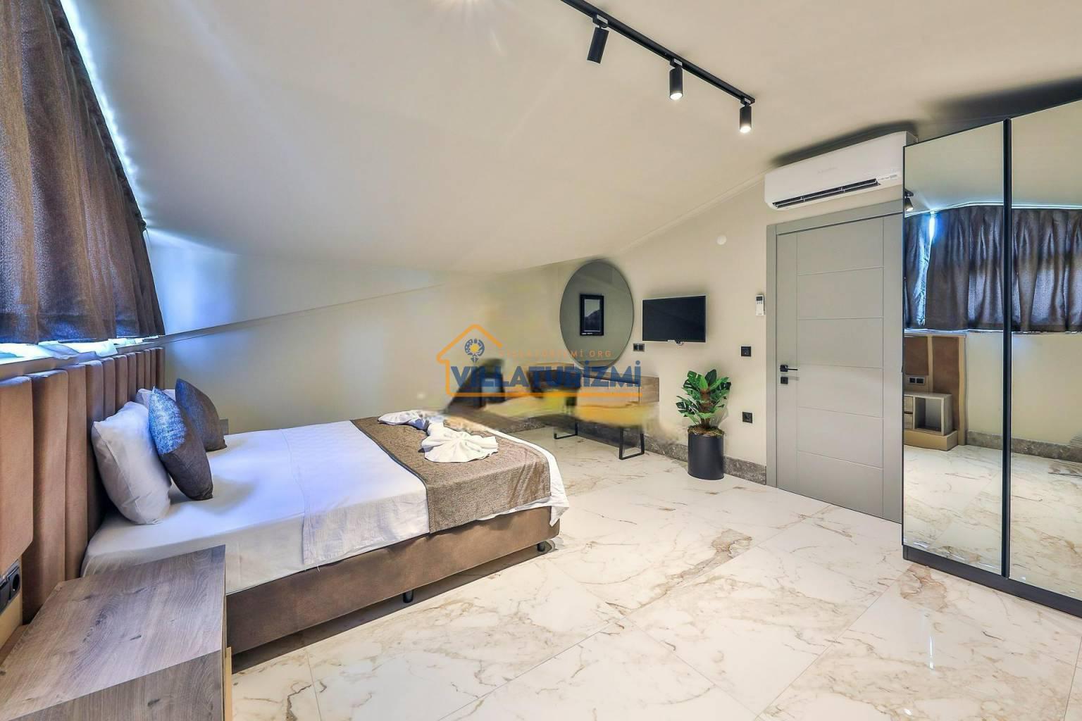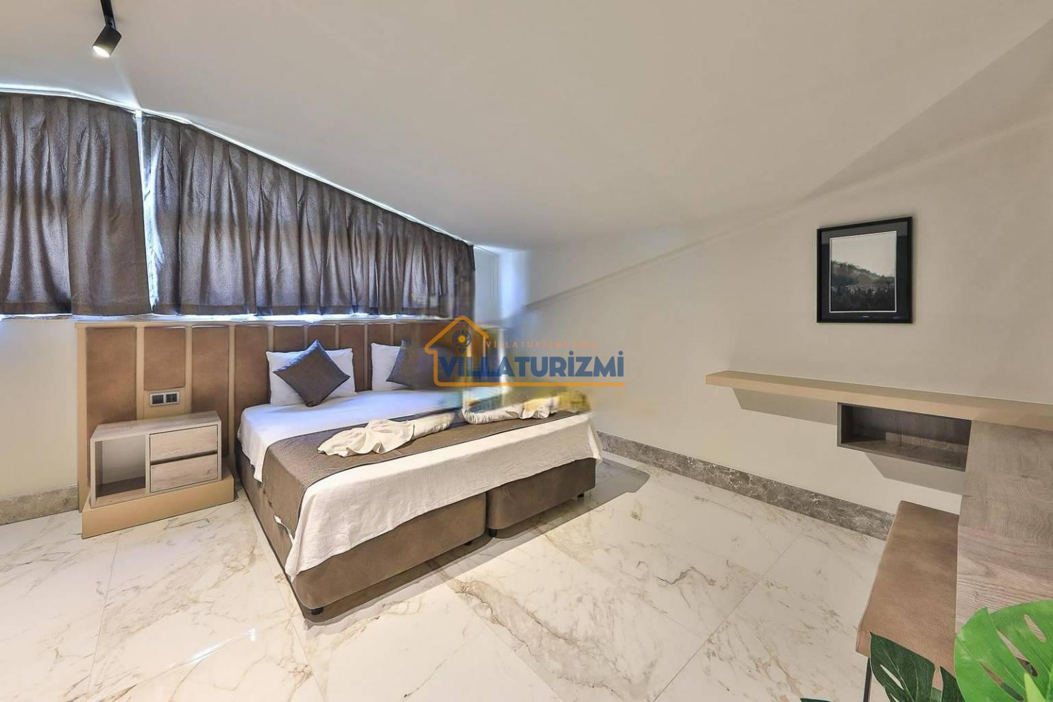 4. Yatak Odası : Suit Aile Yatak Odası (Çatı Katta) Çift kişilik yatak, Elbise dolabı, Komidin, Makyaj masası, Klima, Banyo bulunmaktadır
