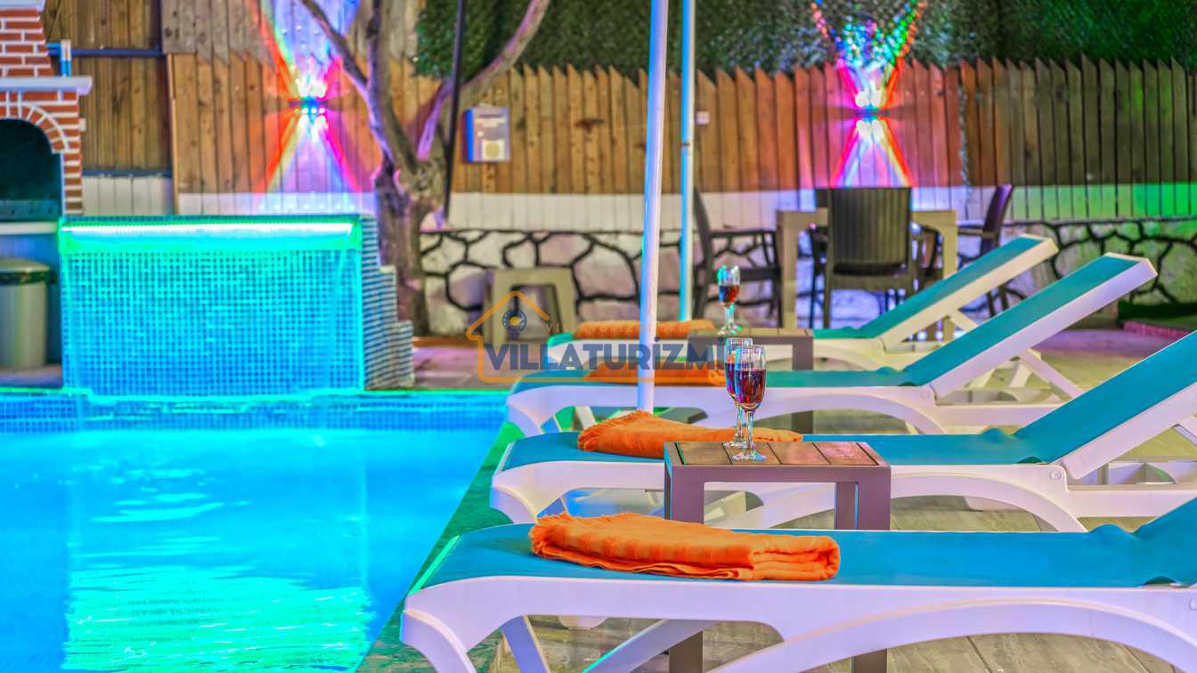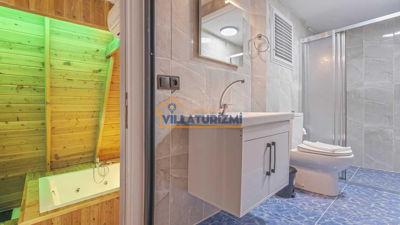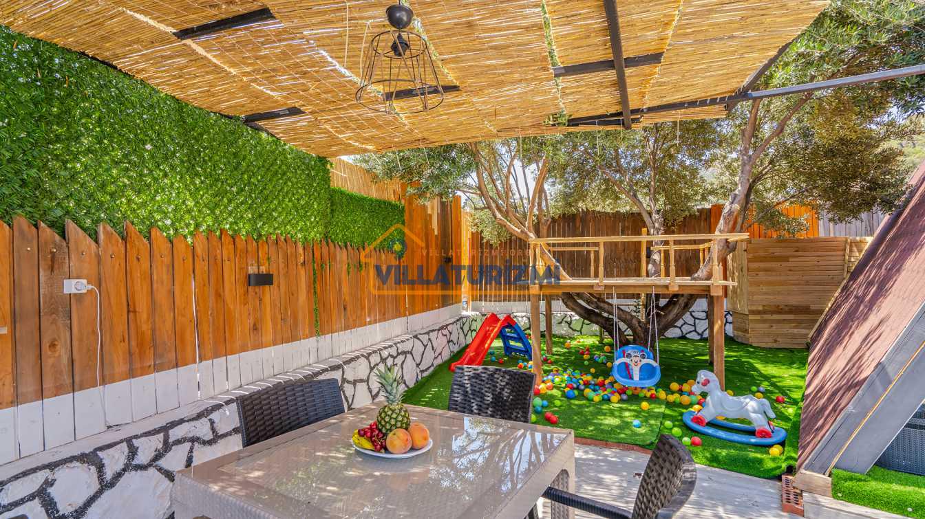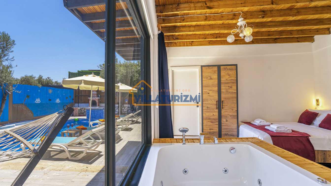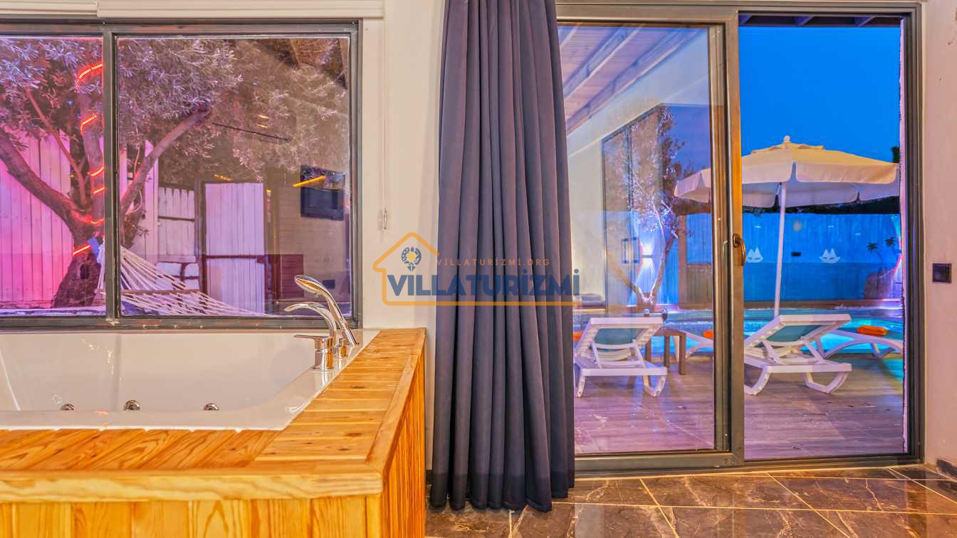 Villa Esila'nın her iki ana yatak odasında da bulunan jakuziler, misafirlerin rahatlamasını sağlarken lüks ve konforu bir arada sunmaktadır. Aynı zamanda villamızda çocuk oyun alanı, çocuk havuzu ve sinema odası gibi olanaklar da bulunmaktadır. Bu sayede hem yetişkinler hem de çocuklar, keyifli vakit geçirebilecekleri bir tatilin tadını çıkaracaklardır.