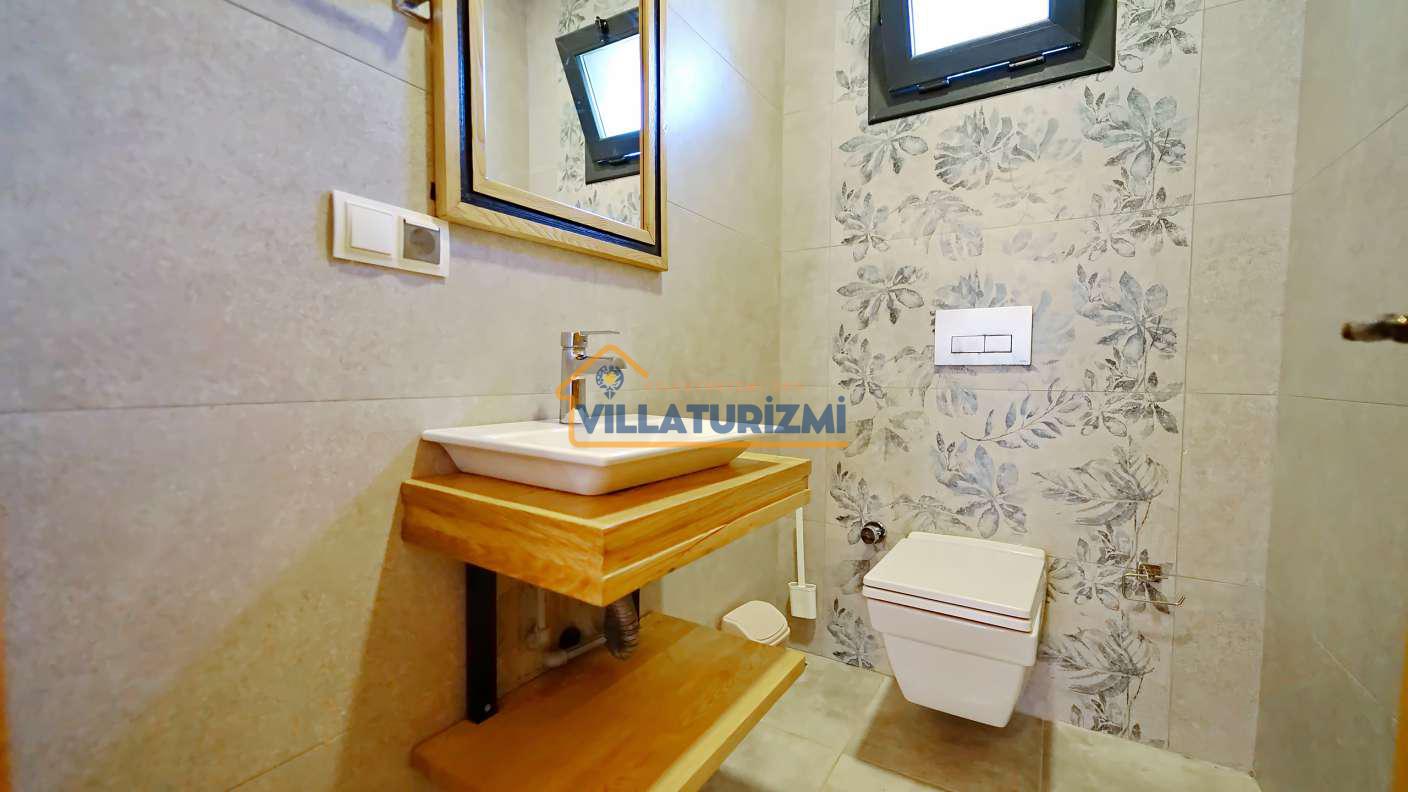 Kiralık villanın iç mekan tasarımı da konfor ve estetik anlayışını yansıtmaktadır. Şık ve modern bir dekorasyona sahip üç yatak odası, her bir misafirin rahat etmesini sağlayacak şekilde özenle düzenlenmiştir. Ferah yaşam alanları, aileniz veya arkadaşlarınızla bir araya gelerek keyifli sohbetler edebileceğiniz, oyunlar oynayabileceğiniz veya film izleyebileceğiniz geniş bir alan sunar. Tam donanımlı mutfak, kendi yemeklerinizi hazırlamak isteyenler için her türlü imkanı sağlarken, villanın genel olarak sağladığı konfor, misafirlerin kendilerini evlerinde hissetmelerine yardımcı olur.