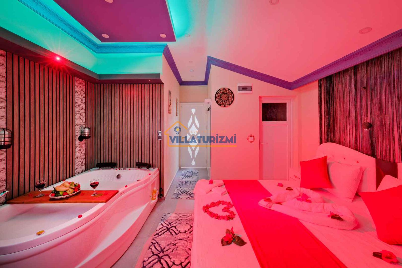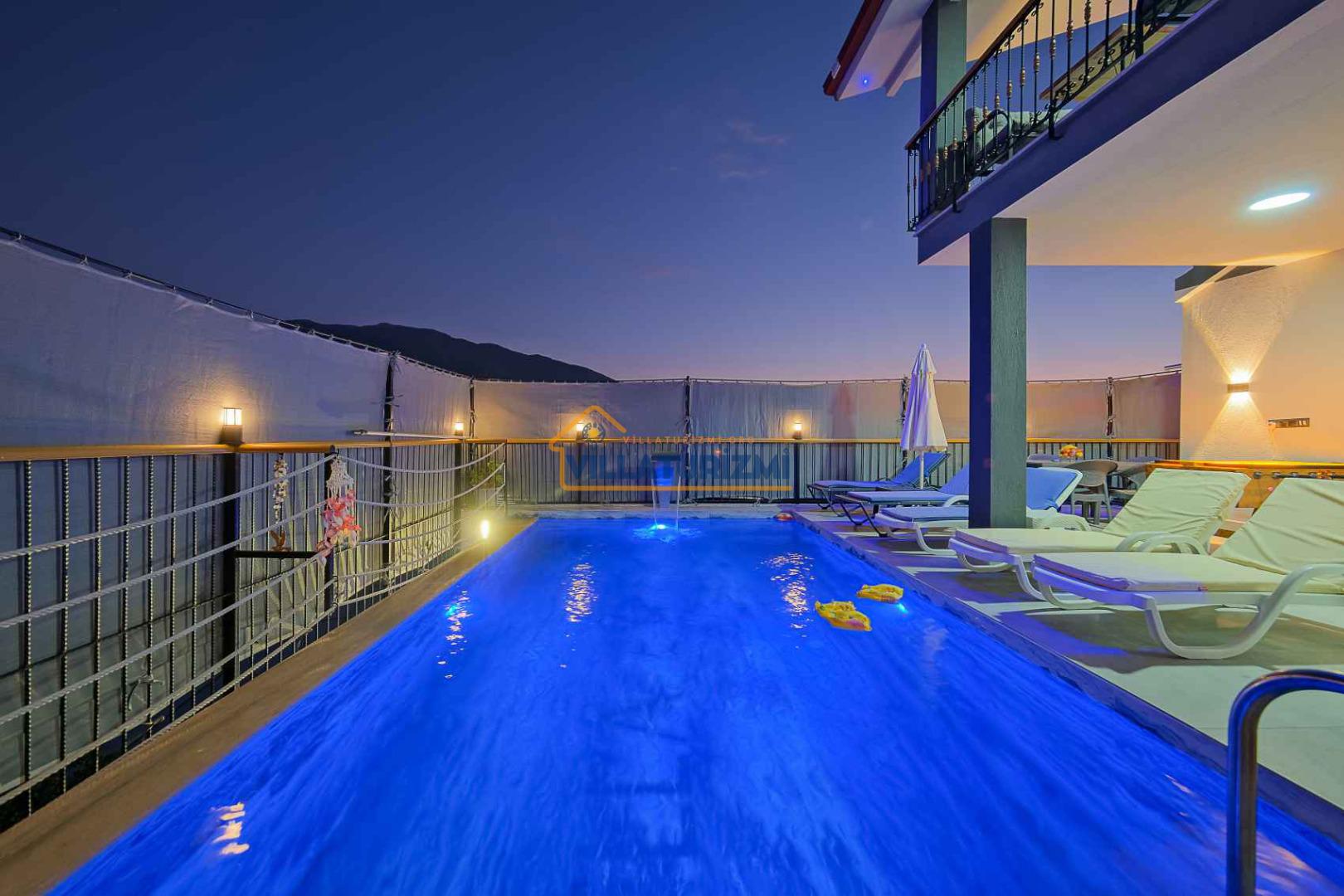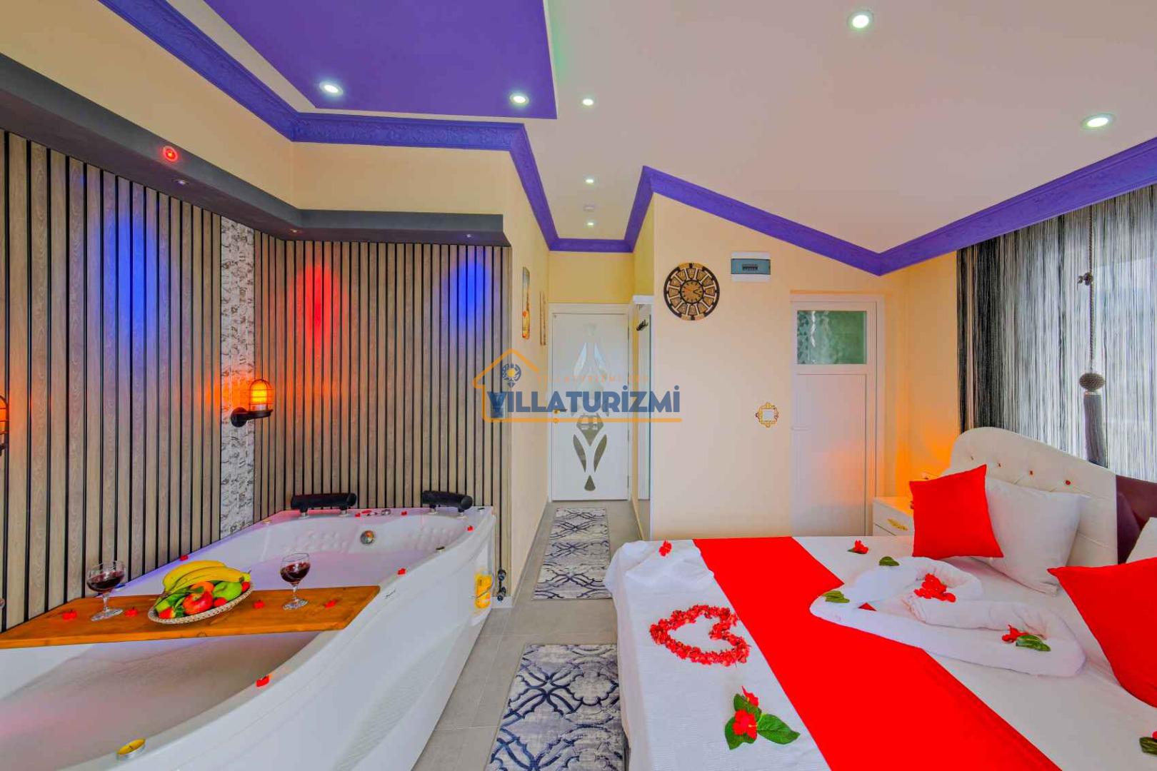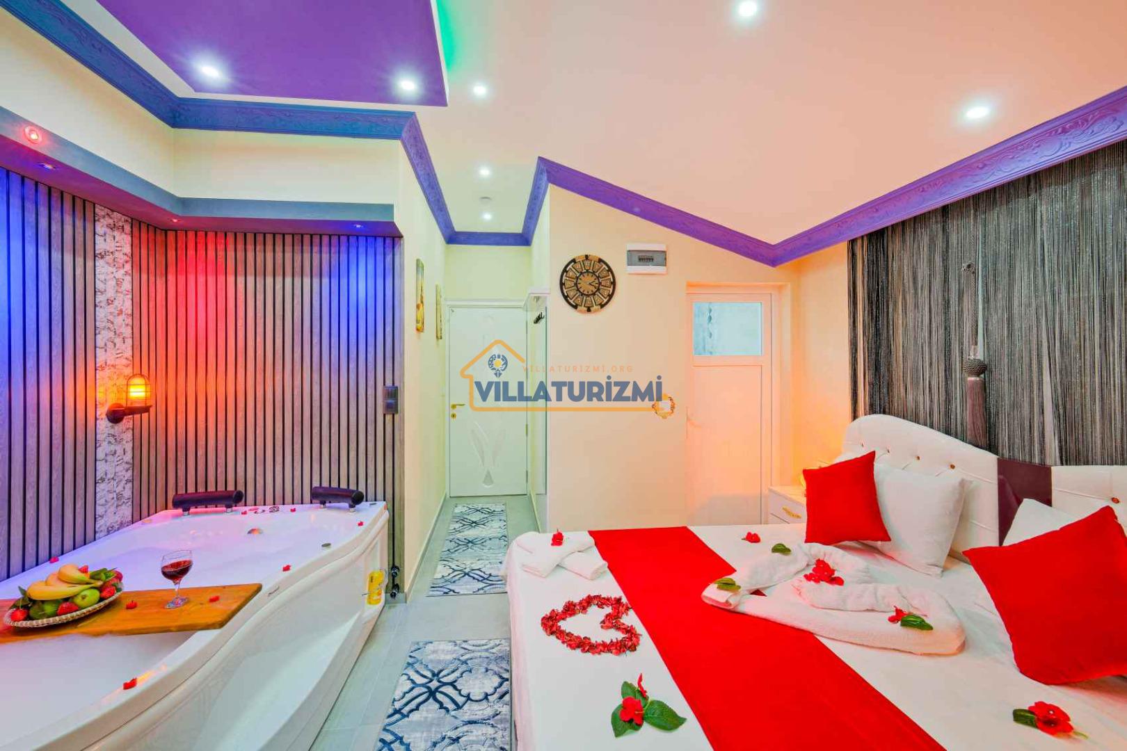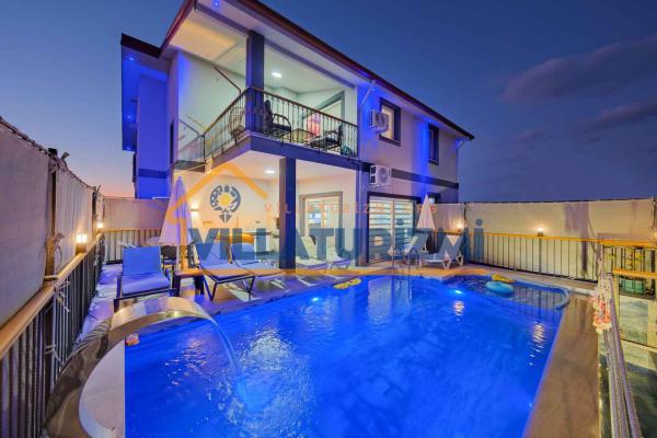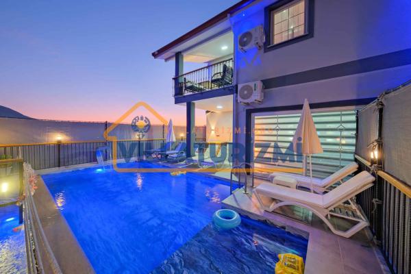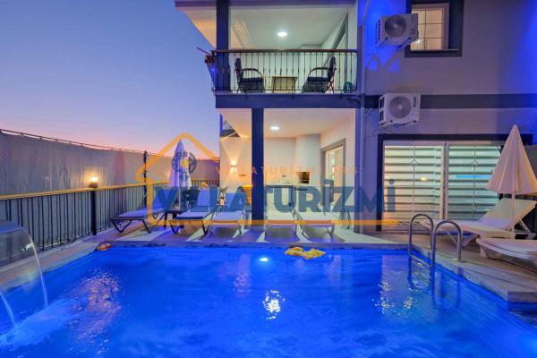 Villa Eymen; 3 yatak odası ve 2 banyo tuvaletiyle bir adet çocuk yatağıyla beraber 7 kişilik konaklama kapasitesiyle geniş aileler için ideal bir seçenek olarak öne çıkmaktadır. Villamızın havuz alanında bulunan jakuzisiyle yılın yorgunluğu atabilirsiniz.