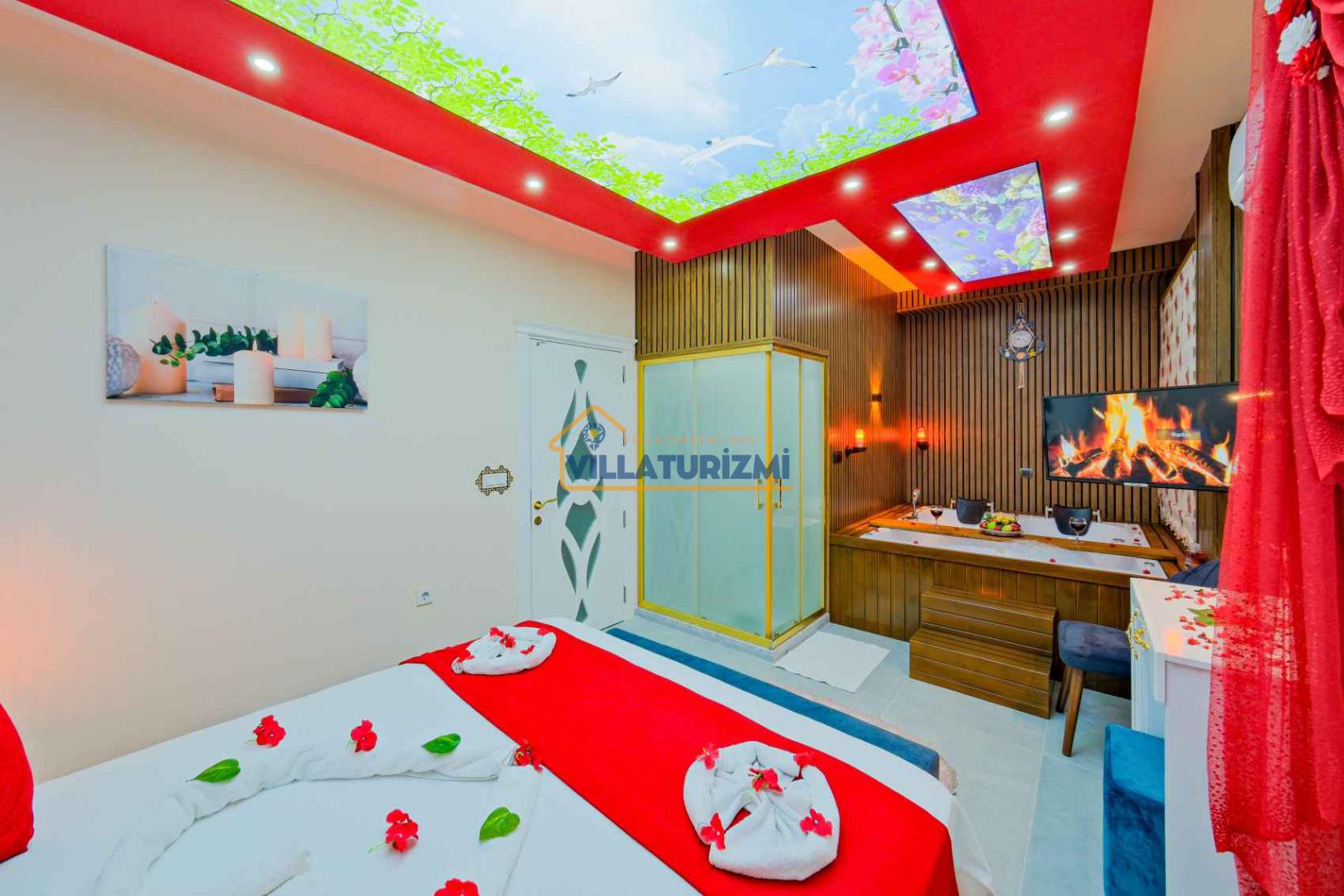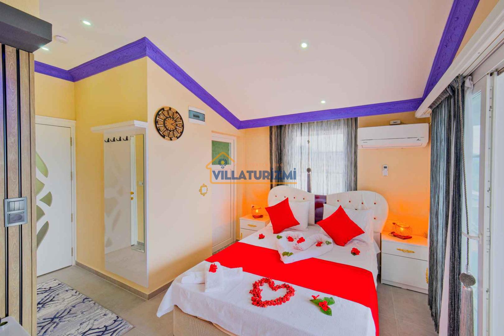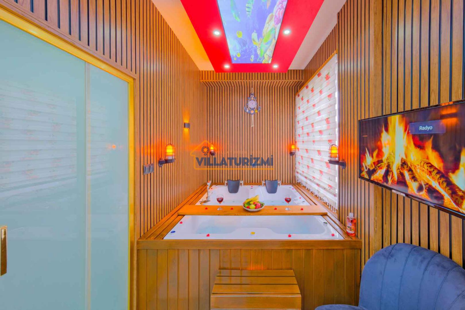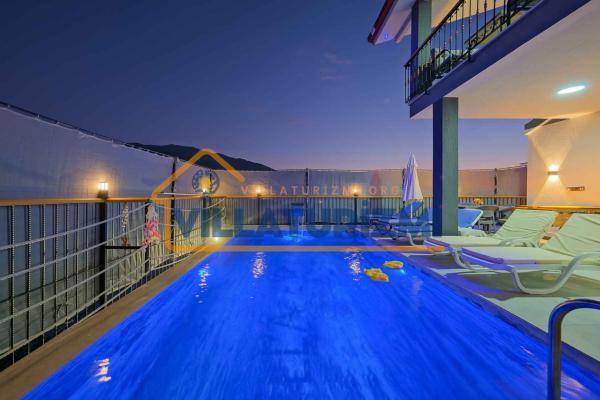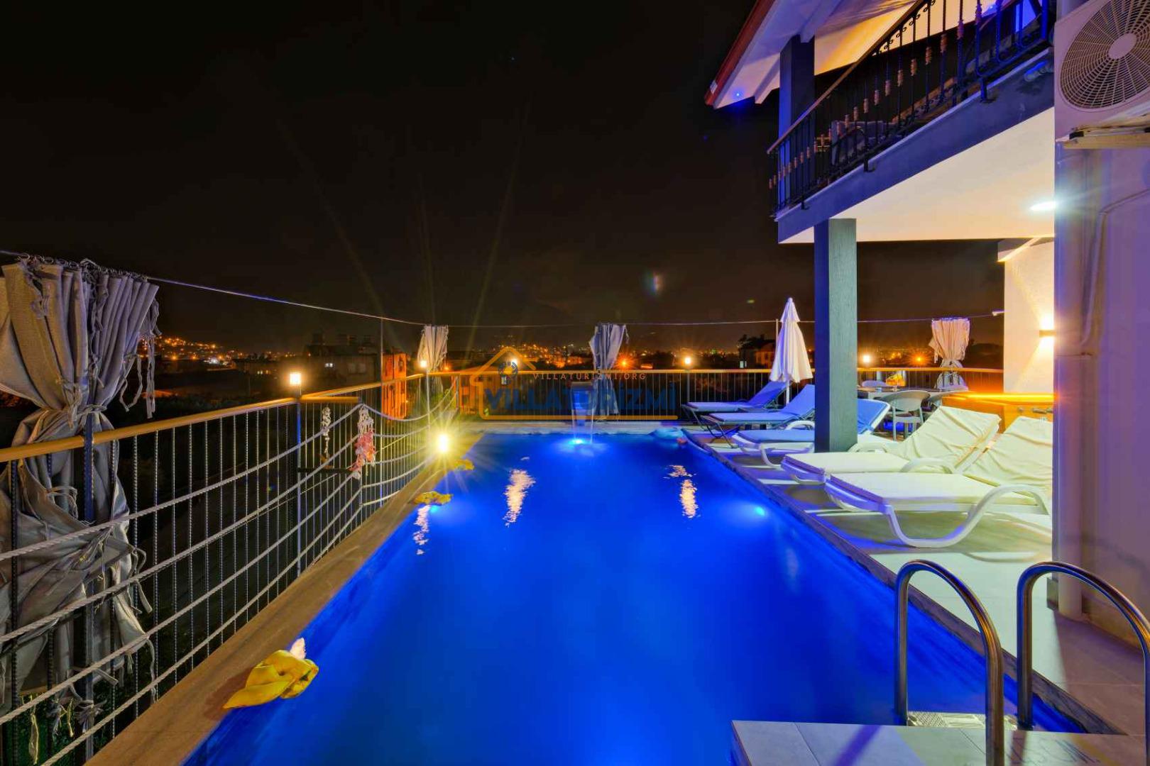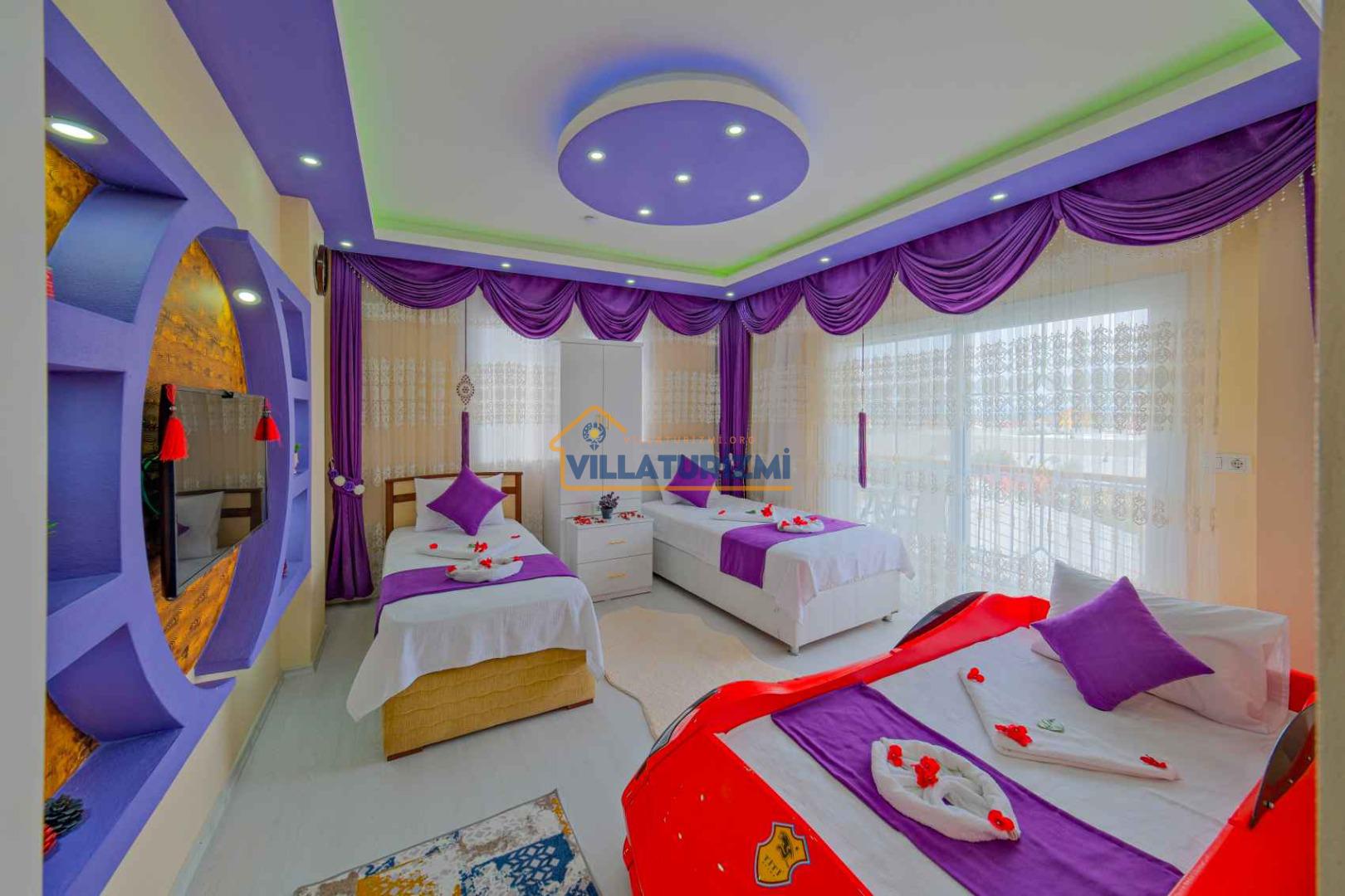 Villa Eymen; 3 yatak odası ve 2 banyo tuvaletiyle bir adet çocuk yatağıyla beraber 7 kişilik konaklama kapasitesiyle geniş aileler için ideal bir seçenek olarak öne çıkmaktadır. Villamızın havuz alanında bulunan jakuzisiyle yılın yorgunluğu atabilirsiniz.