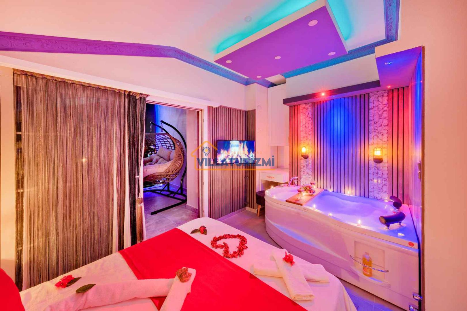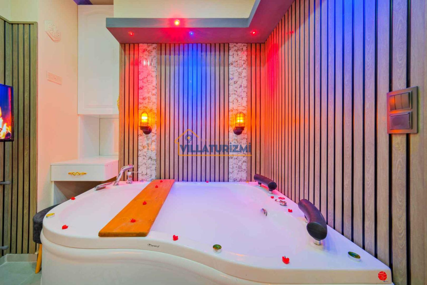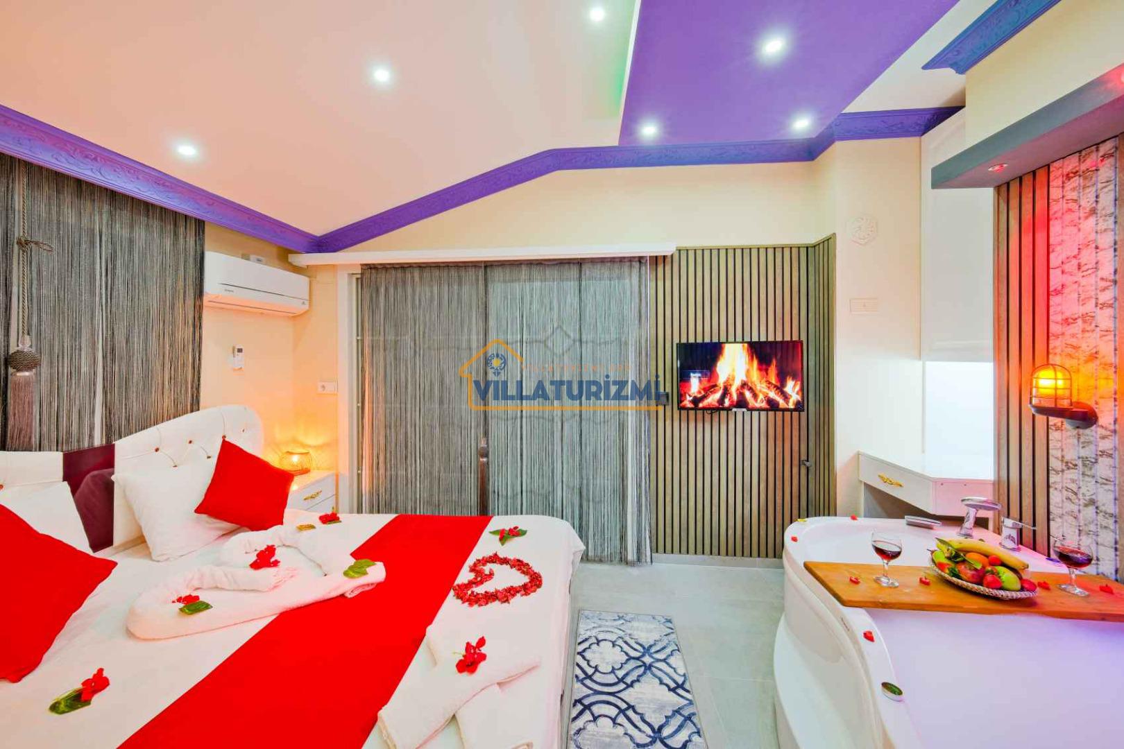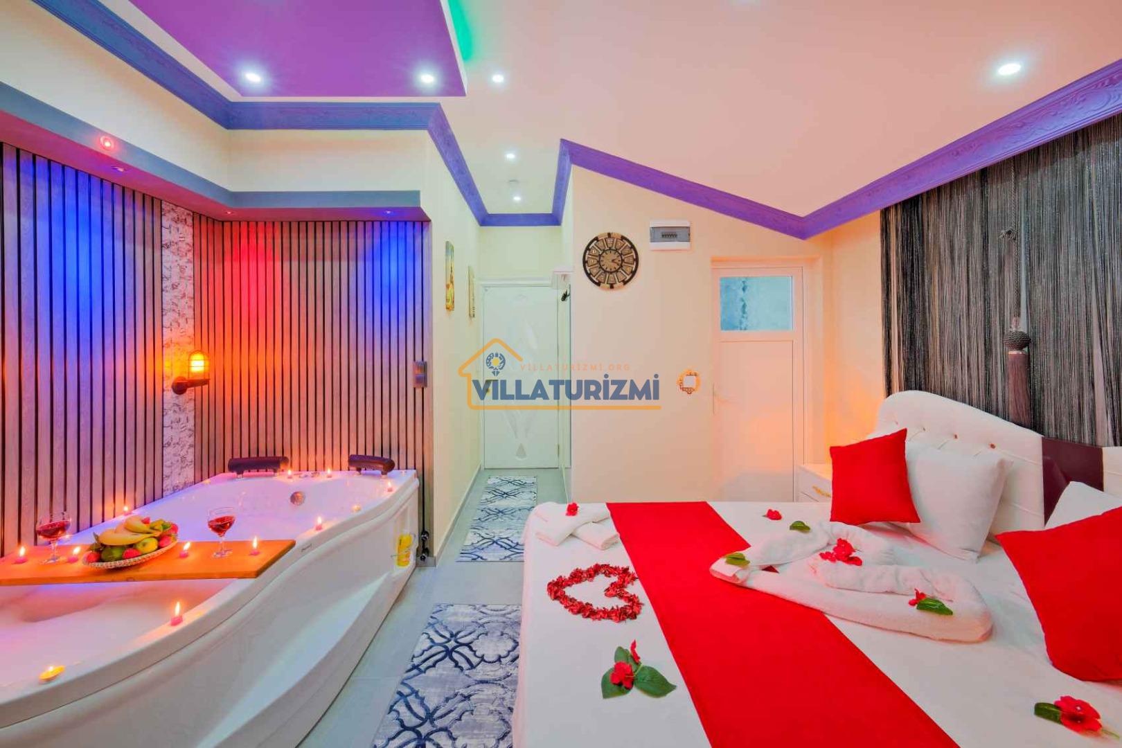 Villa Eymen; 3 yatak odası ve 2 banyo tuvaletiyle bir adet çocuk yatağıyla beraber 7 kişilik konaklama kapasitesiyle geniş aileler için ideal bir seçenek olarak öne çıkmaktadır. Villamızın havuz alanında bulunan jakuzisiyle yılın yorgunluğu atabilirsiniz.