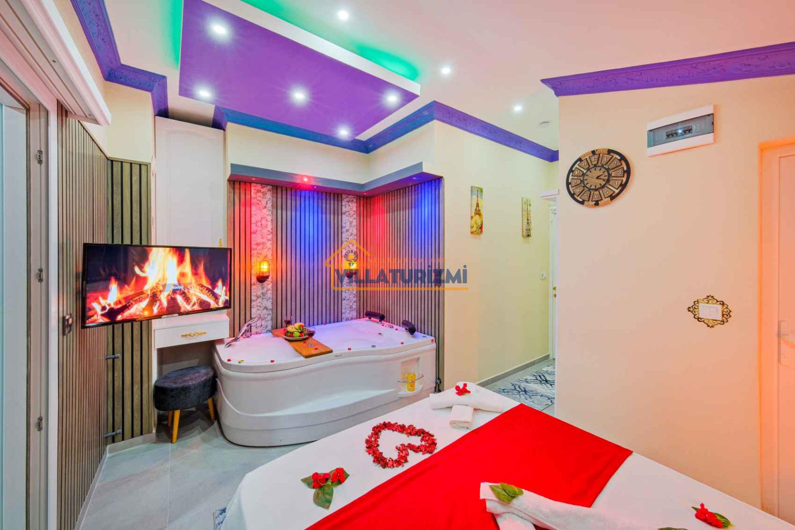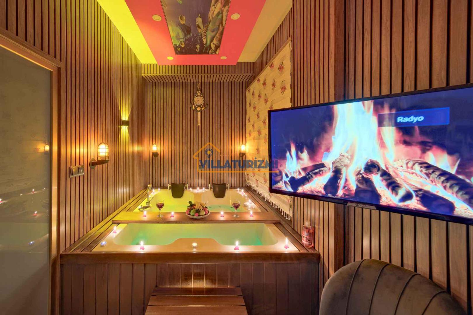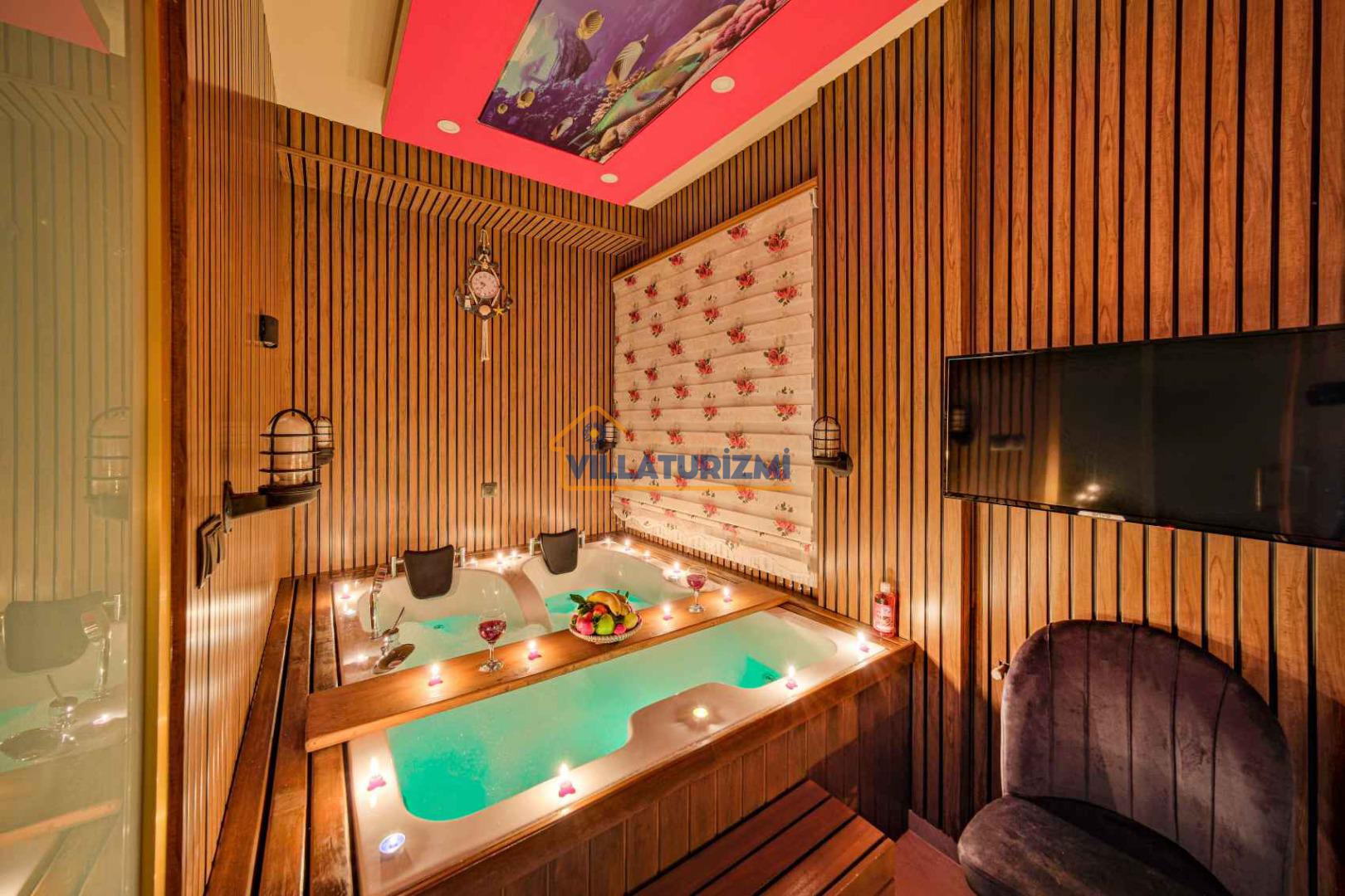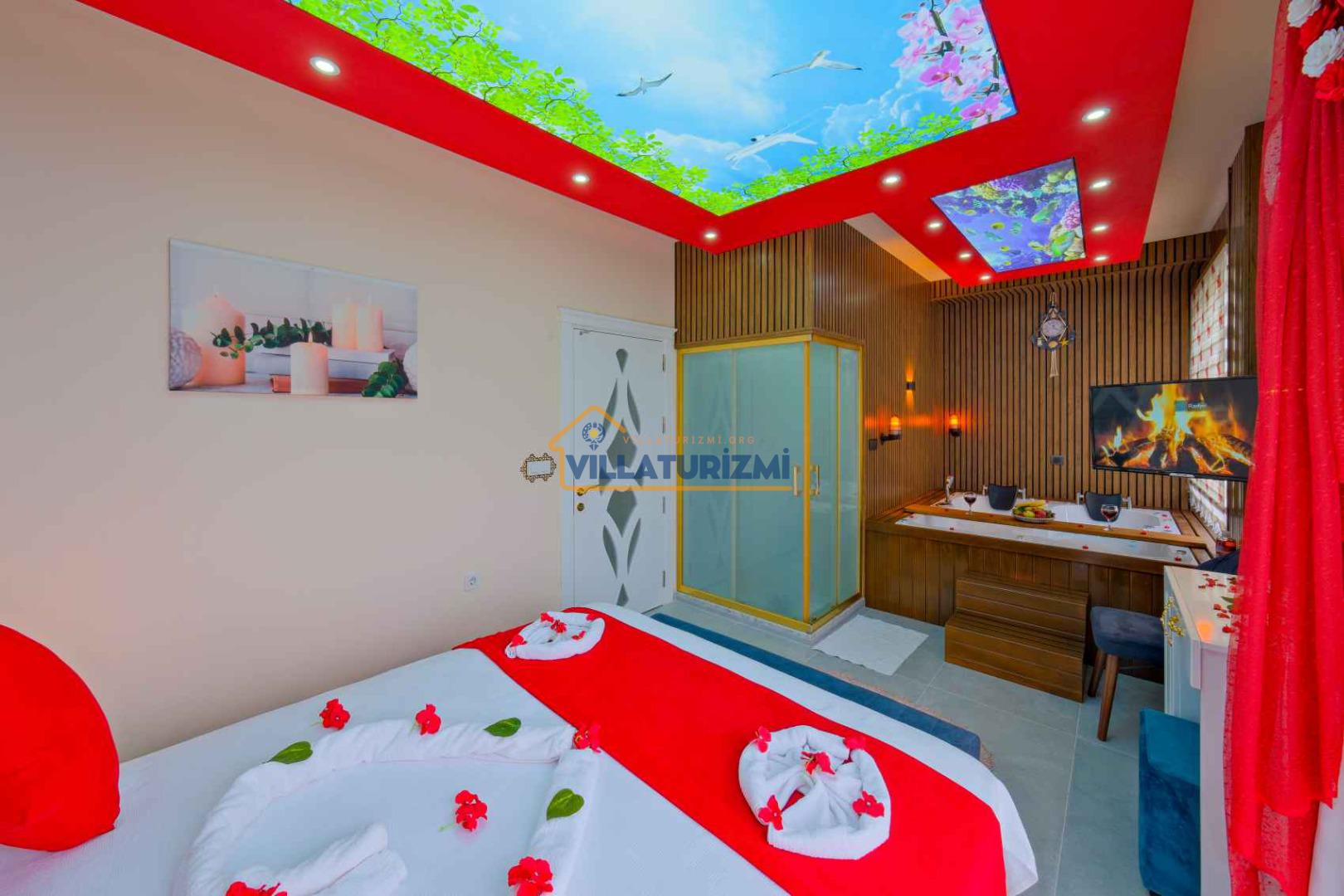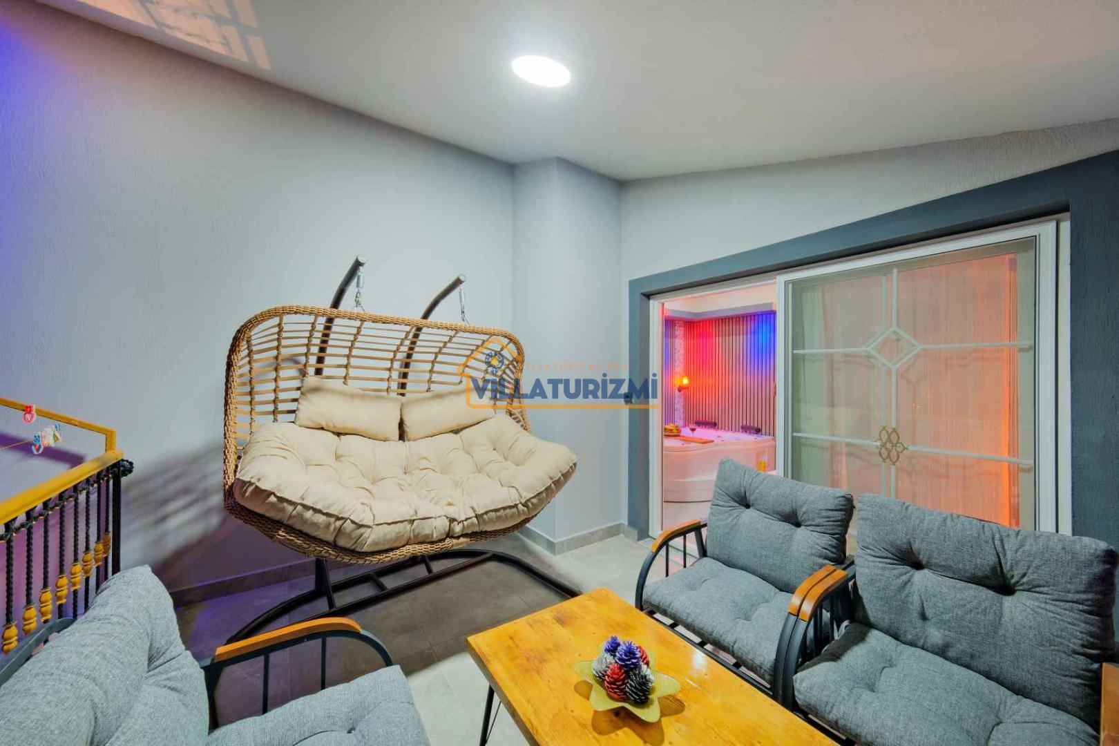 Villa Eymen; 3 yatak odası ve 2 banyo tuvaletiyle bir adet çocuk yatağıyla beraber 7 kişilik konaklama kapasitesiyle geniş aileler için ideal bir seçenek olarak öne çıkmaktadır. Villamızın havuz alanında bulunan jakuzisiyle yılın yorgunluğu atabilirsiniz.