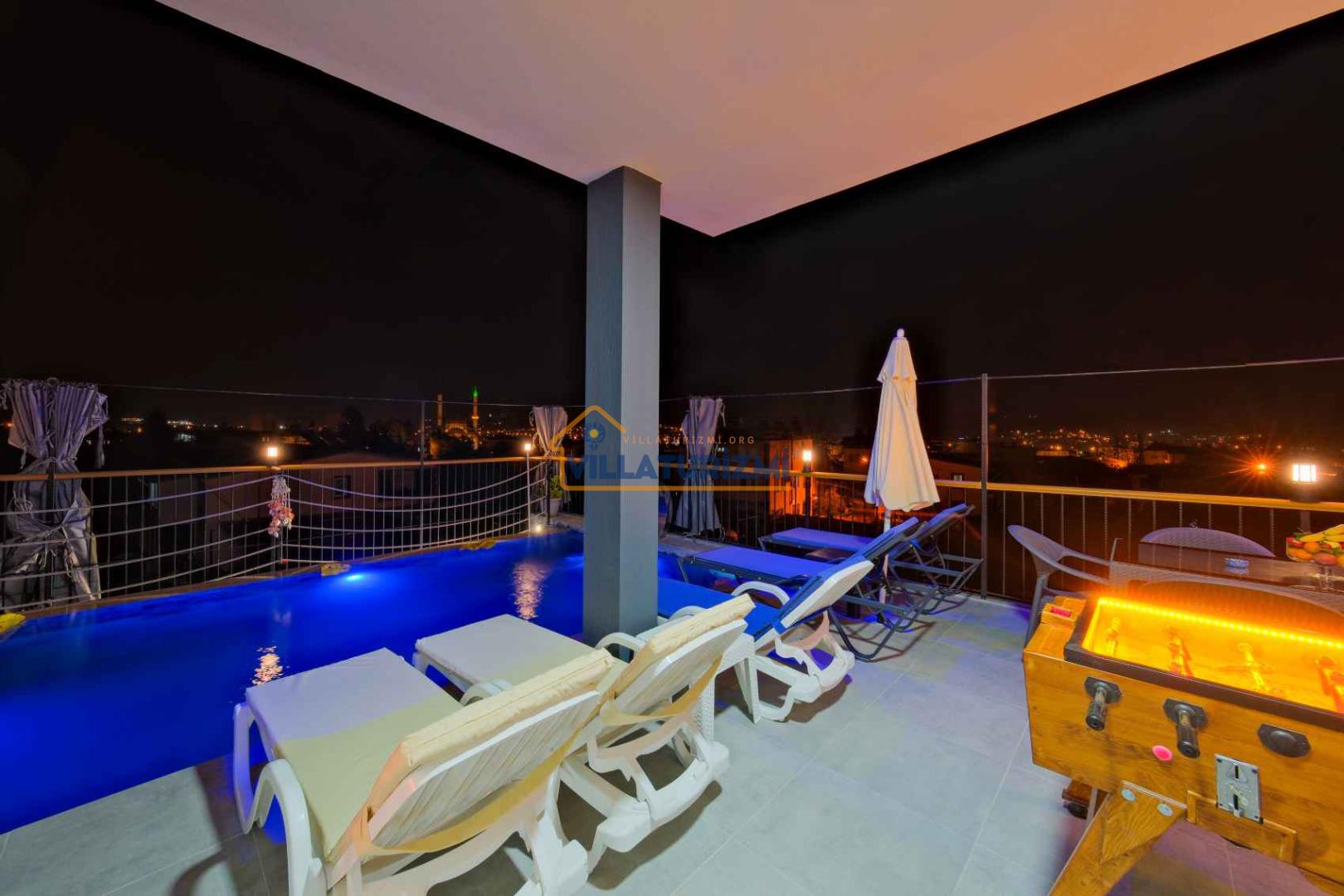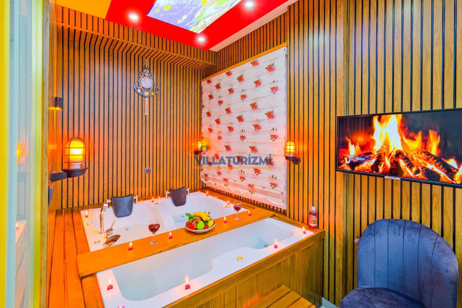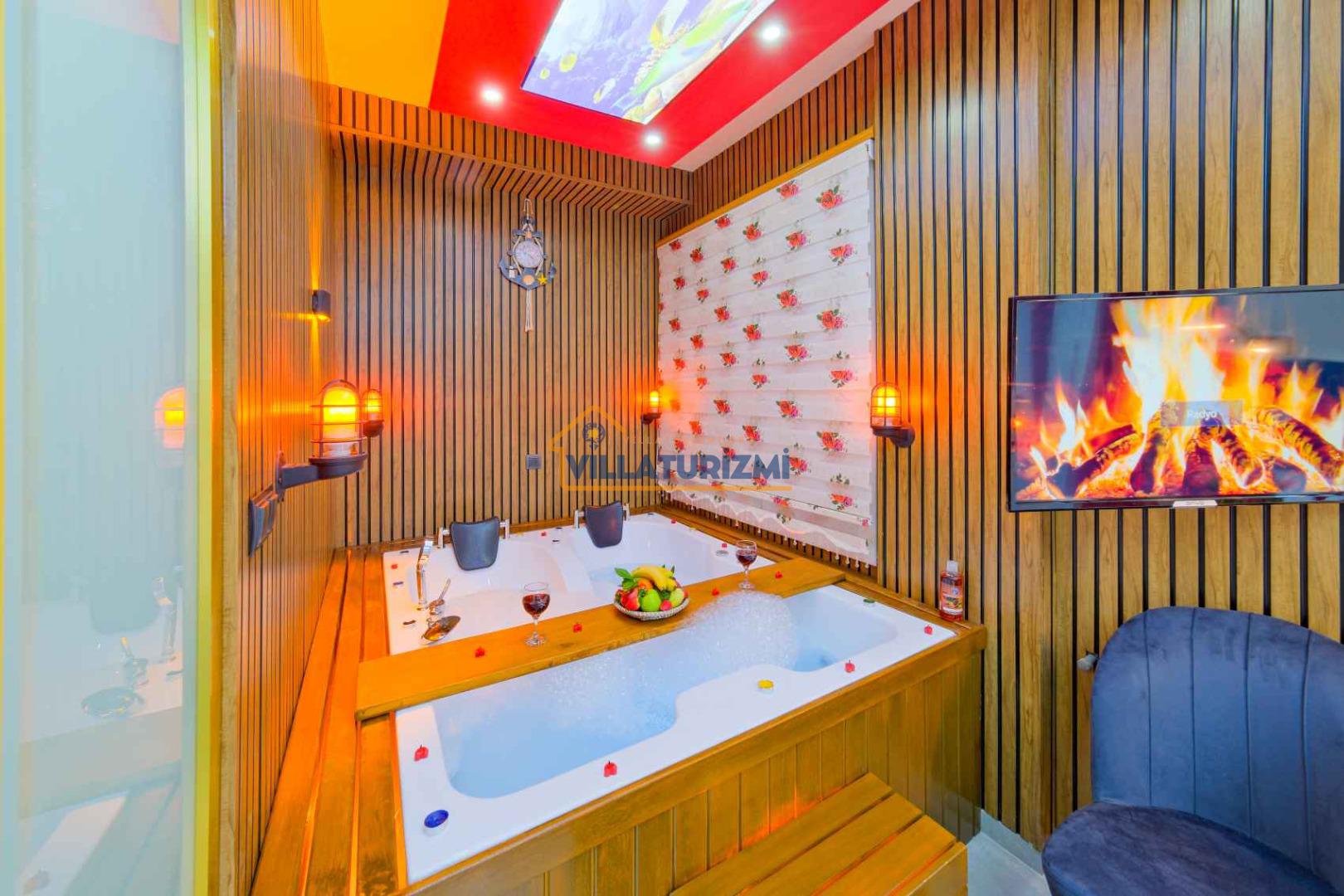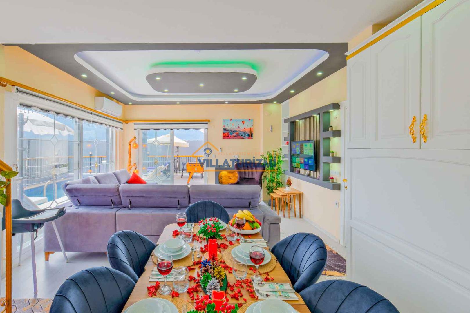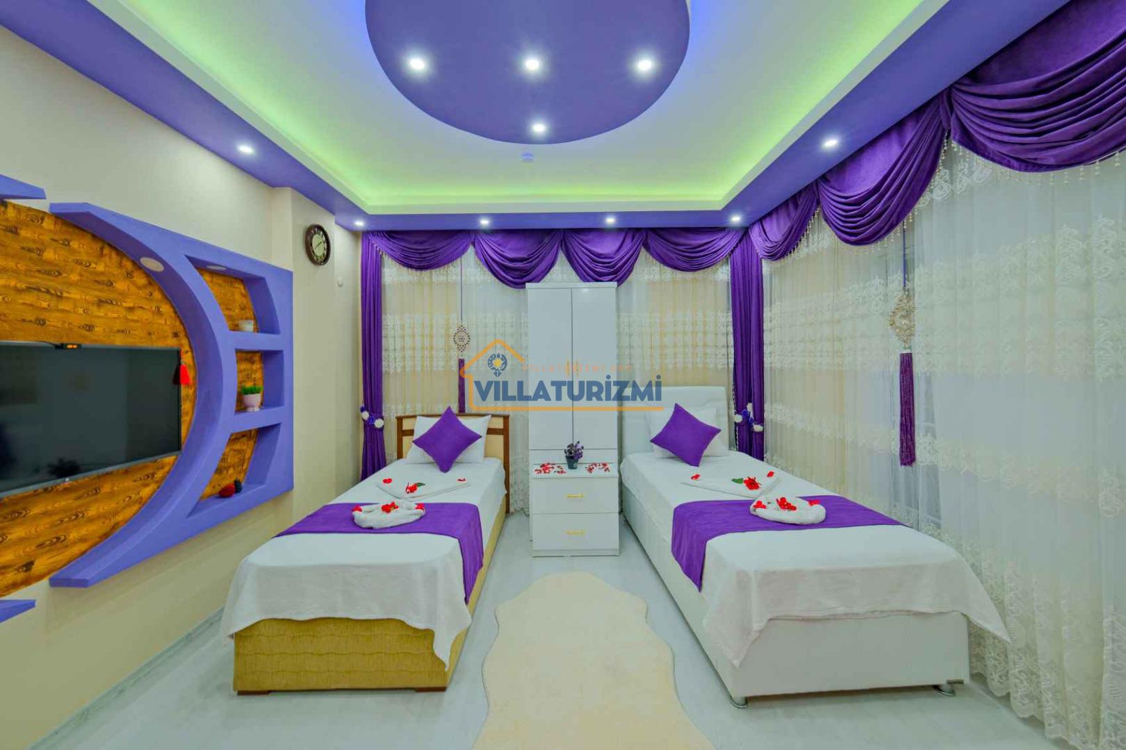 Villa Eymen; 3 yatak odası ve 2 banyo tuvaletiyle bir adet çocuk yatağıyla beraber 7 kişilik konaklama kapasitesiyle geniş aileler için ideal bir seçenek olarak öne çıkmaktadır. Villamızın havuz alanında bulunan jakuzisiyle yılın yorgunluğu atabilirsiniz.