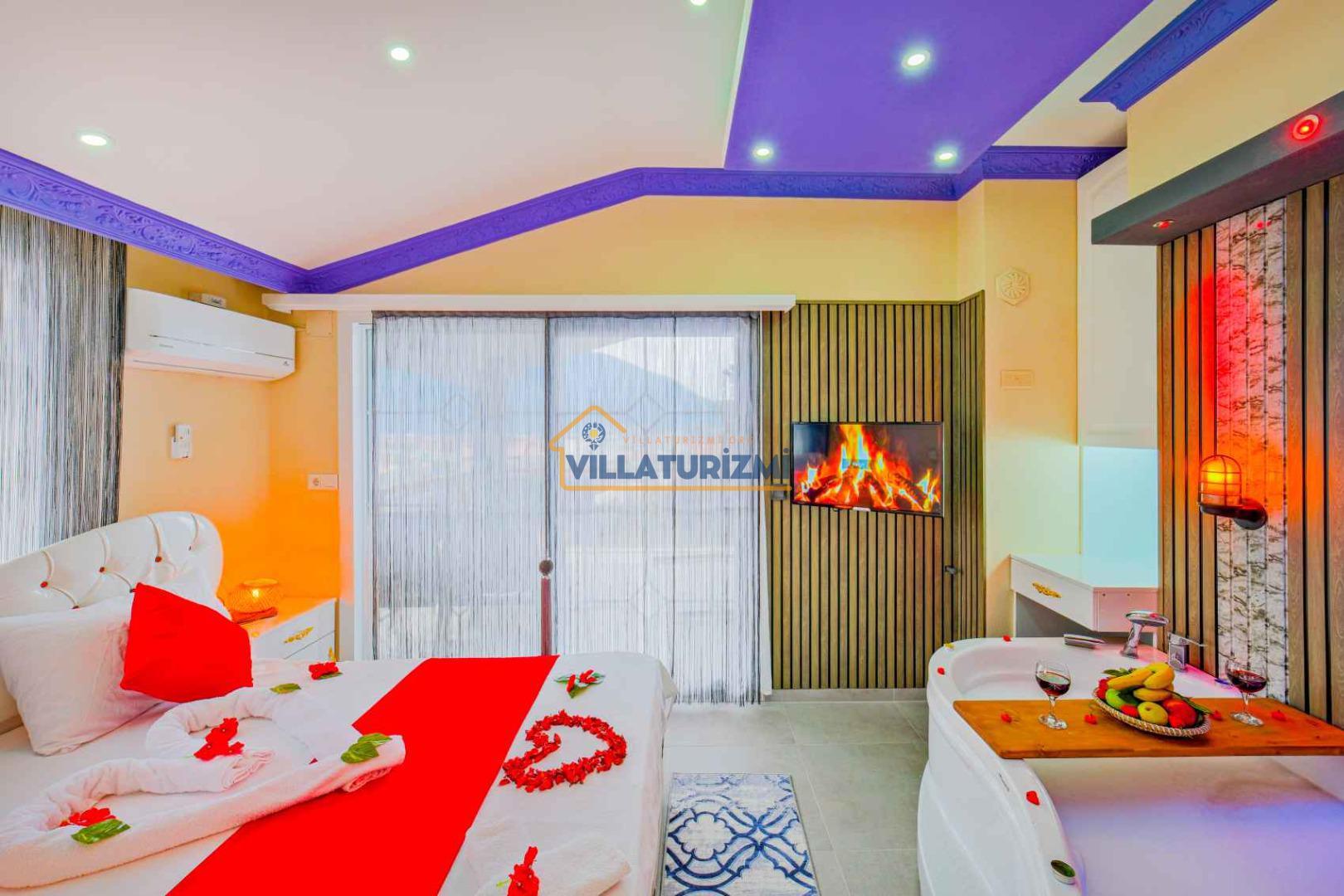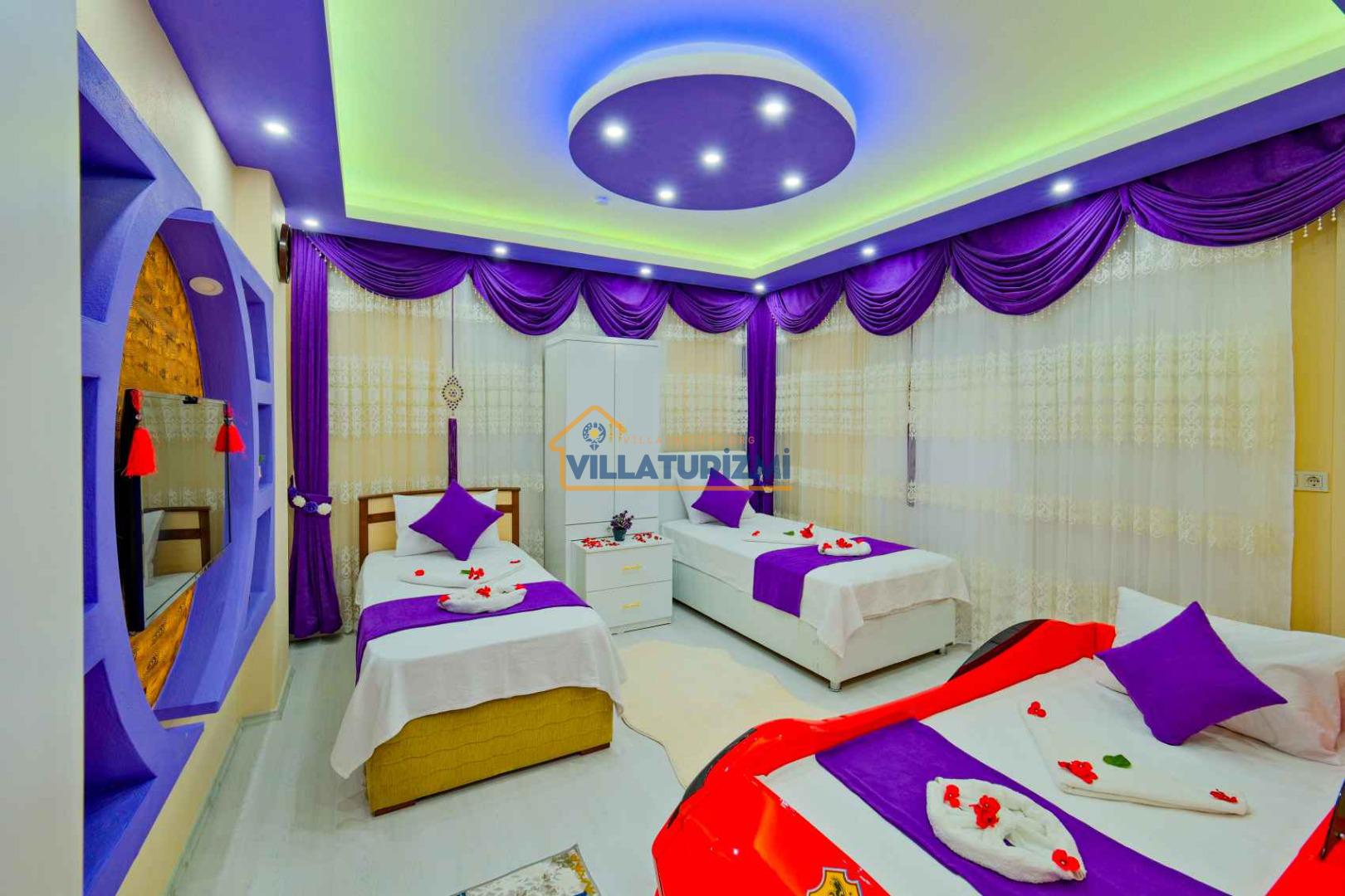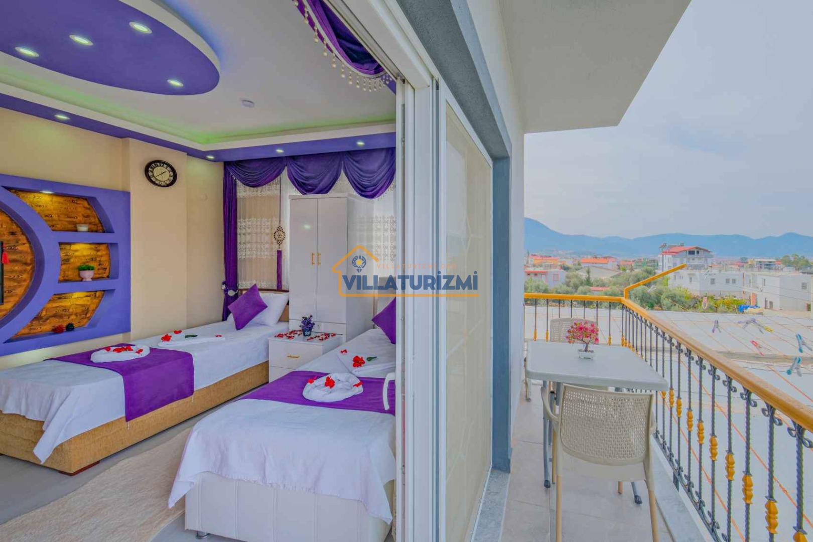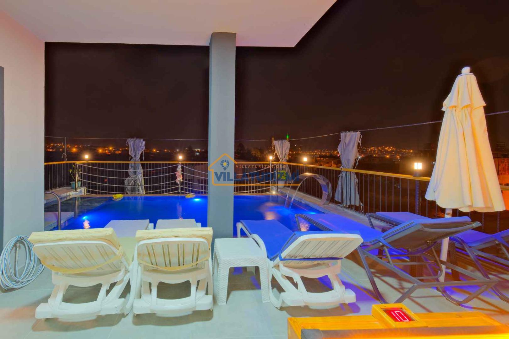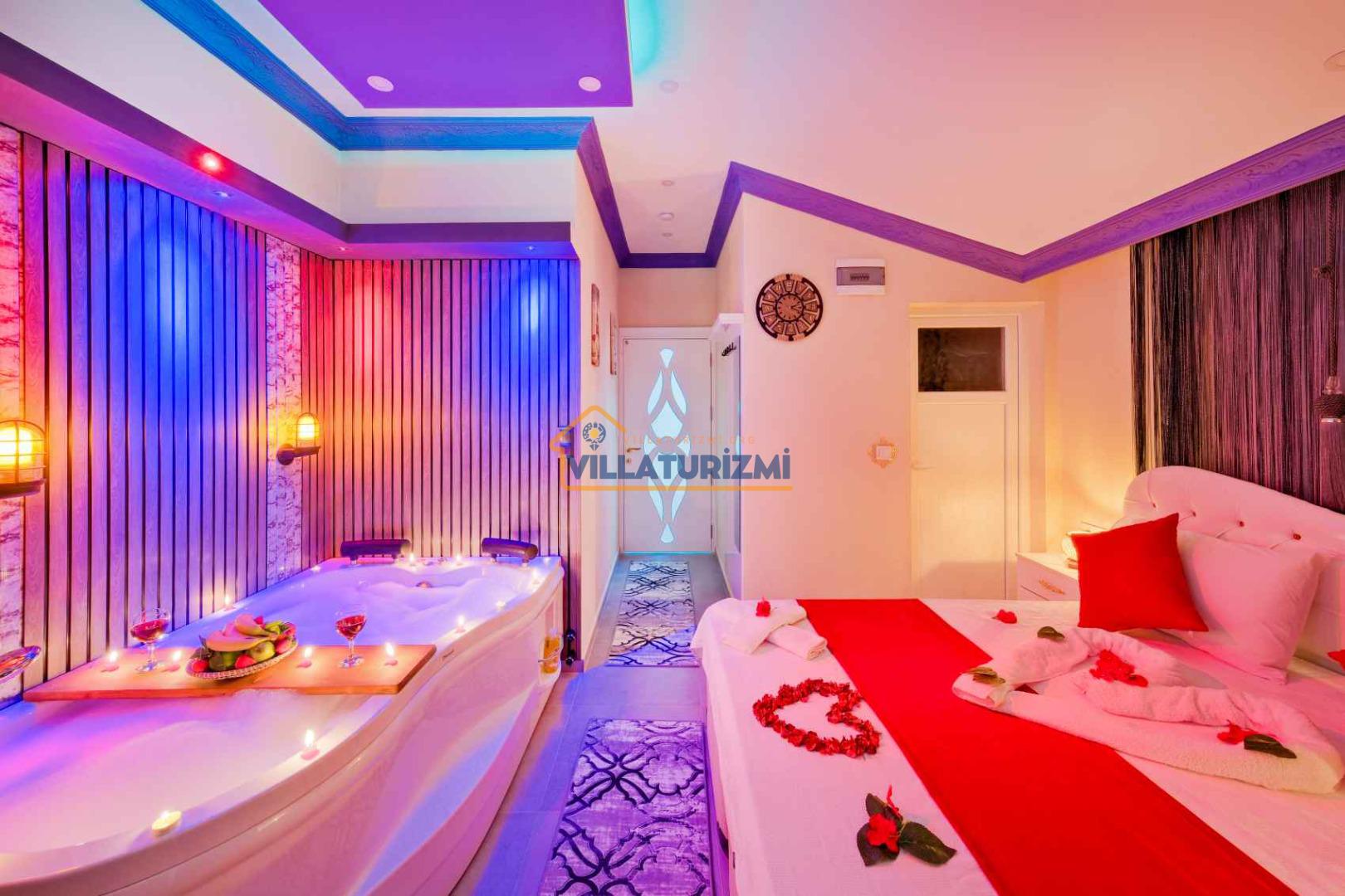 Villa Eymen; 3 yatak odası ve 2 banyo tuvaletiyle bir adet çocuk yatağıyla beraber 7 kişilik konaklama kapasitesiyle geniş aileler için ideal bir seçenek olarak öne çıkmaktadır. Villamızın havuz alanında bulunan jakuzisiyle yılın yorgunluğu atabilirsiniz.