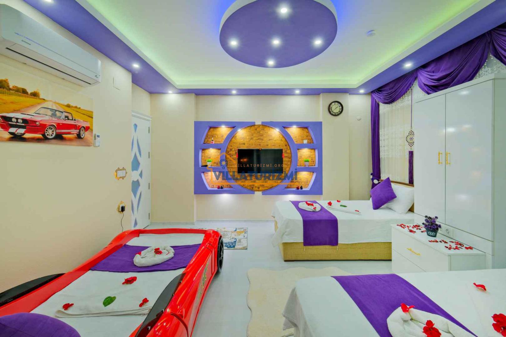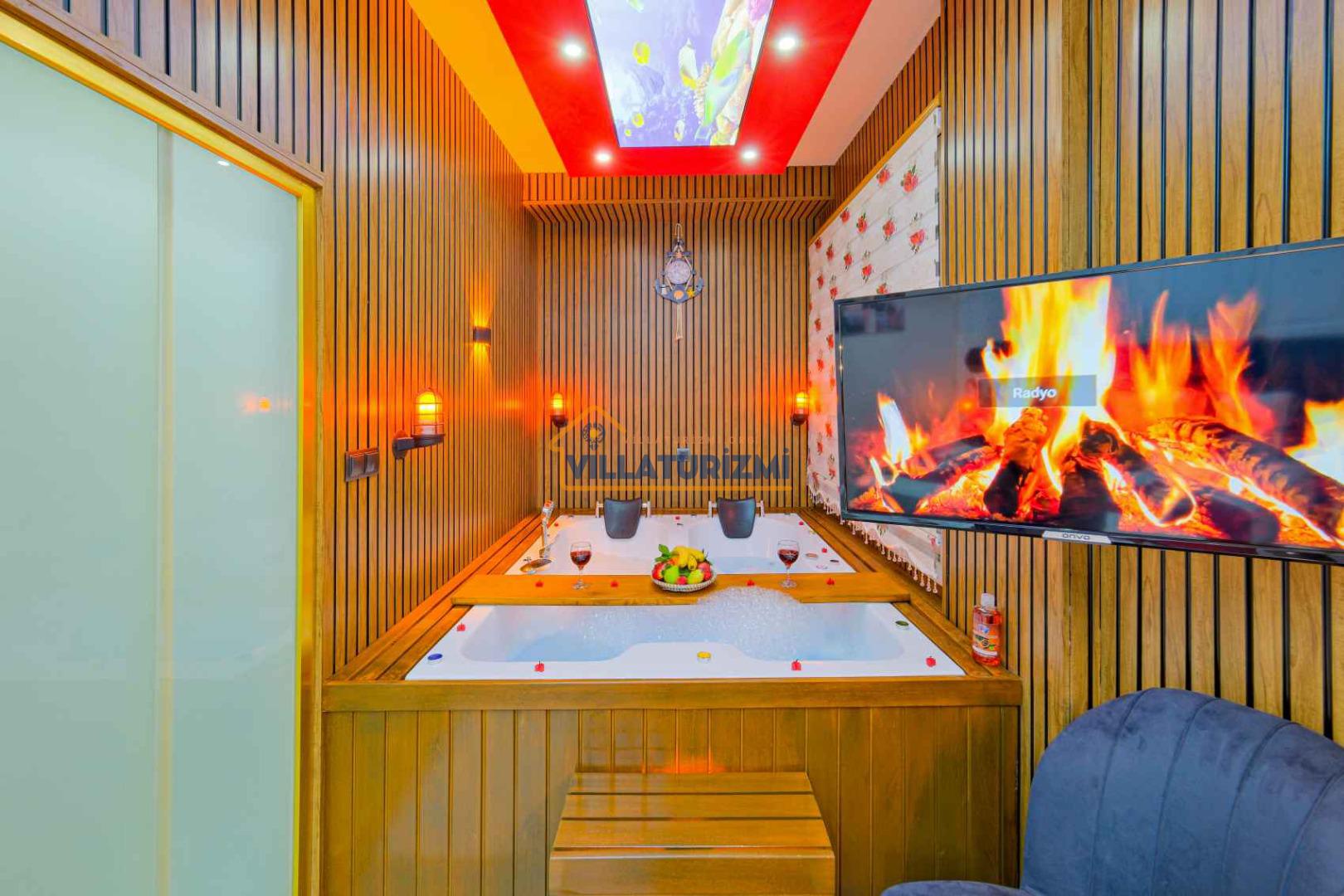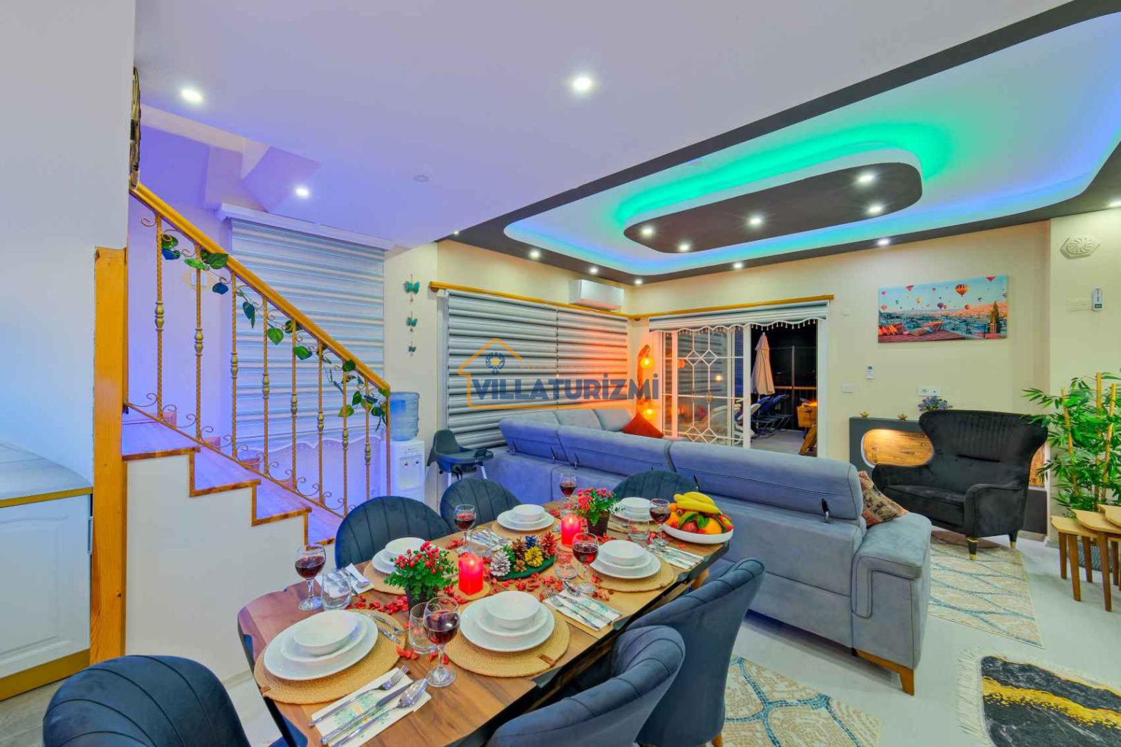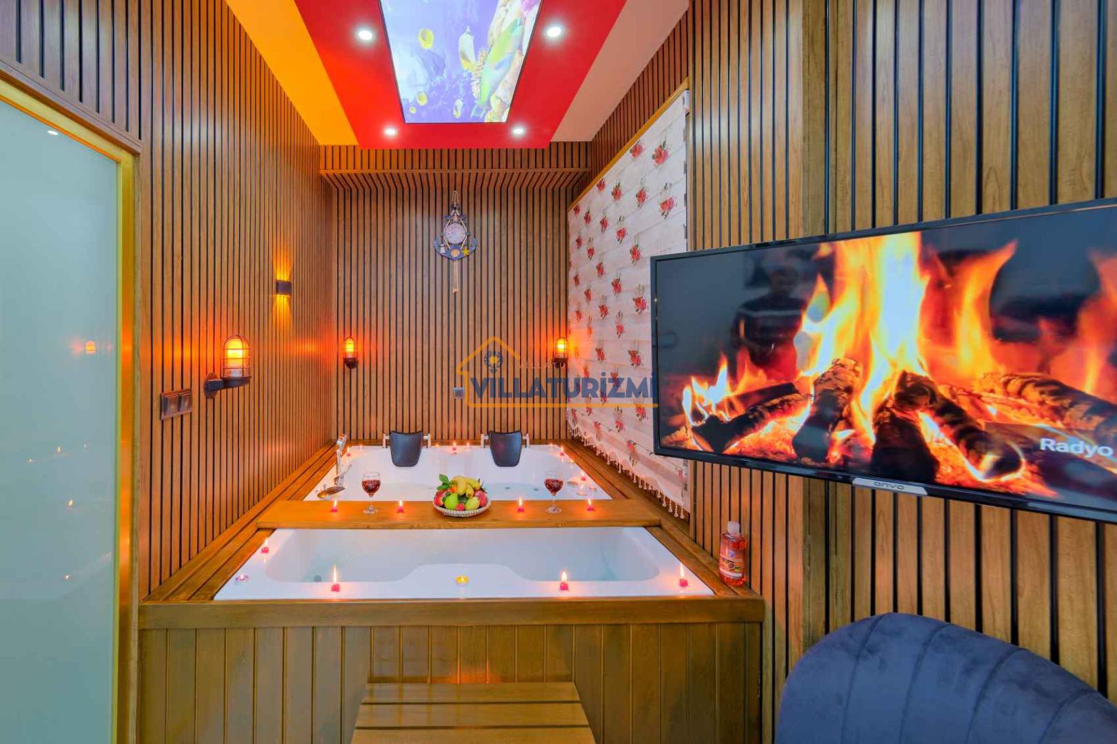 Villa Eymen; 3 yatak odası ve 2 banyo tuvaletiyle bir adet çocuk yatağıyla beraber 7 kişilik konaklama kapasitesiyle geniş aileler için ideal bir seçenek olarak öne çıkmaktadır. Villamızın havuz alanında bulunan jakuzisiyle yılın yorgunluğu atabilirsiniz.