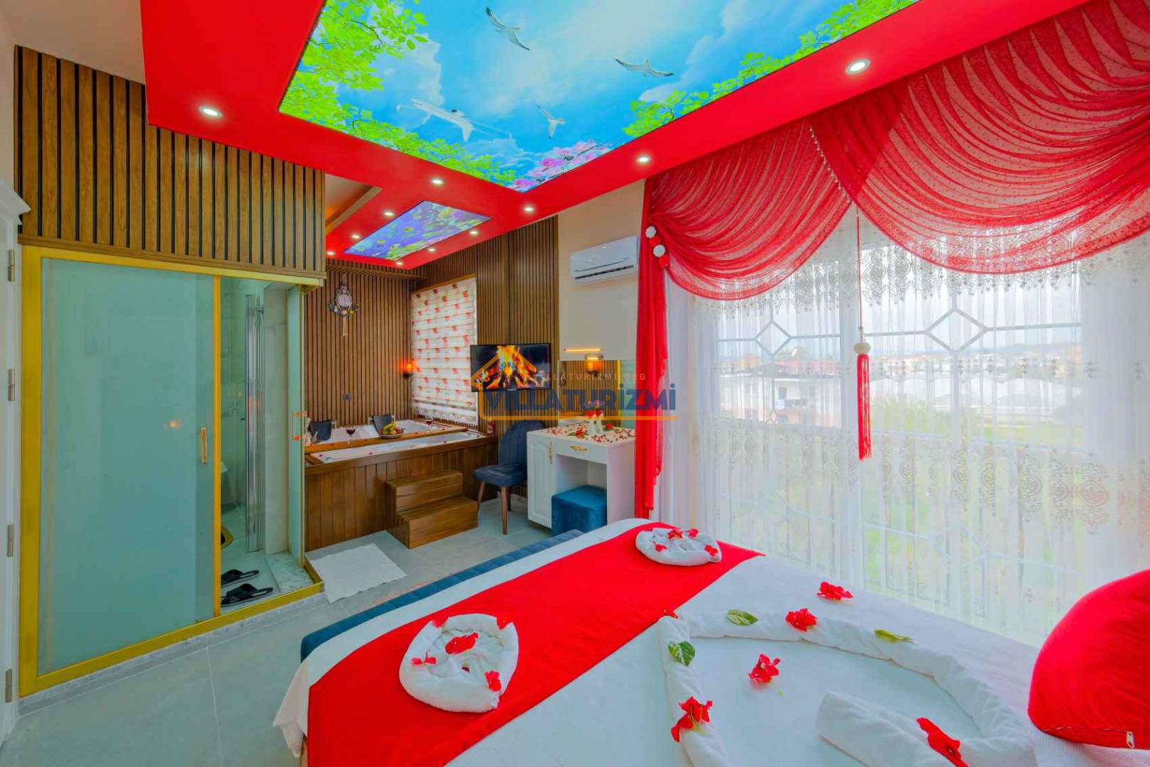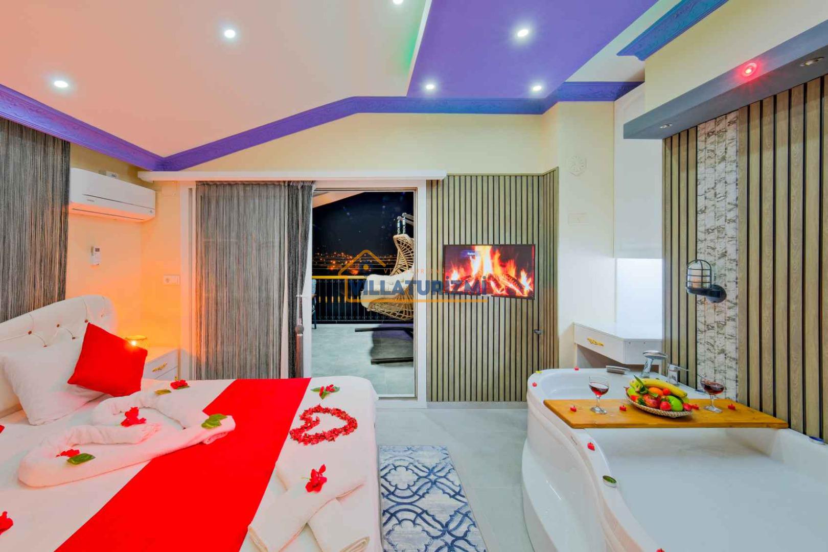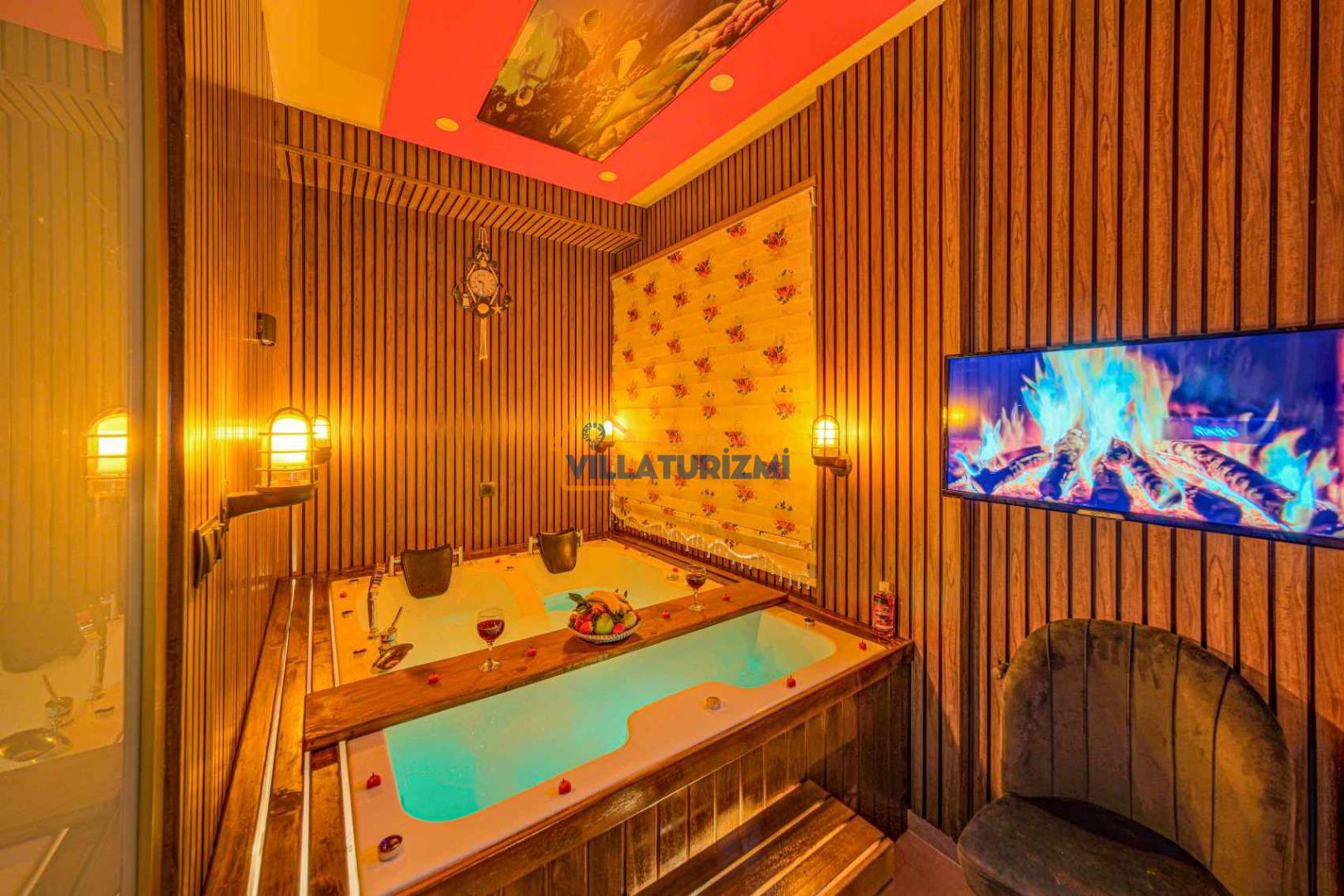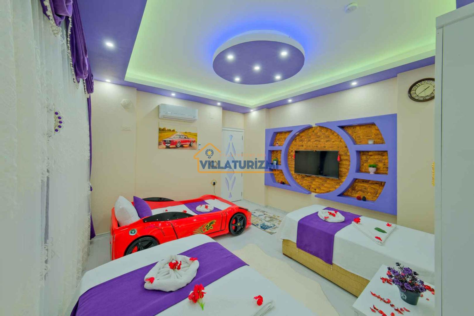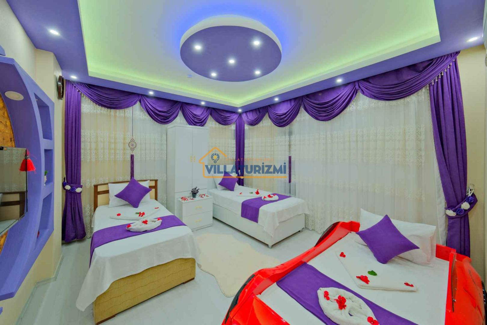 Villa Eymen; 3 yatak odası ve 2 banyo tuvaletiyle bir adet çocuk yatağıyla beraber 7 kişilik konaklama kapasitesiyle geniş aileler için ideal bir seçenek olarak öne çıkmaktadır. Villamızın havuz alanında bulunan jakuzisiyle yılın yorgunluğu atabilirsiniz.