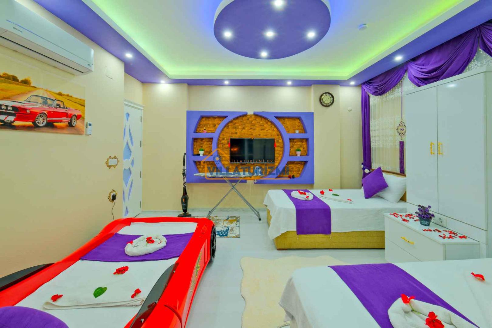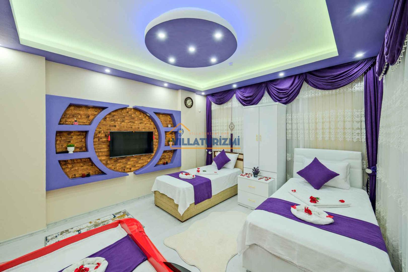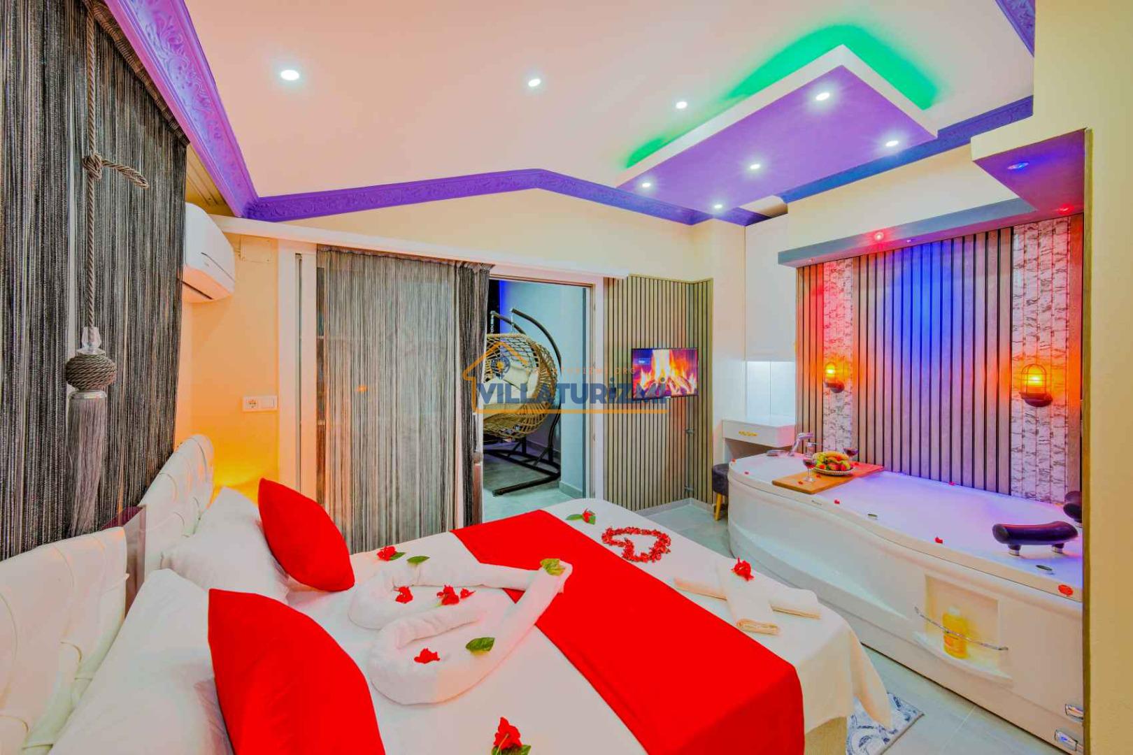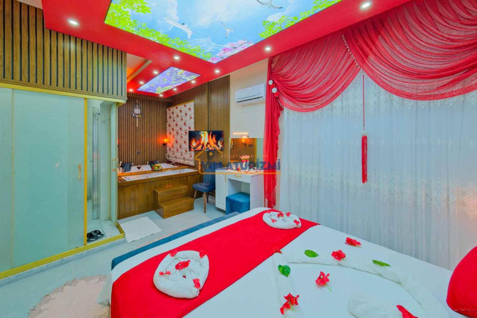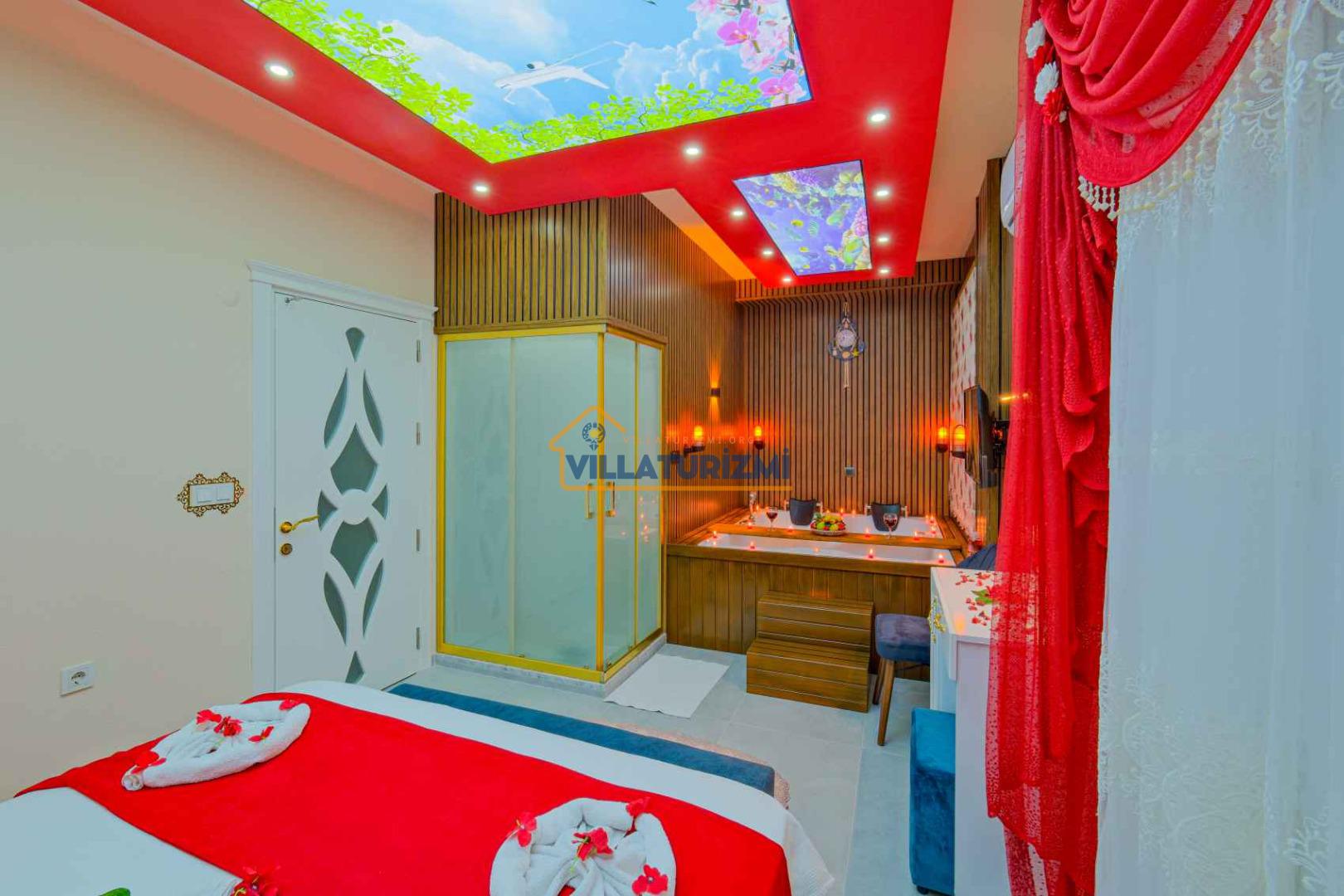 Villa Eymen; 3 yatak odası ve 2 banyo tuvaletiyle bir adet çocuk yatağıyla beraber 7 kişilik konaklama kapasitesiyle geniş aileler için ideal bir seçenek olarak öne çıkmaktadır. Villamızın havuz alanında bulunan jakuzisiyle yılın yorgunluğu atabilirsiniz.