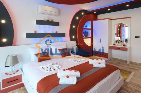 1.Yatak Odası: Suit Oda, 1 Adet Çift Kişilik Yatak, Jakuzi, Komodin, Klima, Makyaj Masası, Elbise Dolabı, Banyo, Tuvalet Bulunmaktadır.