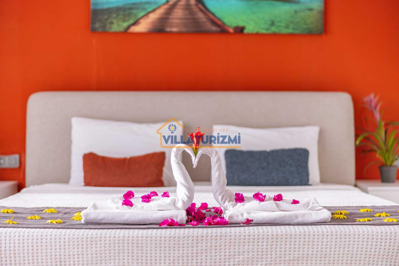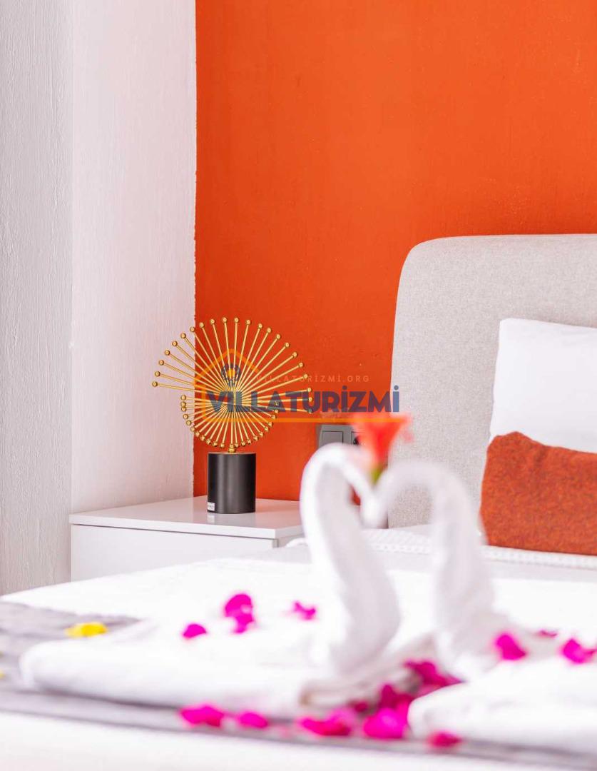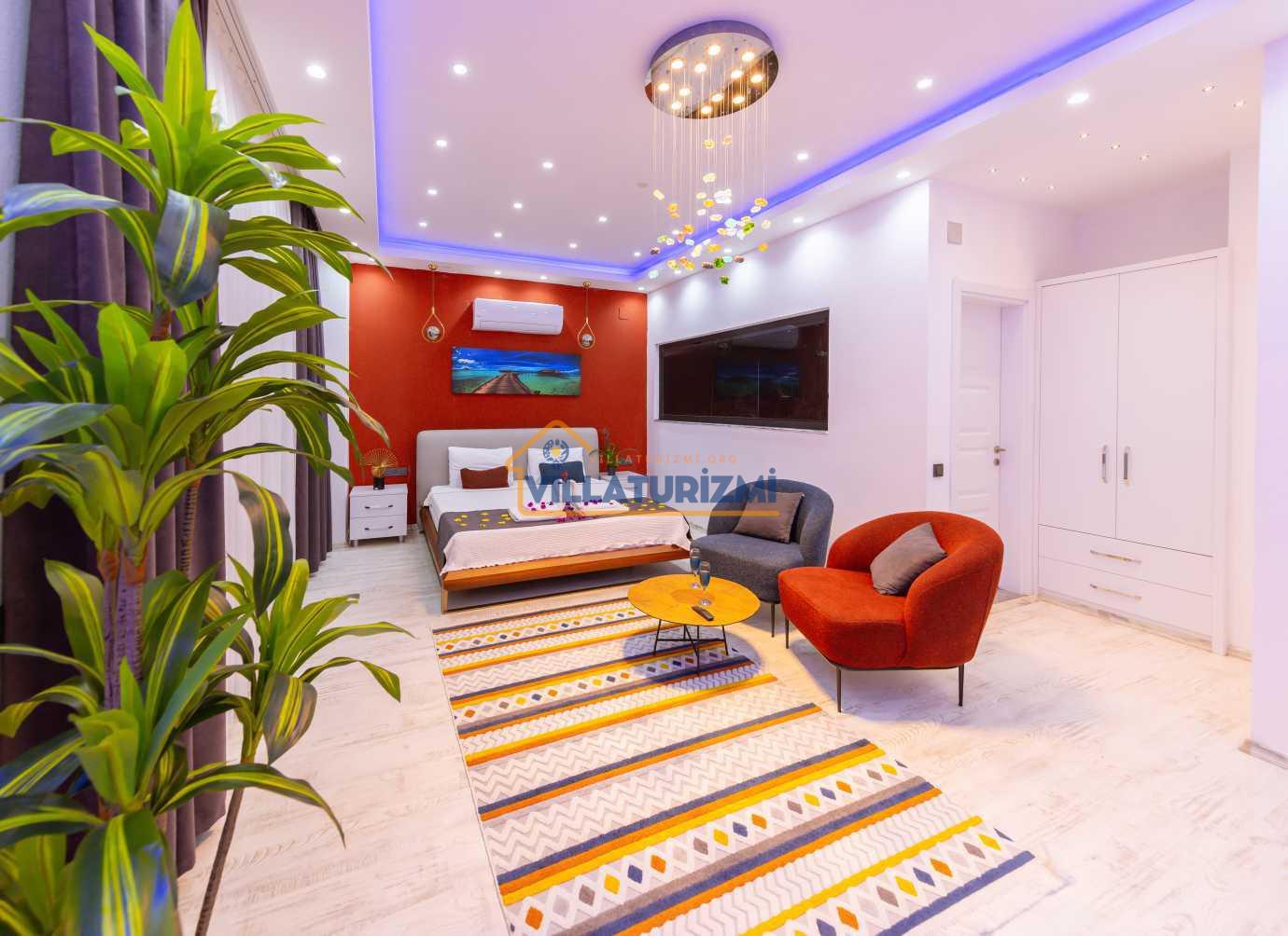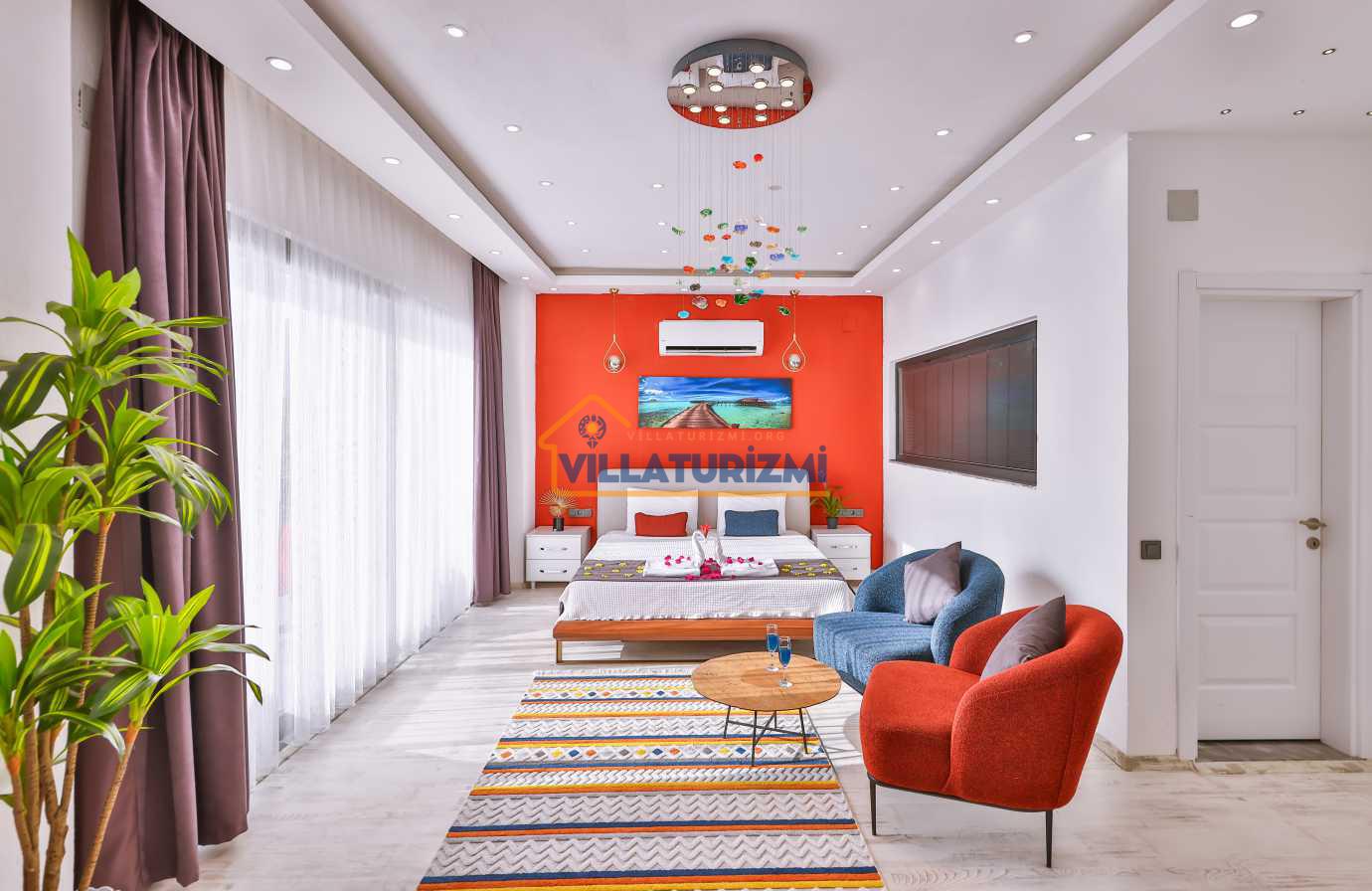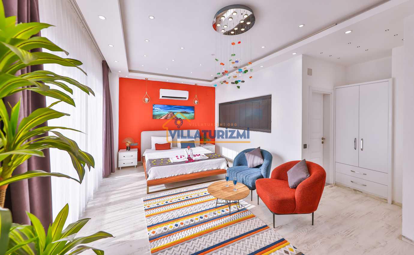 1.Yatak odası: 1 adet çift kişilik yatak, klima, elbise dolabı, komodin, jakuzi, makyaj masası, banyo ve tuvalet yer almaktadır.