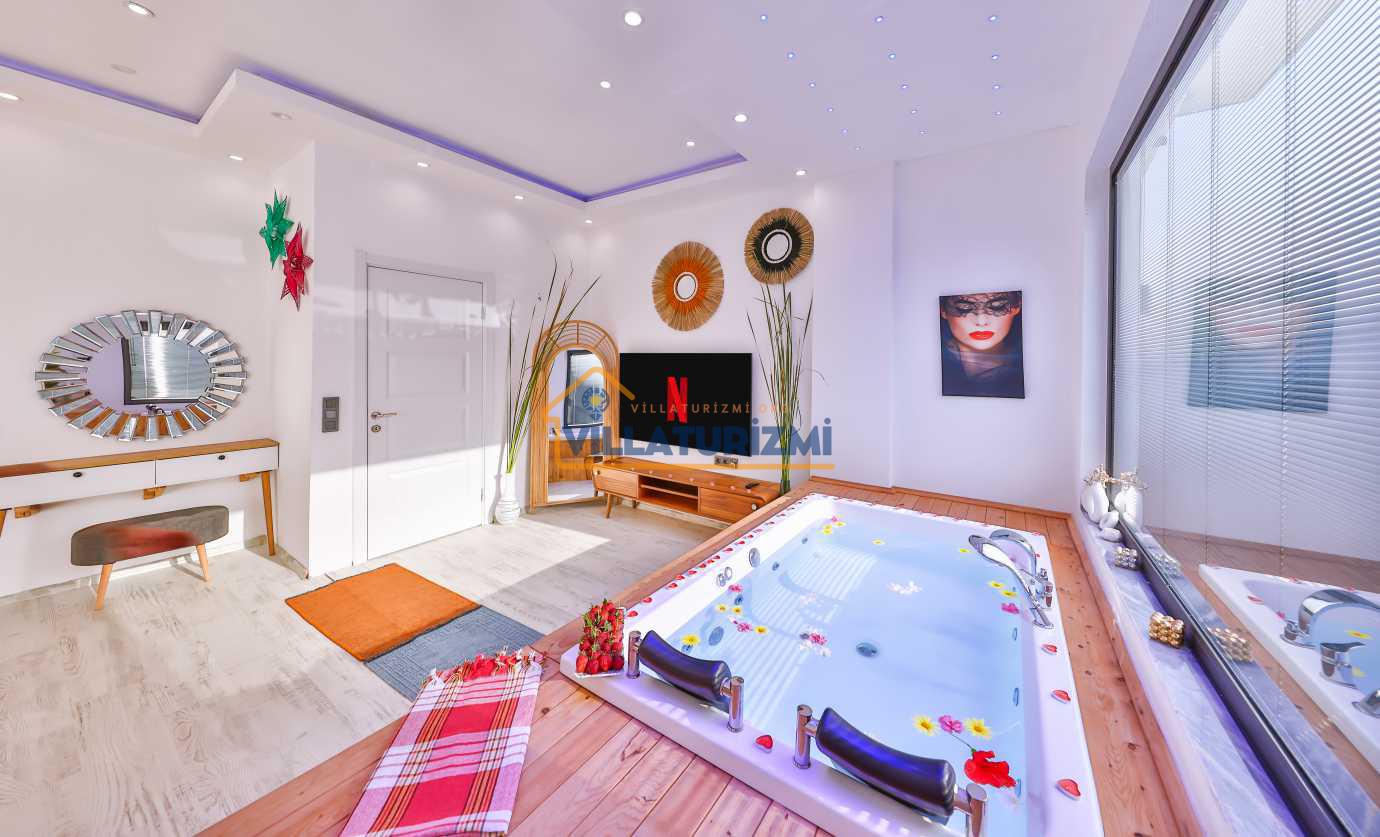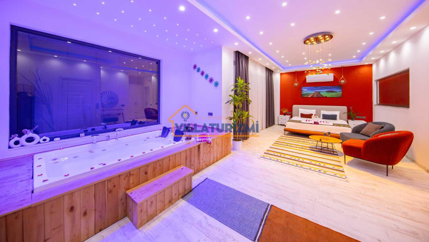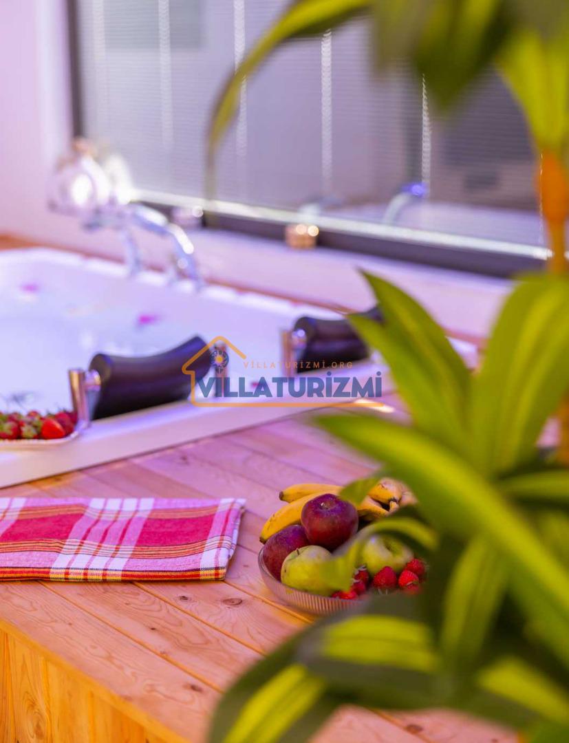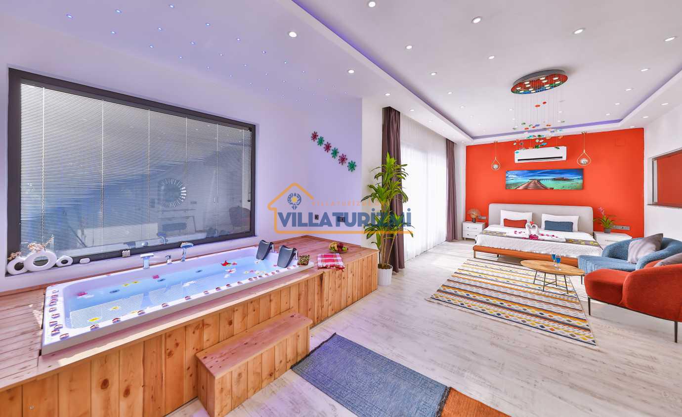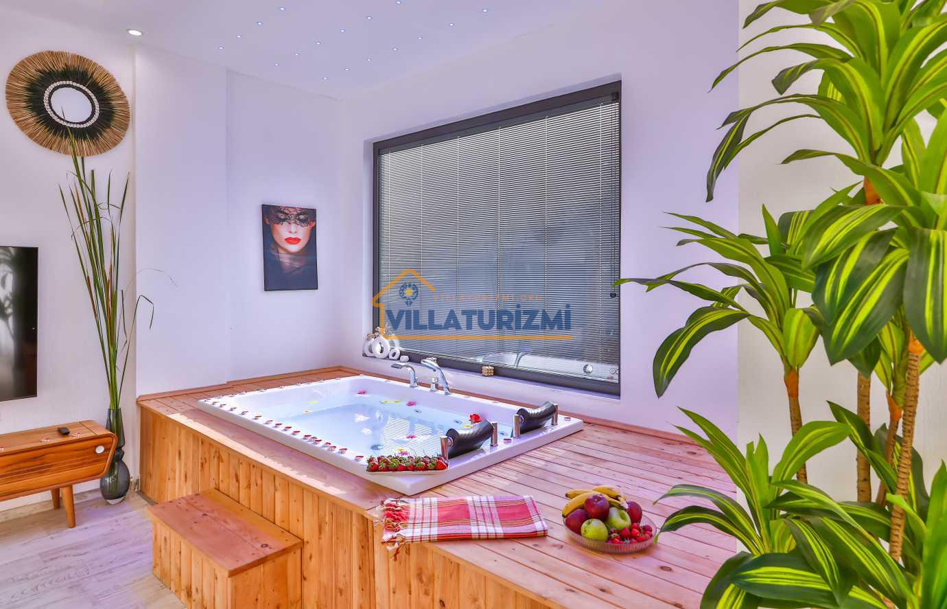 Villa Feriştah'ın en göz alıcı özelliklerinden biri olan ebeveyn yatak odasında bulunan jakuzi, konuklara lüks ve keyif dolu anlar yaşama fırsatı sunmaktadır. Jakuzide stres ve yorgunluğunuzu atarak kendinizi şımartabilir, tatilinizin tadını çıkarmak için huzur dolu anlar yaşayabilirsiniz.