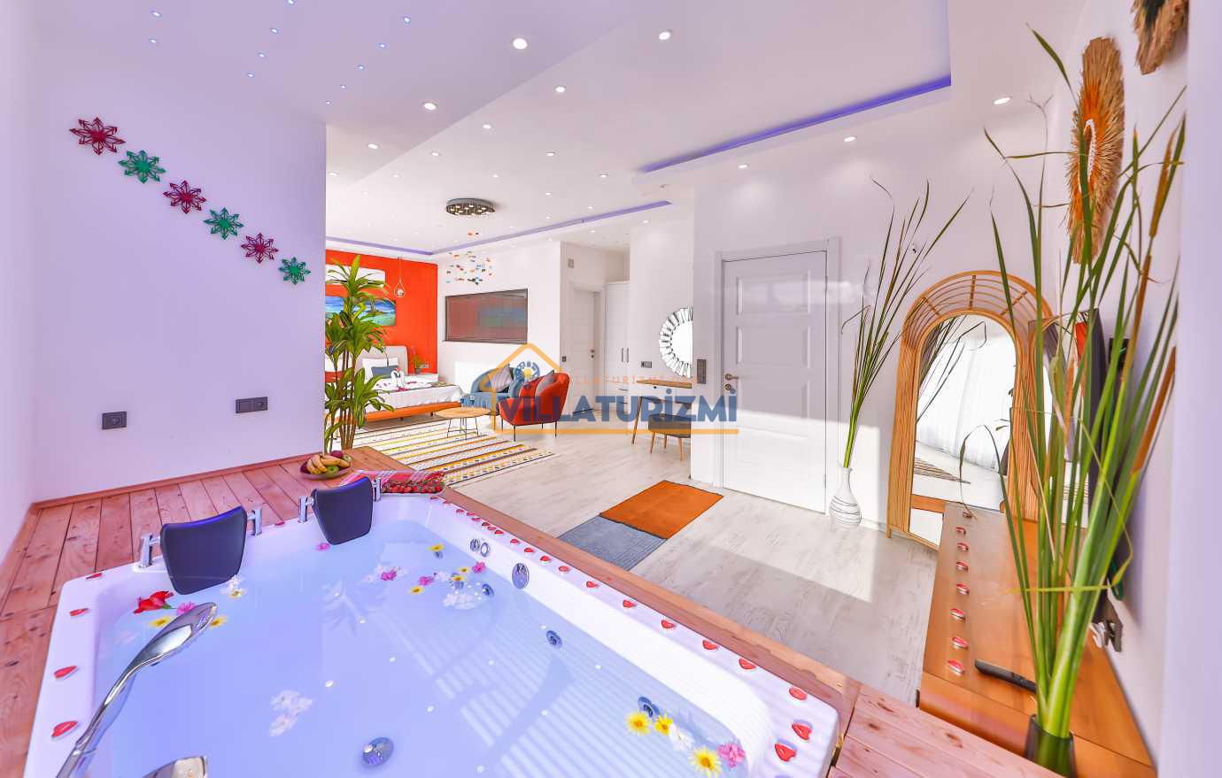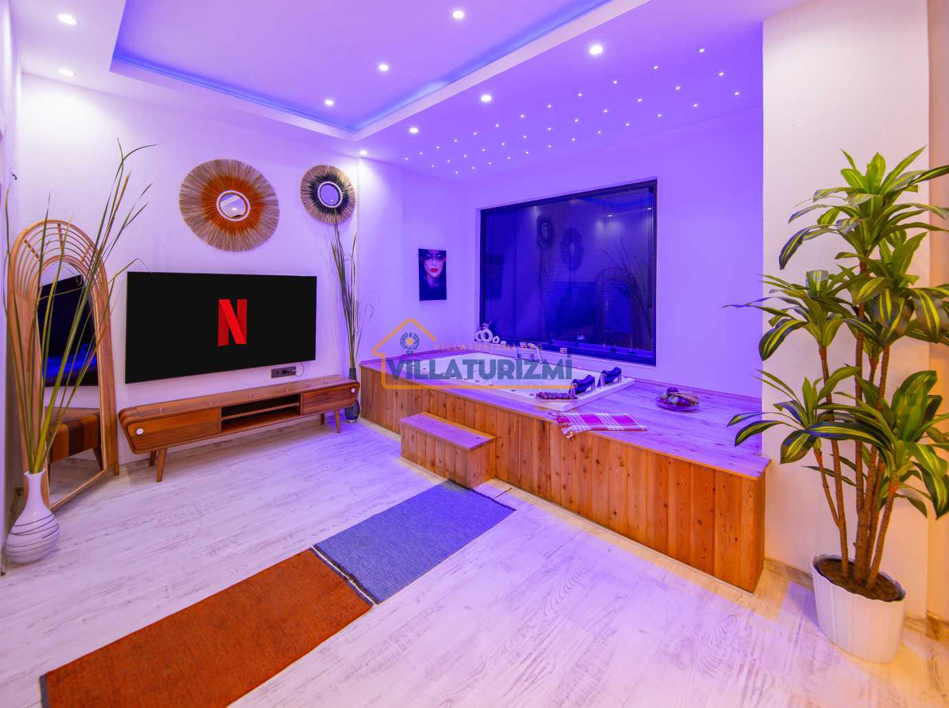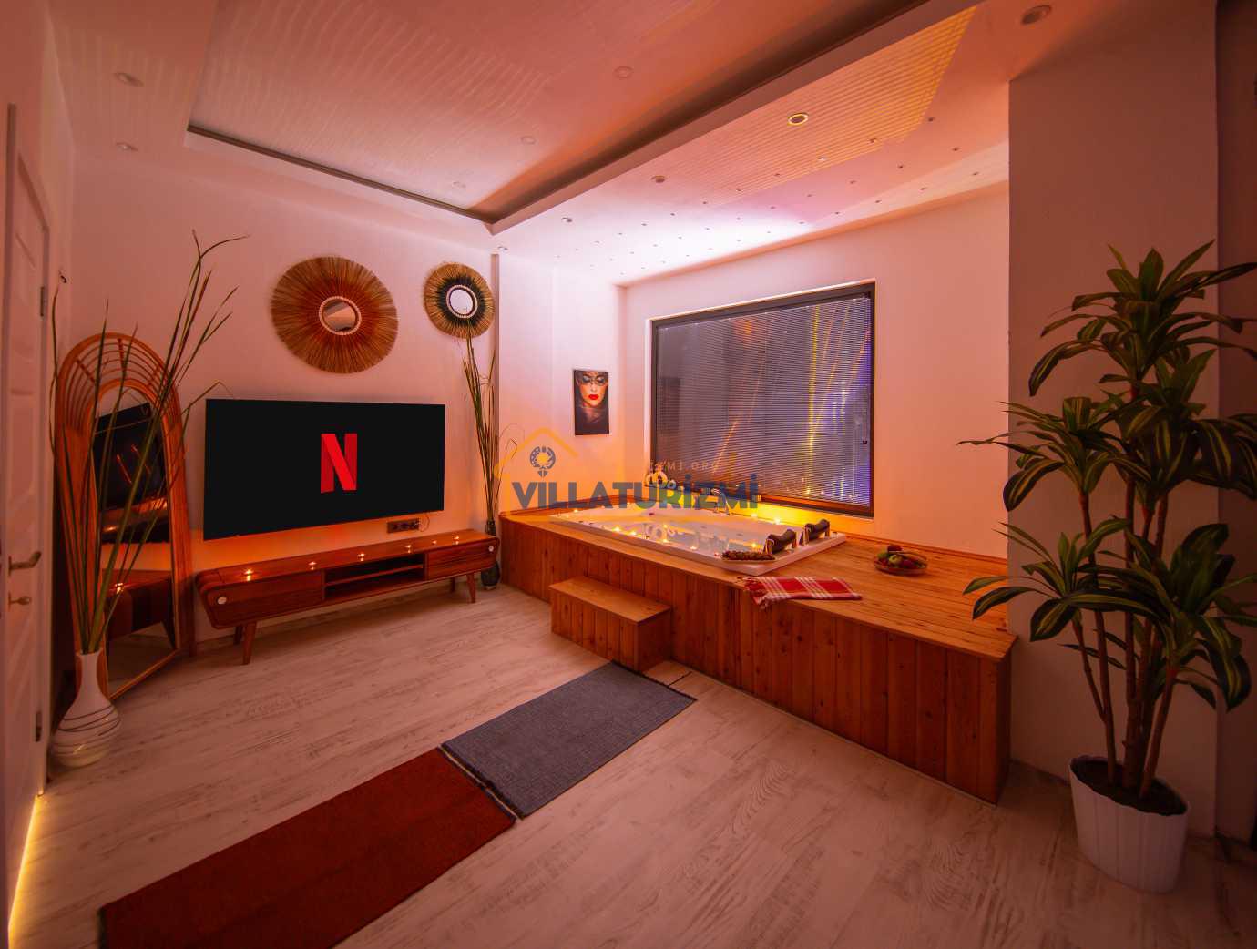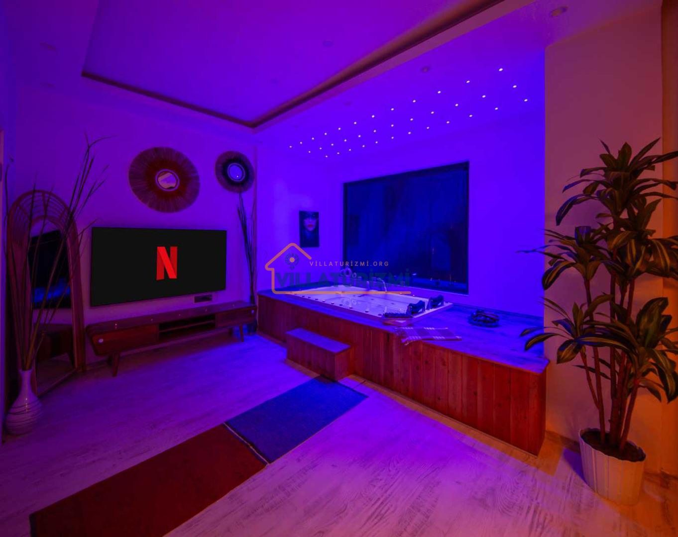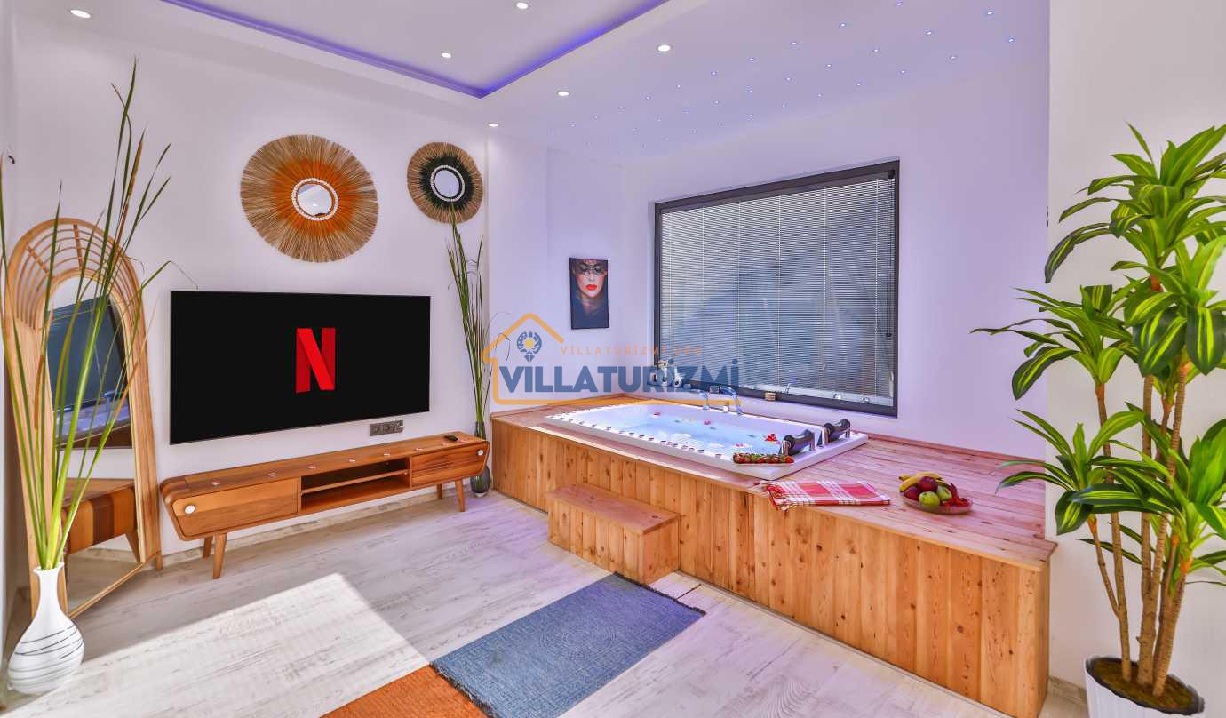 Villa Feriştah'ın en göz alıcı özelliklerinden biri olan ebeveyn yatak odasında bulunan jakuzi, konuklara lüks ve keyif dolu anlar yaşama fırsatı sunmaktadır. Jakuzide stres ve yorgunluğunuzu atarak kendinizi şımartabilir, tatilinizin tadını çıkarmak için huzur dolu anlar yaşayabilirsiniz.