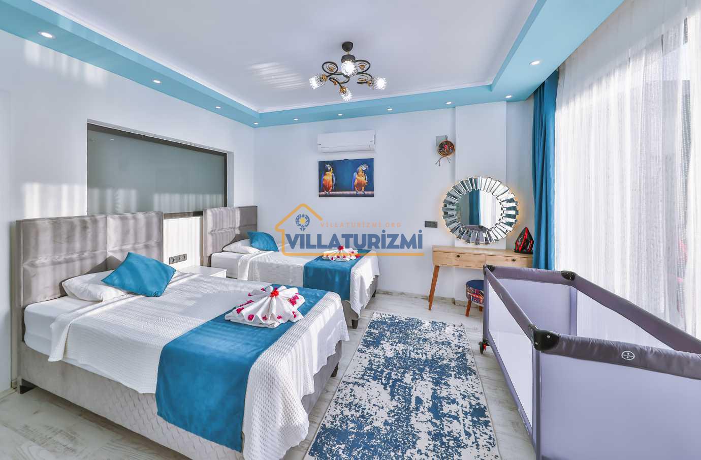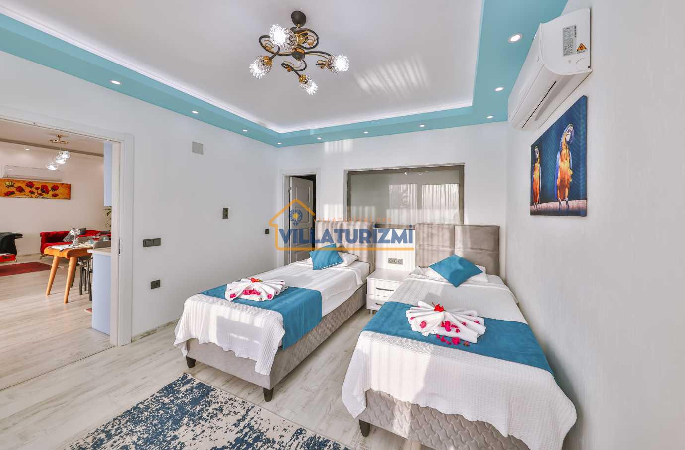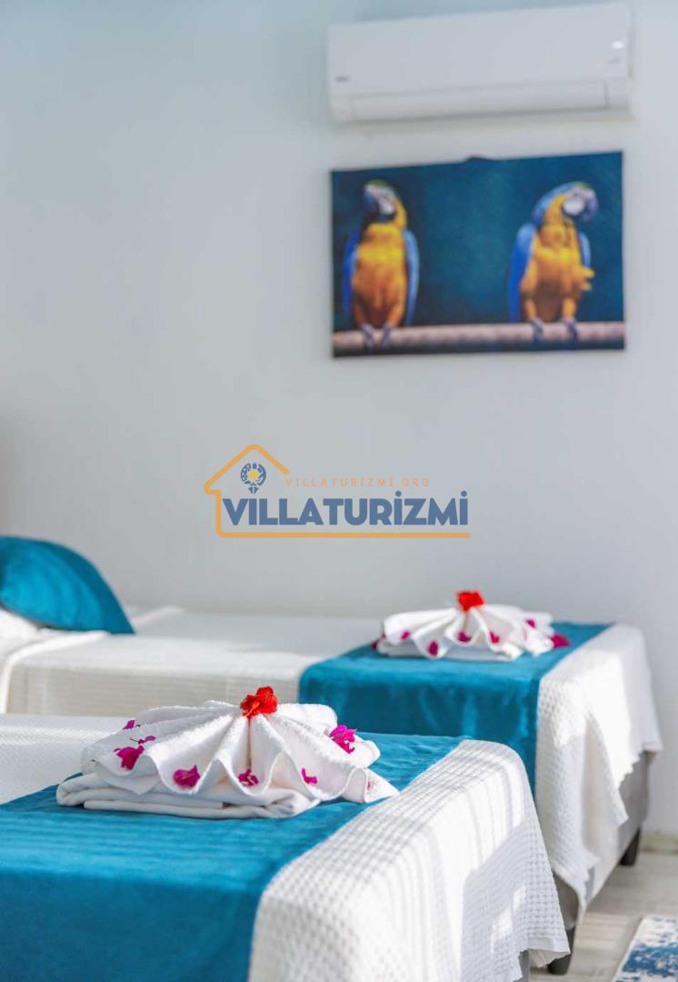 2.Yatak odası: 2 adet tek kişilik yatak, klima, elbise dolabı, komodin, makyaj masası, banyo ve tuvalet yer almaktadır.