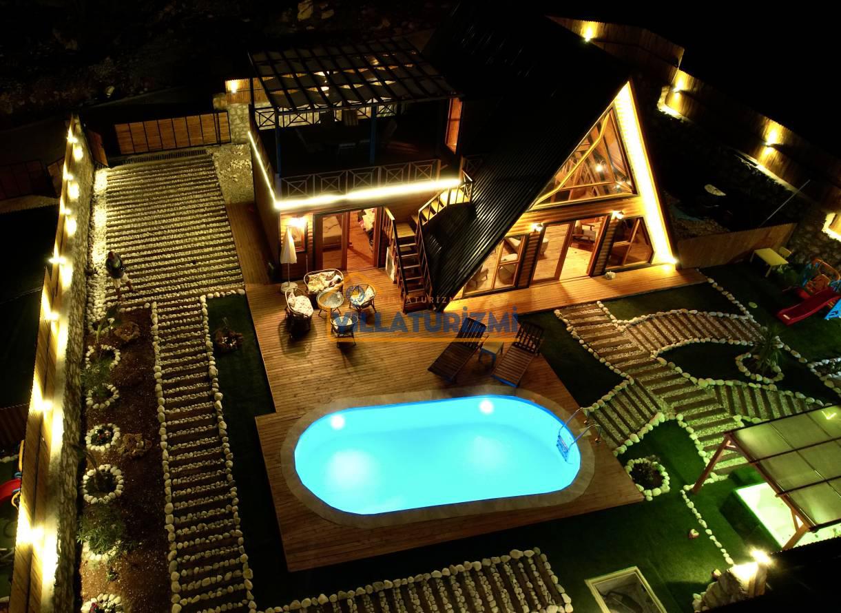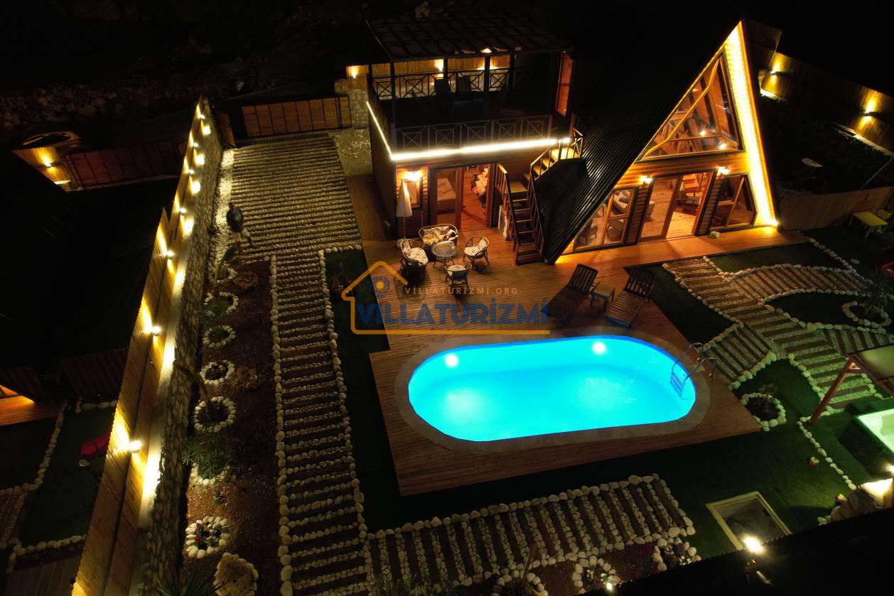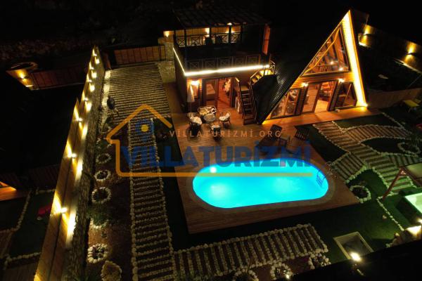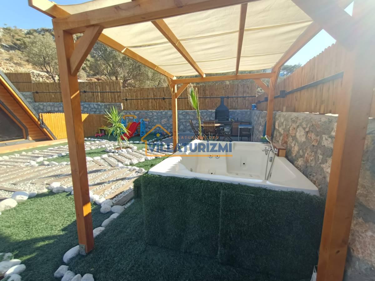 Etrafı tamamen korunaklı hale getirilmiş olup özel havuzlu, jakuzili, bahçelikiralık villa tatili yapmak isteyenaile ve balayı çiftlerine ideal balayı villasıdır.