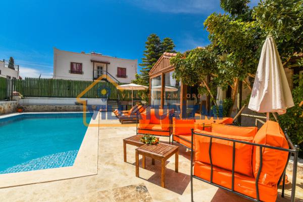 Villanın en önemli özelliklerinden biri de şüphesiz ki özel havuzudur. Misafirler, havuz başında güneşlenerek, serinleyerek ve keyifli vakit geçirerek tatilin tadını çıkarabilirler. Havuzun etrafında yer alan şezlonglar ve güneş şemsiyeleri, konforlu bir dinlenme alanı oluşturmaktadır.