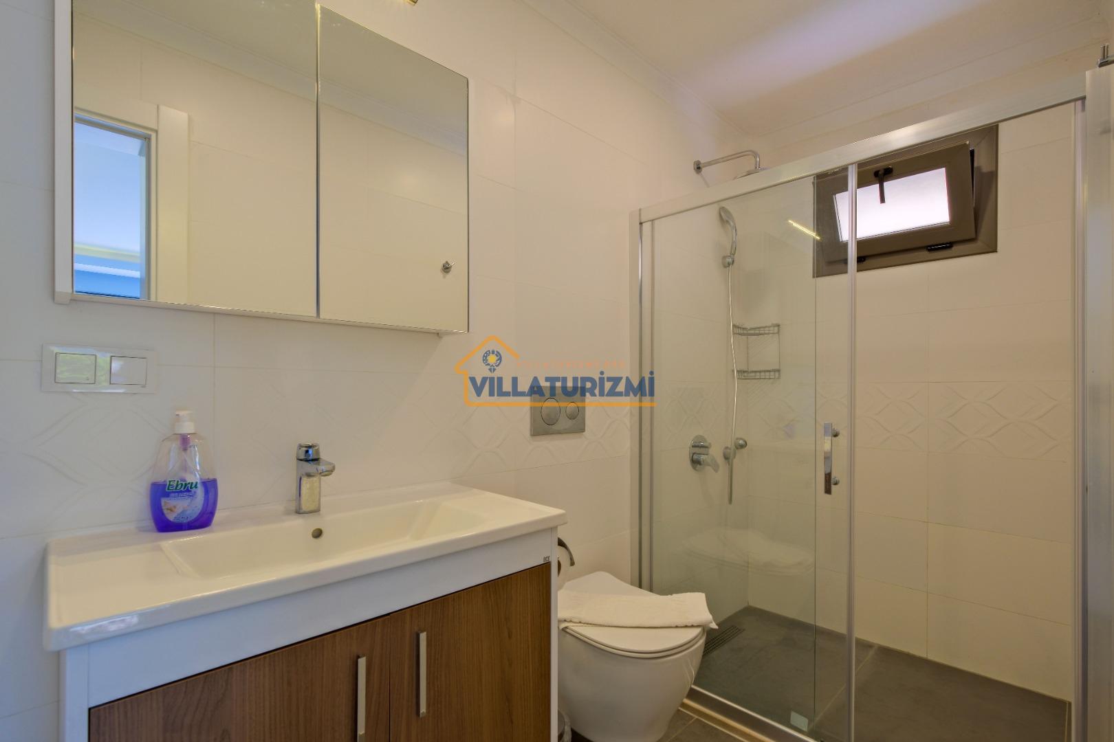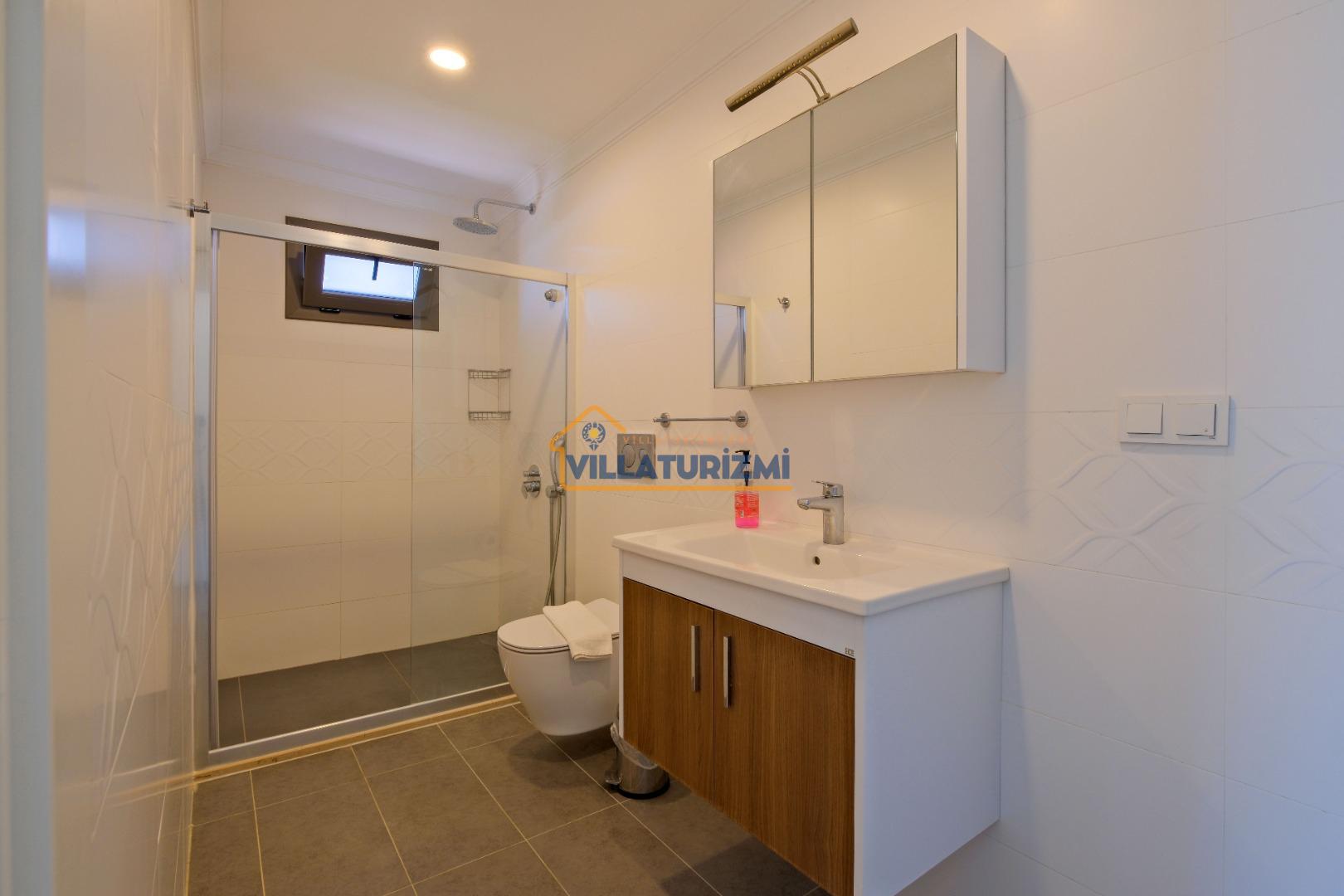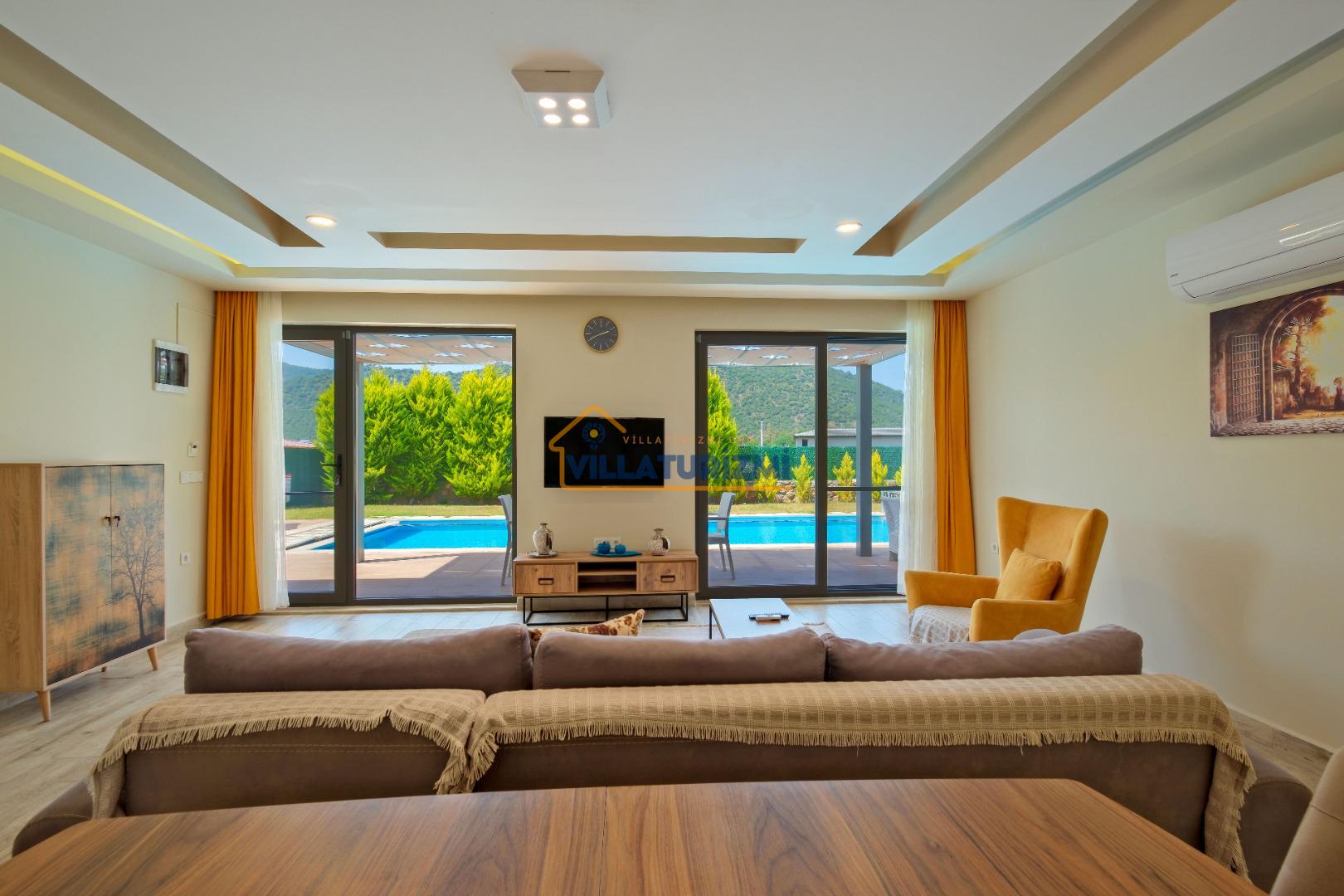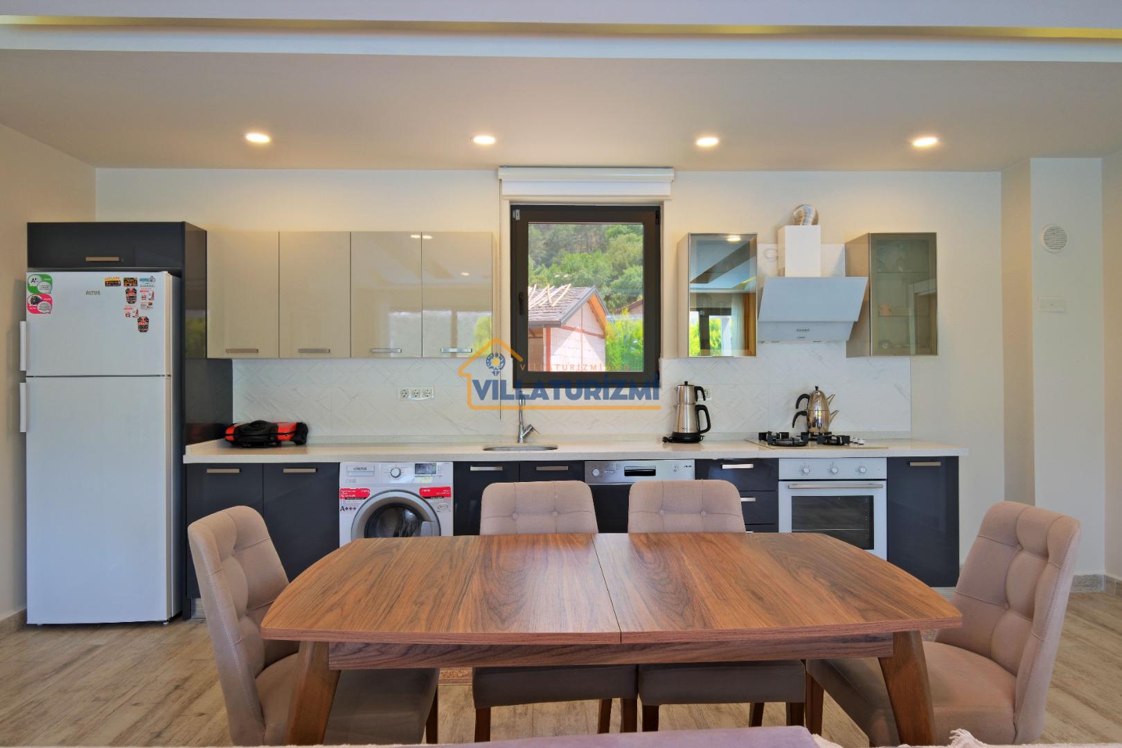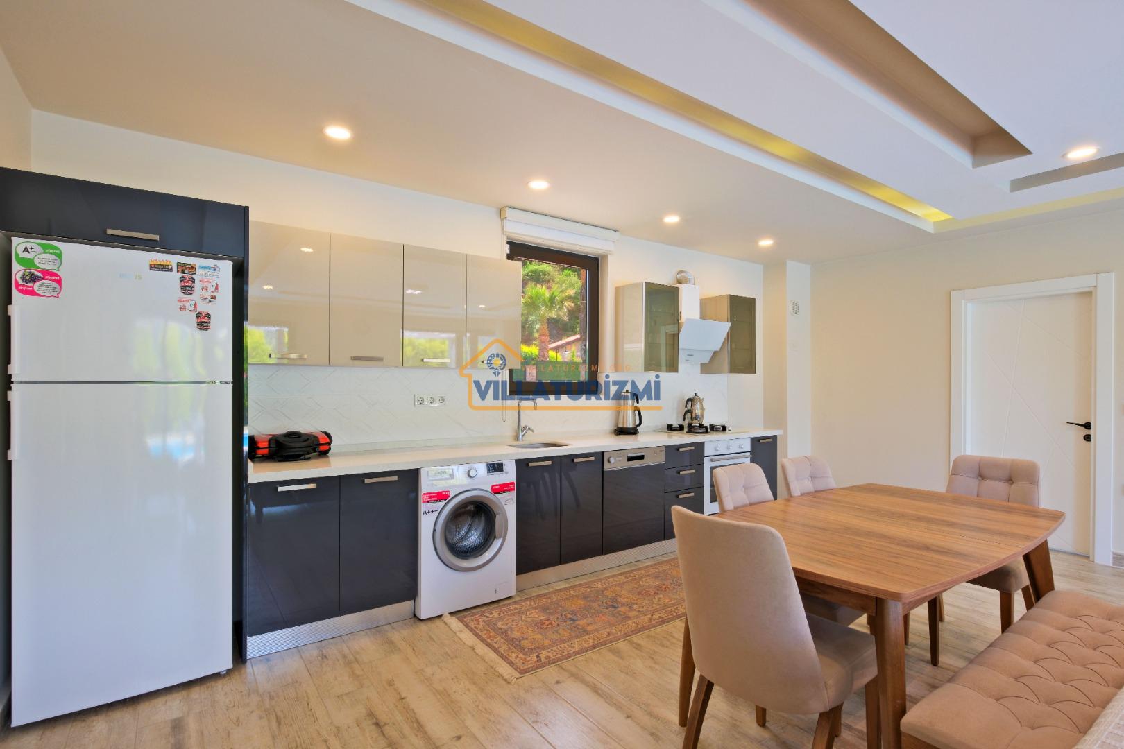 Villamız iki yatak odalıdır. Birinci yatak odasının içerisinde çift kişilik yatak, klima, jakuzi ve banyo bulunmaktadır. İkinci yatak odasında iki tek kişilik yatak, banyo ve klima yer almaktadır. Salon içerisinde mutfak, oturma grubu, televizyon ve klima bulunmaktadır.